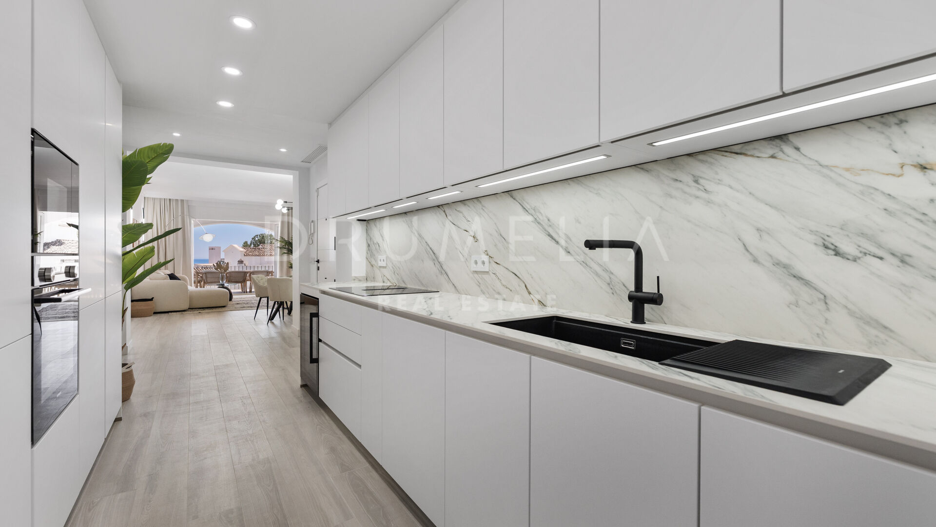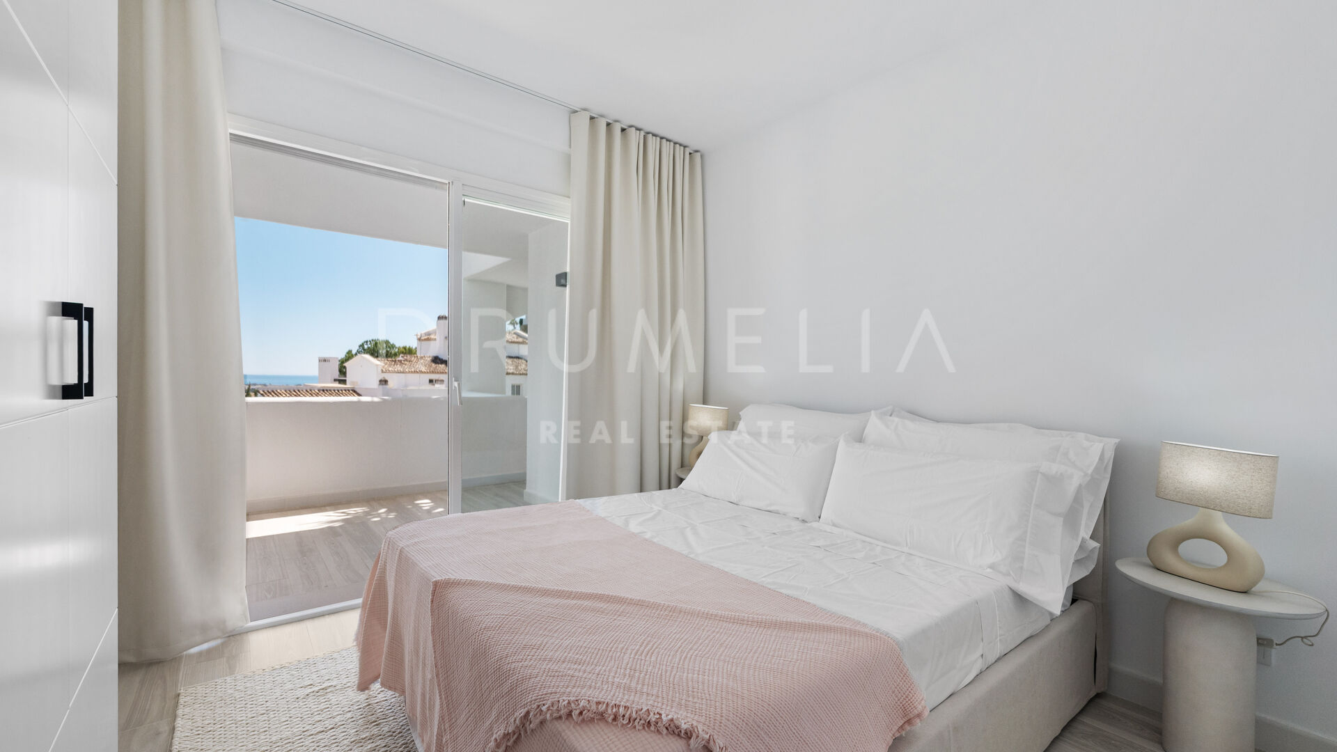 Отремонтированная 3-комнатная квартира с видом на море и гольф в Альтос-де-Ла-Кинта, Бенахавис