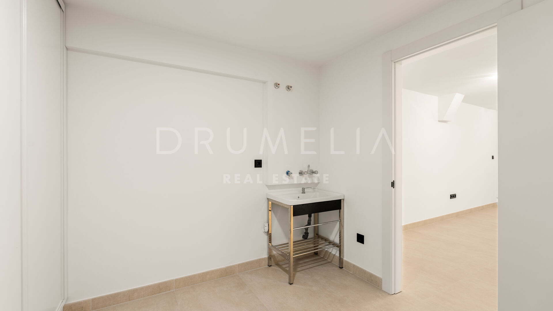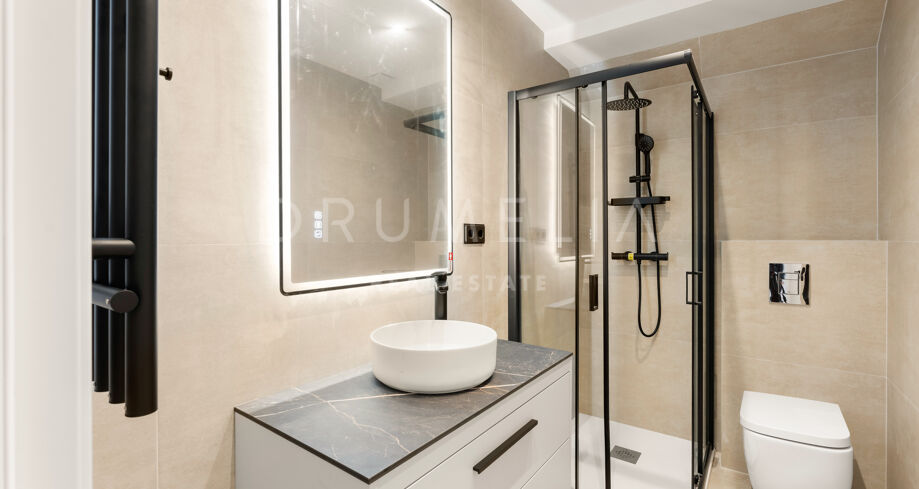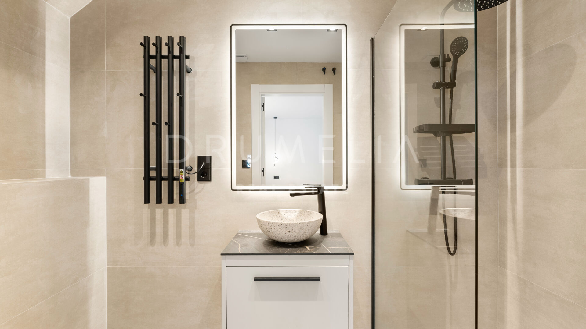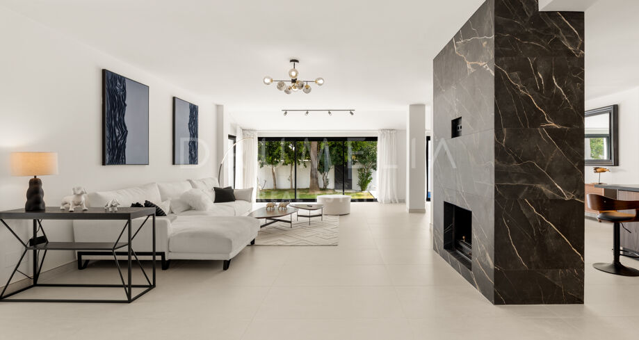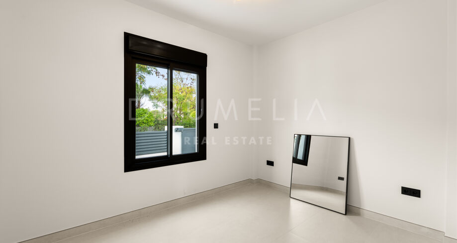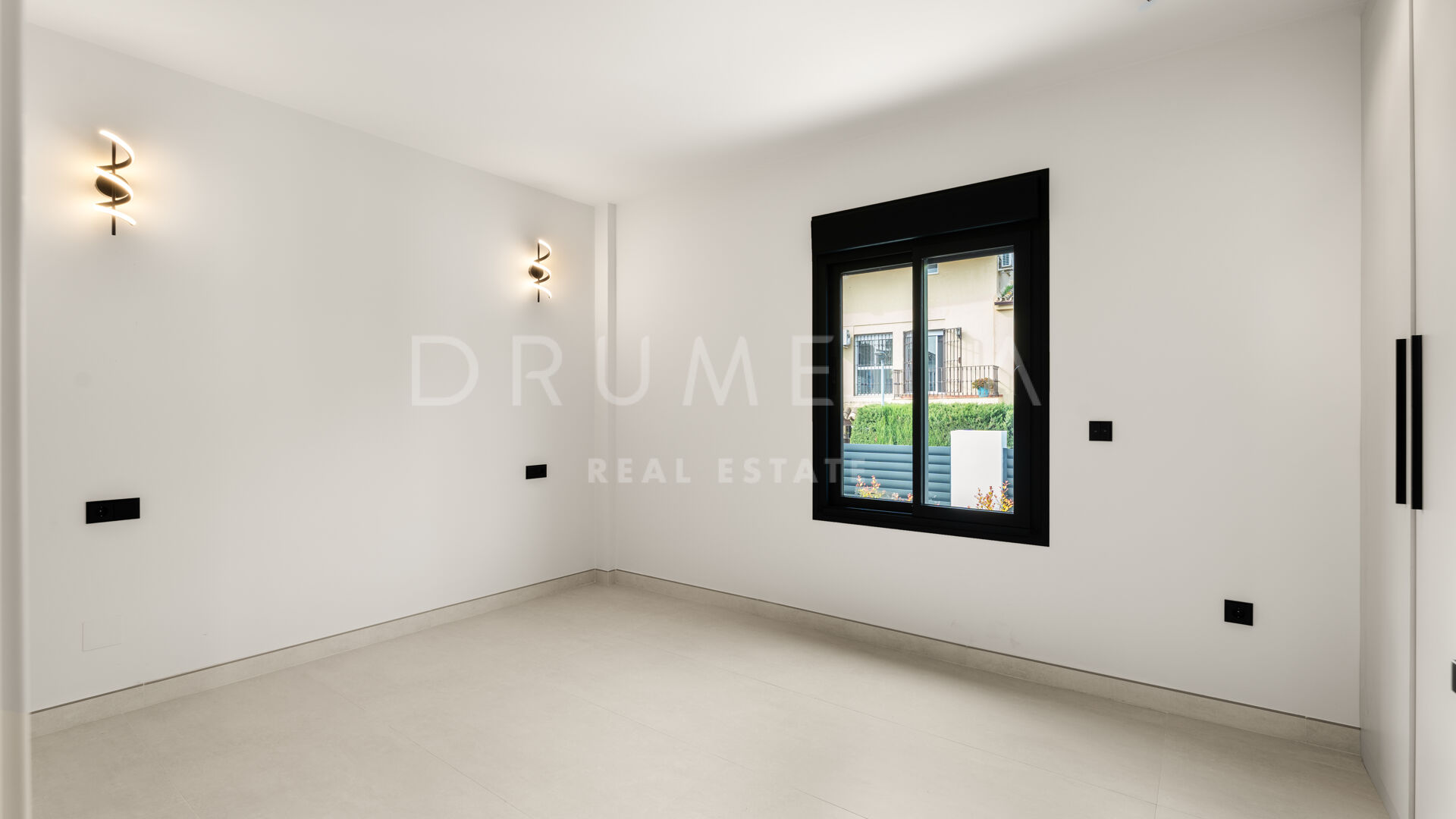 Укрытая в одном из наиболее устоявшихся и востребованных жилых кварталов Нуэва Андалусии, эта великолепно отреставрированная вилла представляет собой редкое сочетание классической андалузской архитектуры и безупречно точного современного дизайна. Построенная в 2001 году и полностью переосмысленная в 2025-м, недвижимость расположена на частном участке площадью 516 м² и предлагает 355 м² тщательно переконфигурированного жилого пространства на трёх этажах. Внешний облик немедленно задаёт тон — традиционный белёный фасад с черепицей из терракоты бережно сохранён, тогда как интерьеры были полностью демонтированы и воссозданы по совершенно иному стандарту. Это не косметическое обновление; это полное переосмысление, которое фотографии передают с абсолютной убедительностью.