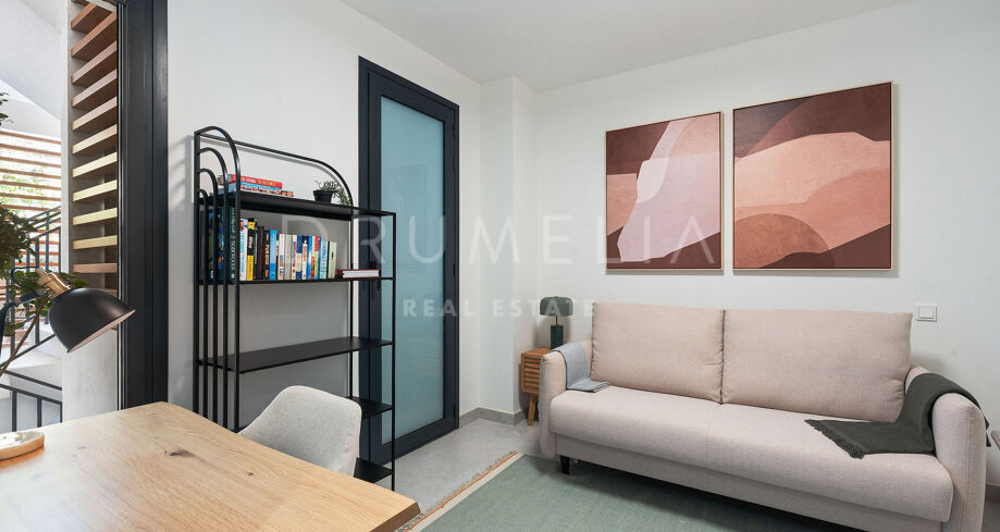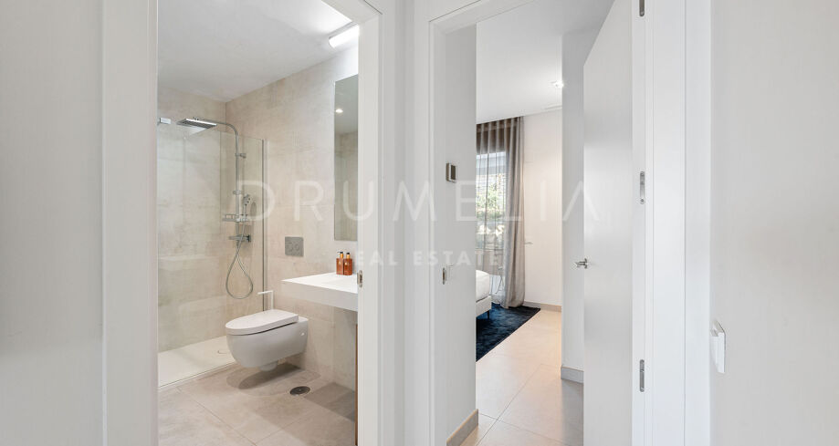 Оцените утонченную элегантность и теплоту этой уютной квартиры, современного и гостеприимного дома, расположенного в живописном районе Артола Альта в Марбелье. Эта впечатляющая квартира с тремя спальнями и двумя ванными комнатами, построенная в 2024 году, идеально отражает сущность прибрежной жизни, обладая желанной ориентацией на юг, откуда открывается захватывающий панорамный вид на море.