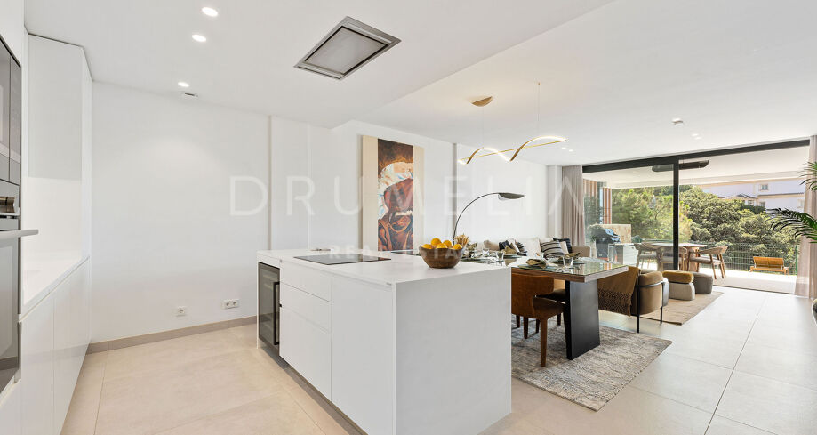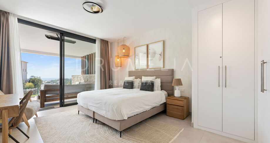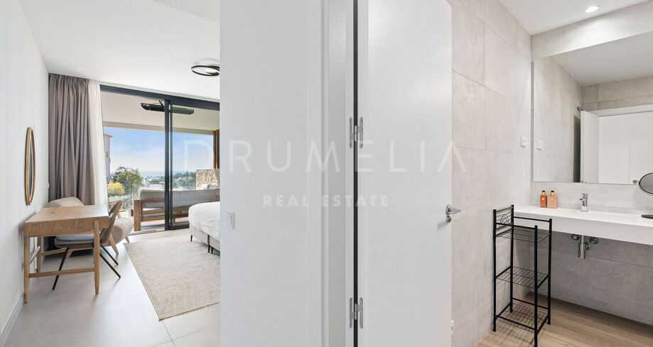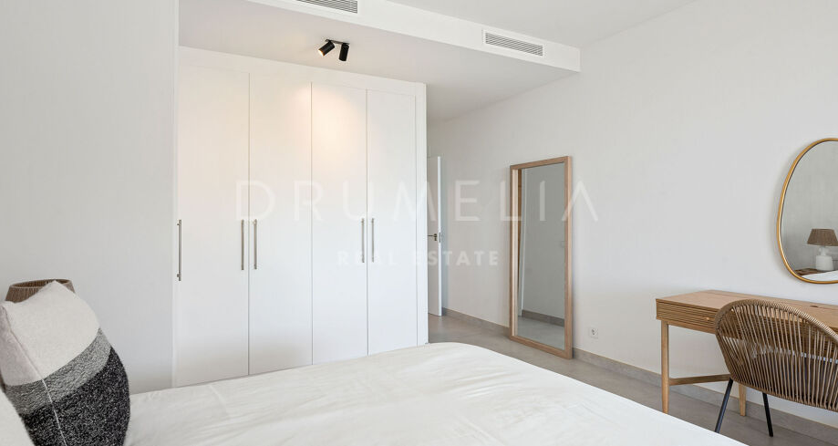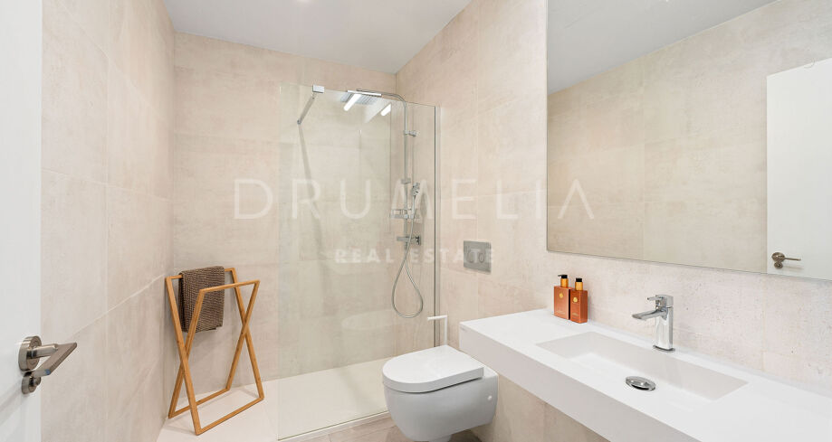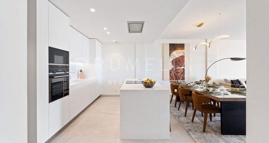 Спроектированная компанией Metrovacesa, известной своим качеством и инновациями, квартира излучает эстетическую привлекательность и функциональность. Каждая деталь, от отделки Porcelanosa до кухонь Krion и бытовой техники Siemens, отражает стремление к роскоши и долговечности, обеспечивая жилое пространство, которое настолько же практично, насколько и красиво. Внутри квартира отличается продуманной открытой планировкой, которая легко перетекает из кухни в столовую и гостиную. Большие окна пропускают большое количество естественного света и обрамляют завораживающие виды на море, а жилое пространство выходит на элегантную террасу, с которой можно любоваться захватывающими дух прибрежными пейзажами. Главная спальня представляет собой частный оазис с собственной ванной комнатой, а дополнительные спальни отличаются гибкостью: одна из них может быть легко превращена в домашний офис.