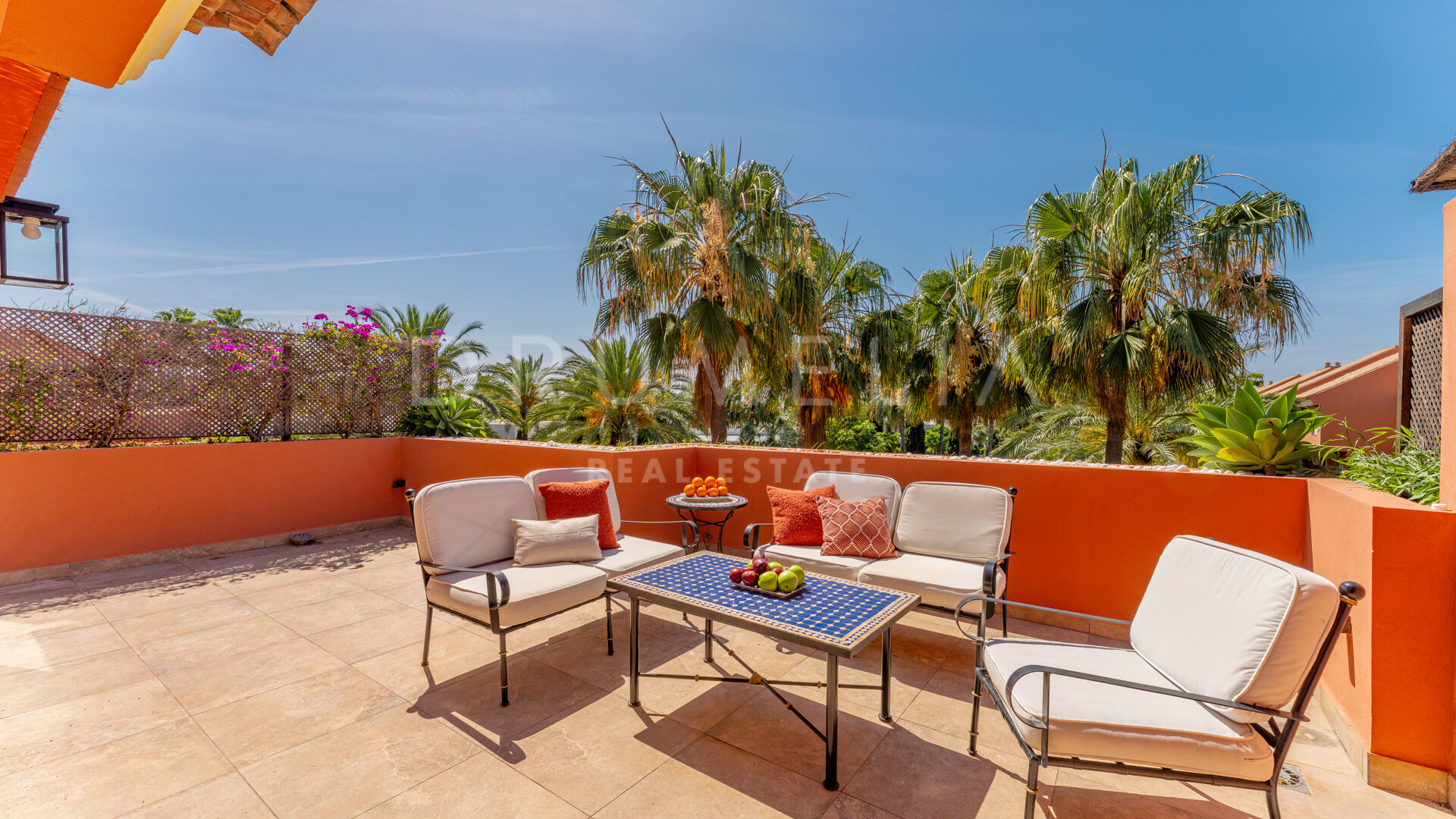 Этот светлый и просторный двухуровневый пентхаус расположен в престижном и охраняемом жилом комплексе El Embrujo Playa, всего в нескольких минутах ходьбы от пляжа и оживлённого порта Пуэрто-Банус. Распределённый на нескольких уровнях, пентхаус наполнен естественным светом и предлагает просторные террасы, которые приглашают наслаждаться жизнью на свежем воздухе круглый год. Продуманная планировка обеспечивает плавный переход между внутренними и внешними пространствами, создавая ощущение уюта и свободы.