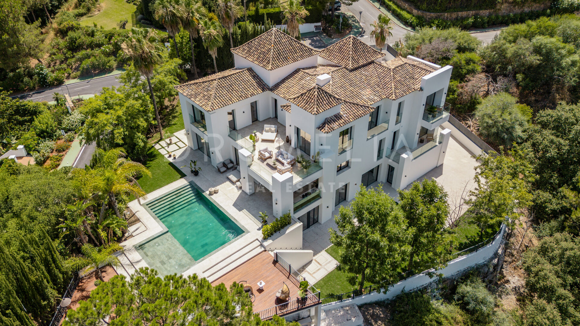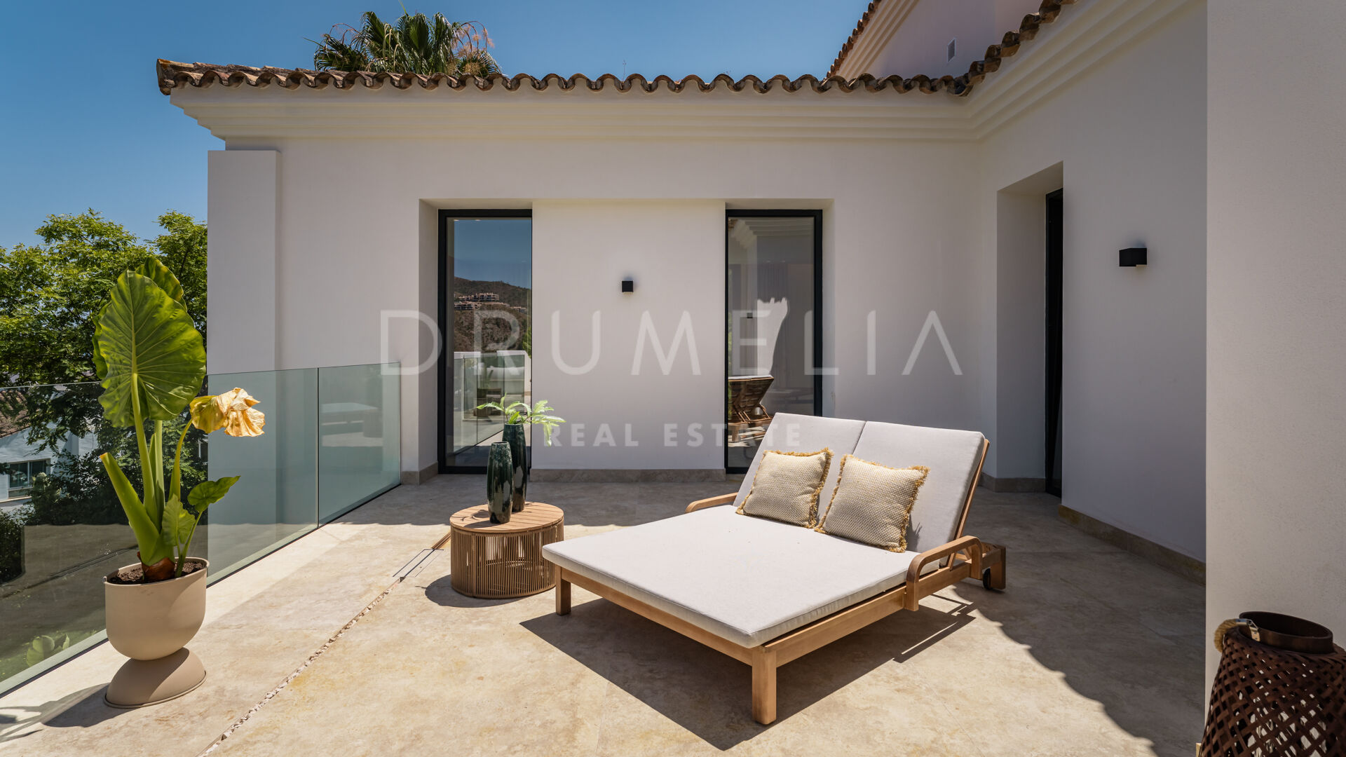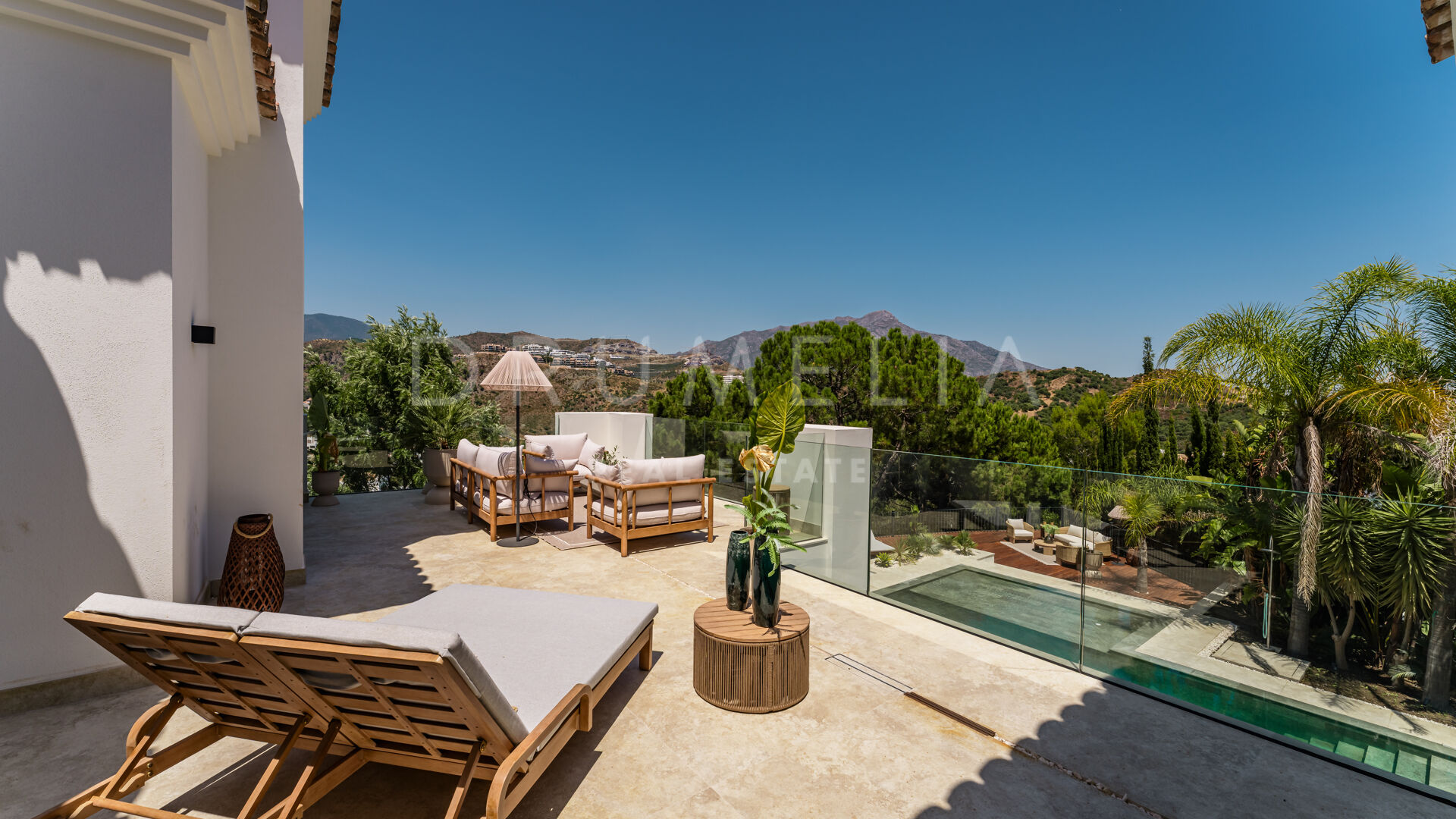 Расположенная в одном из самых востребованных районов Марбельи, эта вилла предлагает полную приватность, захватывающий вид на горы и легкий доступ к полям для гольфа и даже к Золотой миле.