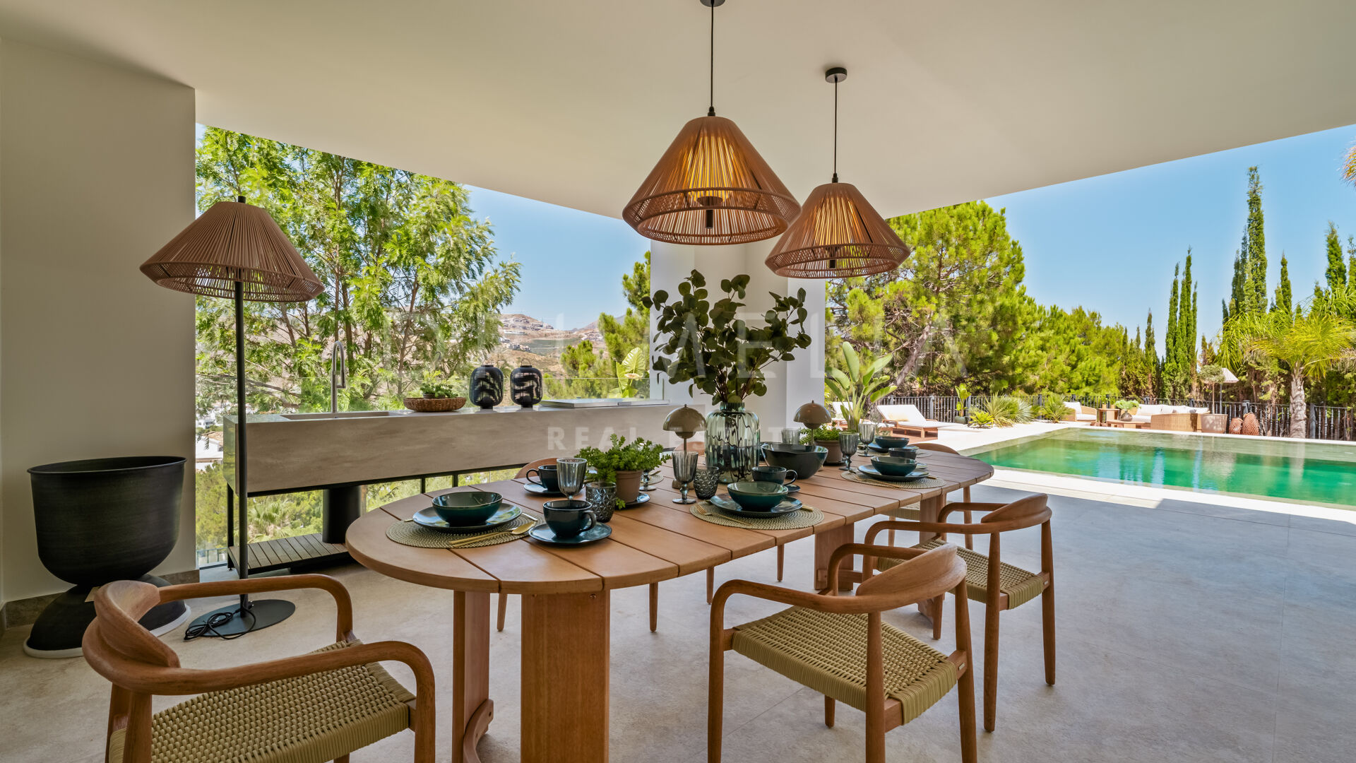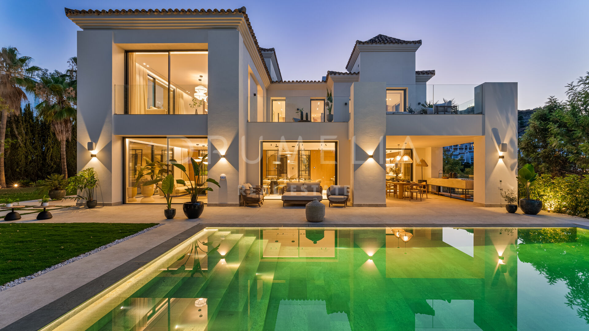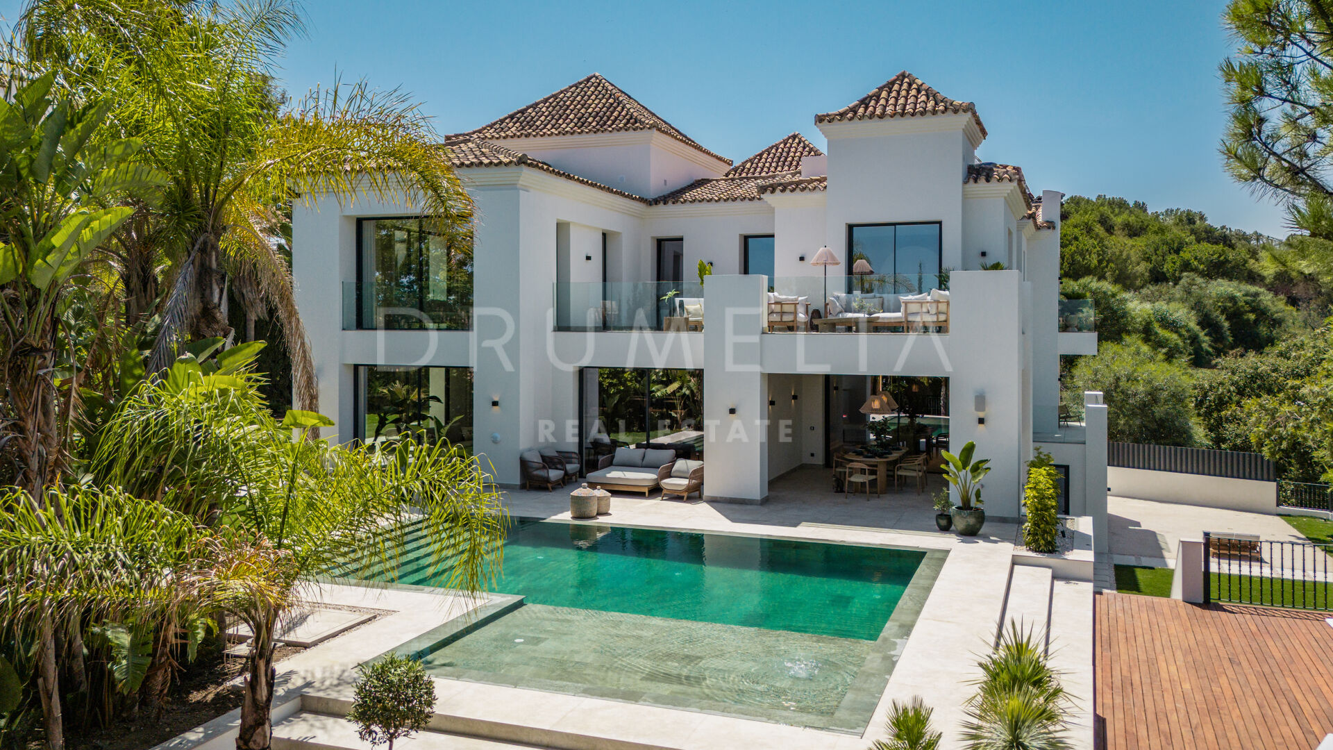 Расположенная в одном из самых востребованных районов Марбельи, эта вилла предлагает полную приватность, захватывающий вид на горы и легкий доступ к полям для гольфа и даже к Золотой миле.