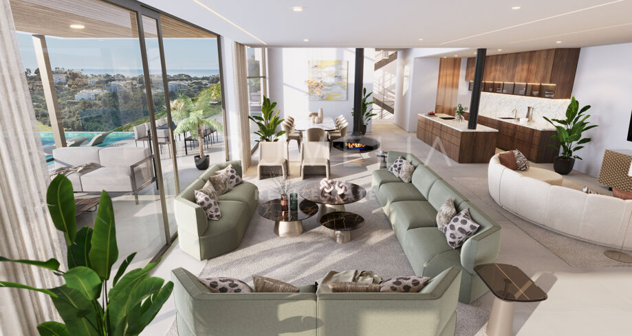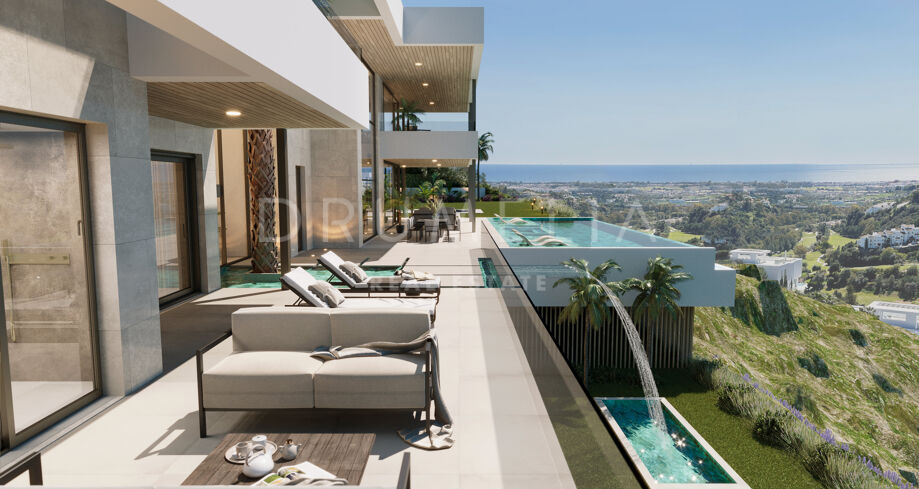 Расположенная в престижном закрытом поселке Эль Мадроньяль, эта современная вилла предлагает захватывающие виды на Средиземное море и окружающие горы. Расположенная на просторном участке, вилла окружена ландшафтными садами с бассейном-инфинити и спокойными водными элементами, которые улучшают впечатления от отдыха на свежем воздухе.