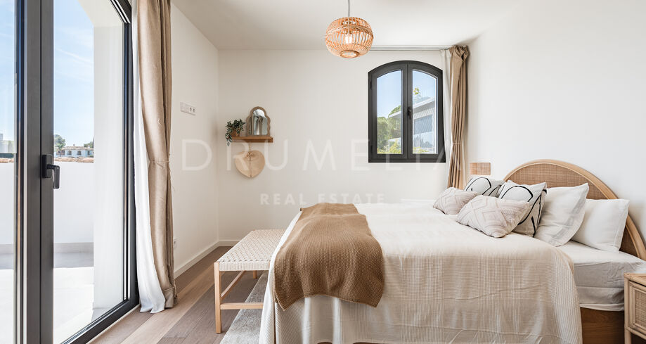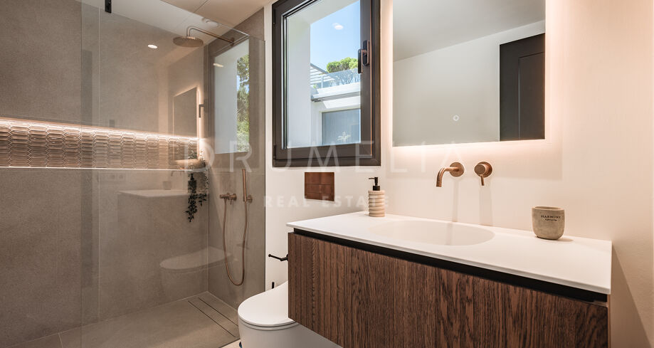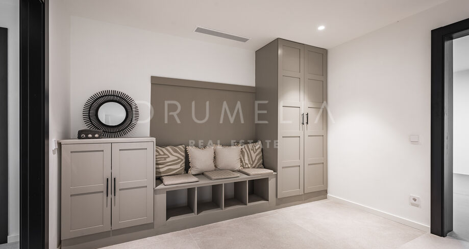 Дом также оснащён просторным подъездом и гаражом на две машины. Он находится в частной охраняемой урбанизации, обеспечивая приватность, безопасность и ощущение настоящего сообщества. Эль-Мадроньяль — это сочетание уединения и удобства: всего в 2 минутах от торгового центра Monte Halcones и в 5 минутах от Сан-Педро и пляжа.