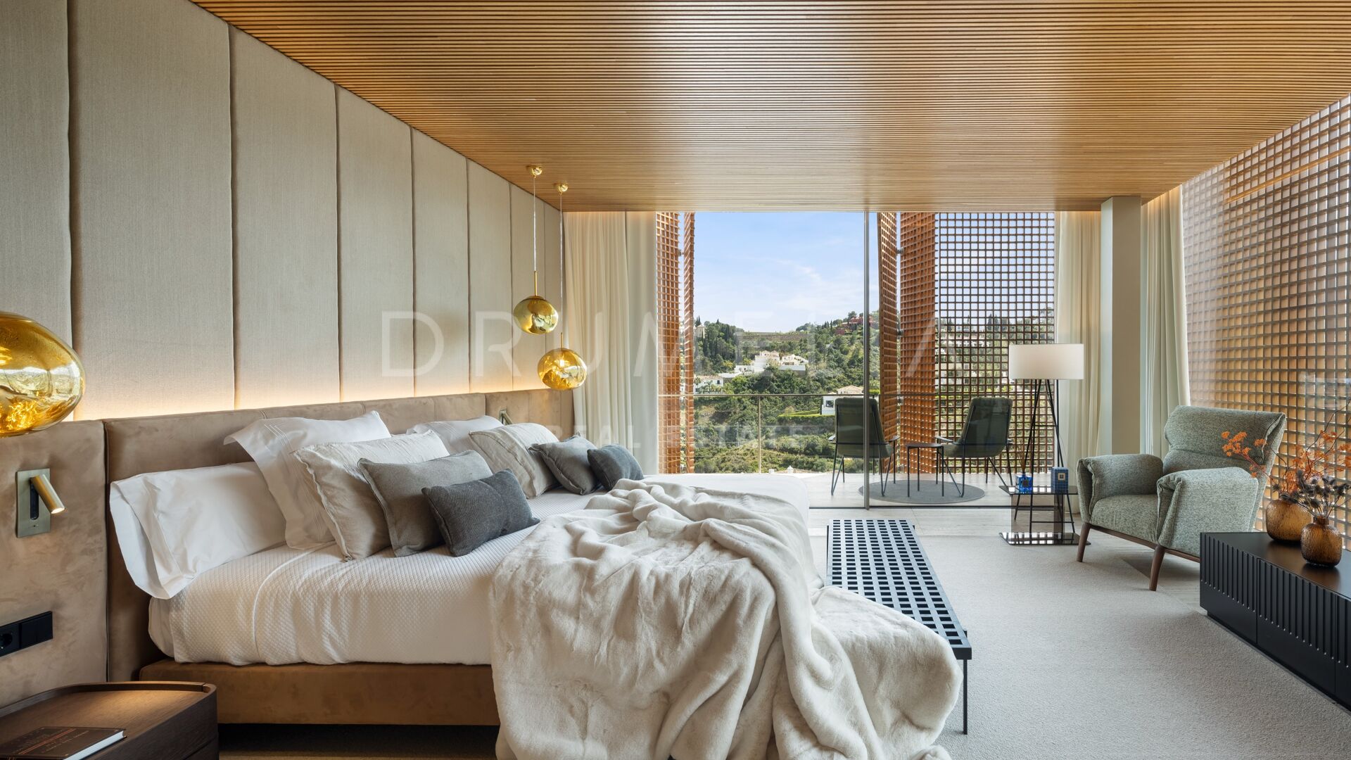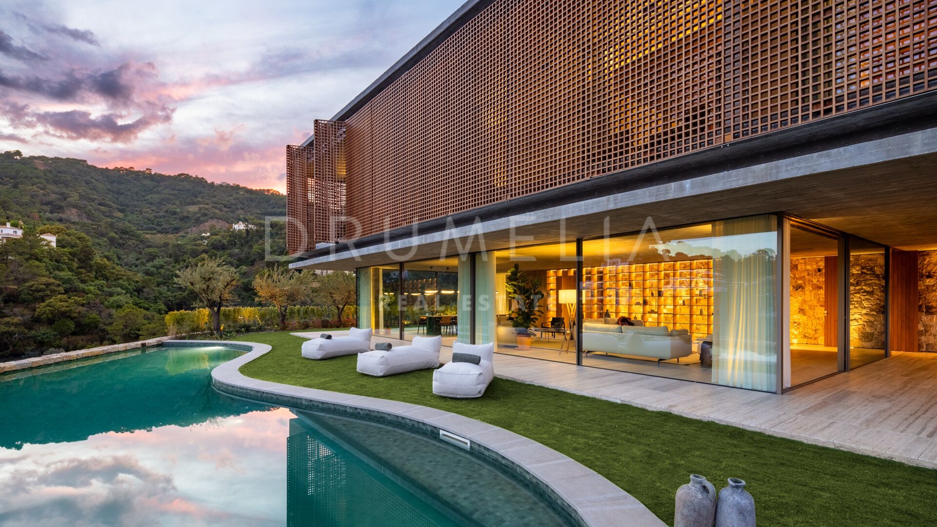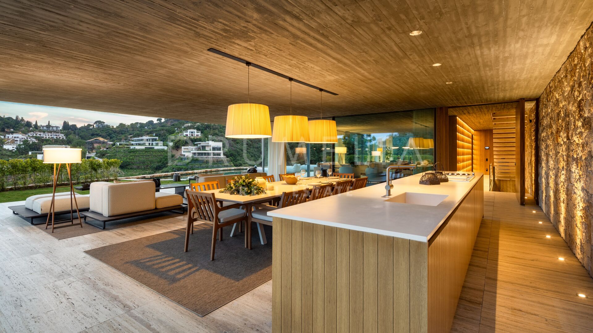 Расположенная в престижном районе Эль Мадроньяль в Бенаависе, эта впечатляющая вилла переосмысливает понятие роскошной жизни на Коста-дель-Соль. Спроектированная известным архитектором Марсио Коганом в сотрудничестве с Lamar Development, вилла предлагает захватывающие виды на Средиземное море и окружающие горы. Современный дизайн гармонично сочетается с ухоженным ландшафтным садом, в центре которого расположен стильный бассейн.