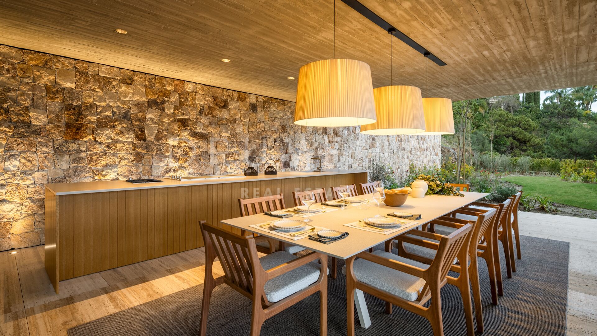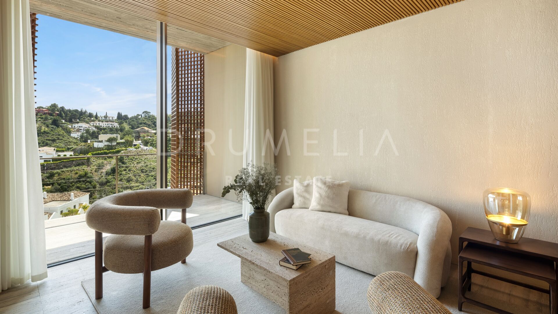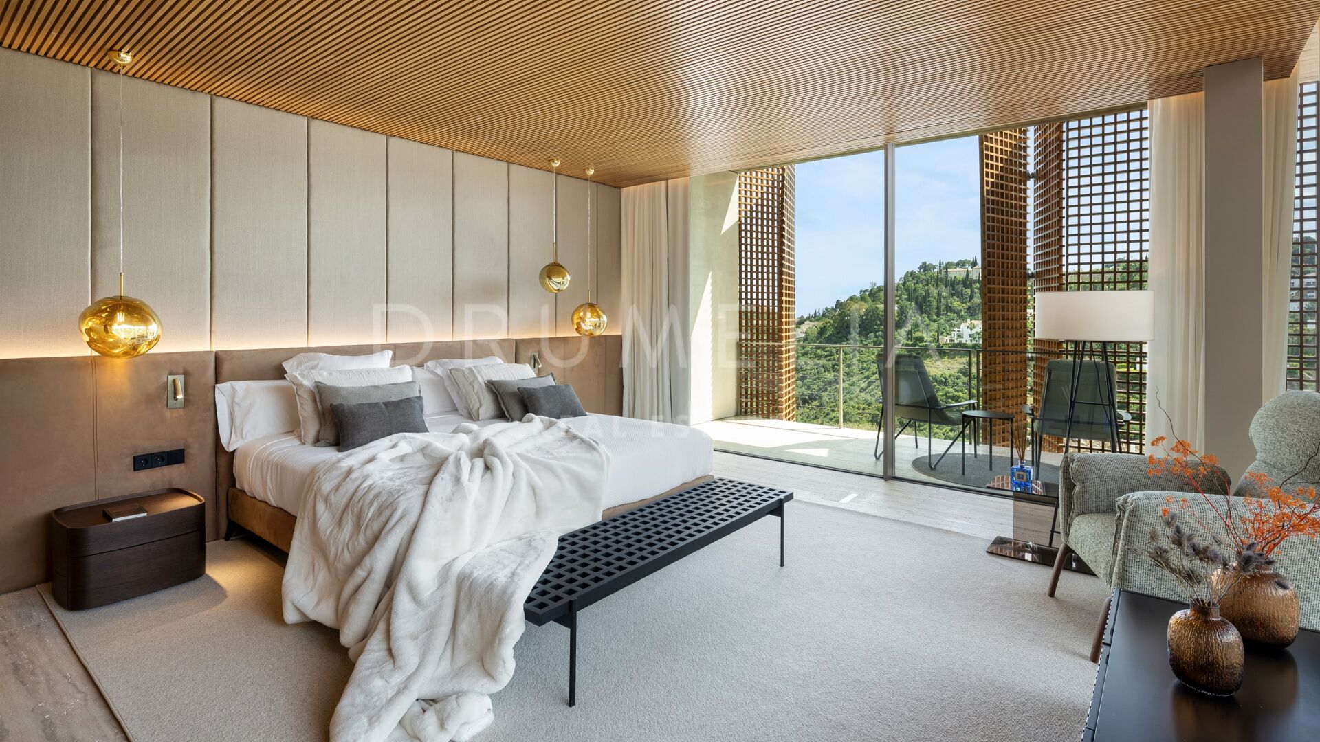 Расположенная в престижном районе Эль Мадроньяль в Бенаависе, эта впечатляющая вилла переосмысливает понятие роскошной жизни на Коста-дель-Соль. Спроектированная известным архитектором Марсио Коганом в сотрудничестве с Lamar Development, вилла предлагает захватывающие виды на Средиземное море и окружающие горы. Современный дизайн гармонично сочетается с ухоженным ландшафтным садом, в центре которого расположен стильный бассейн.