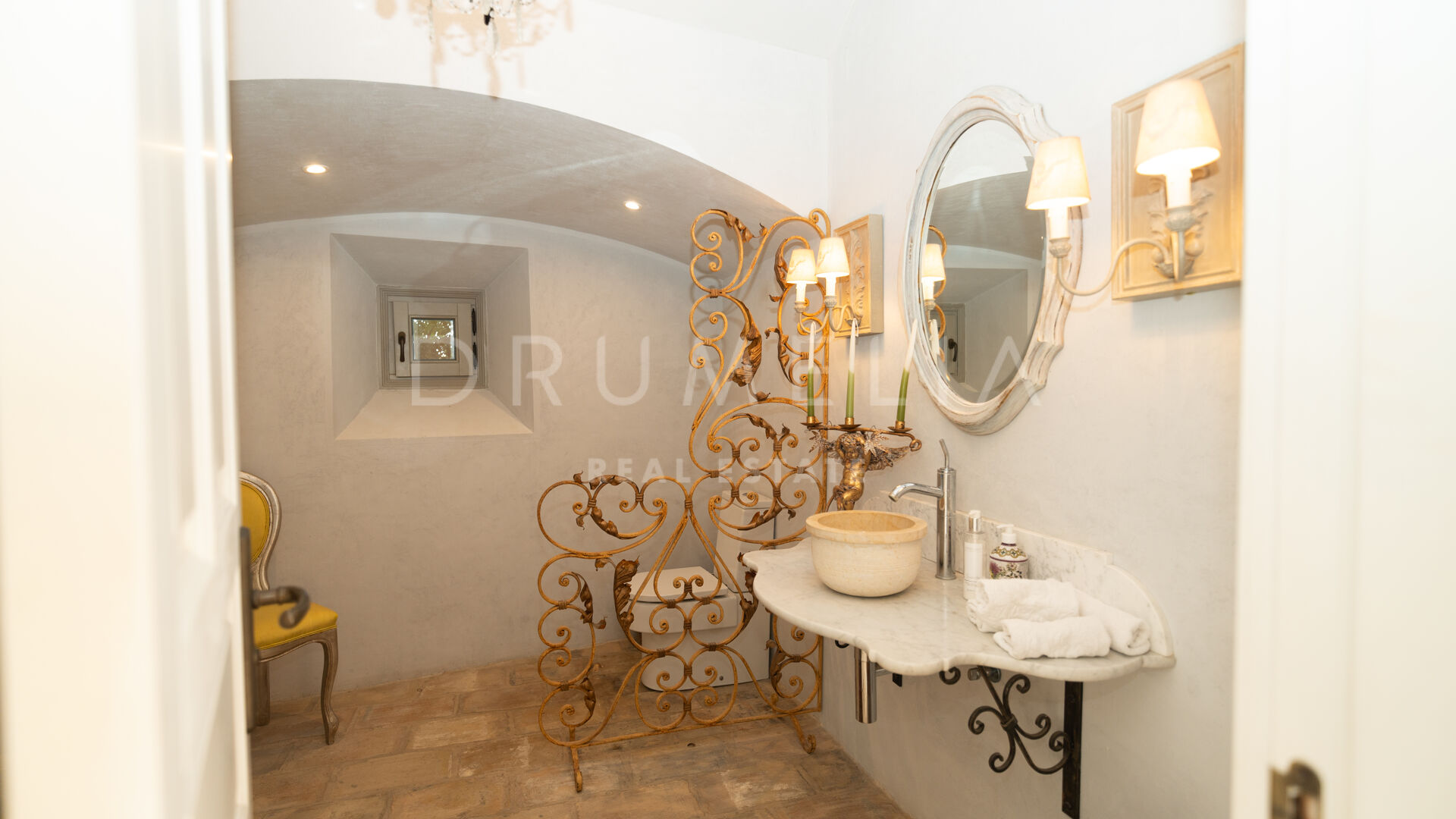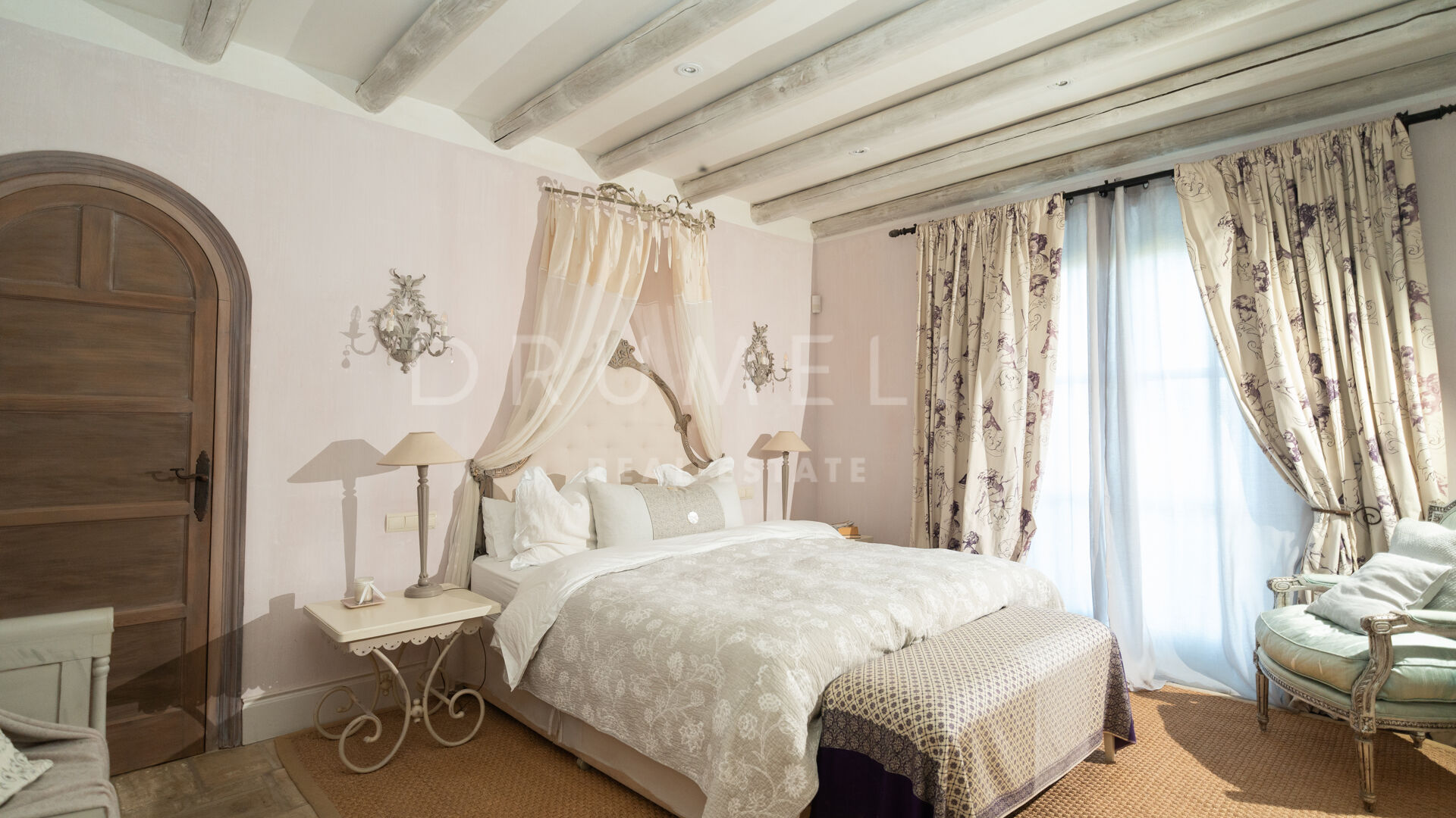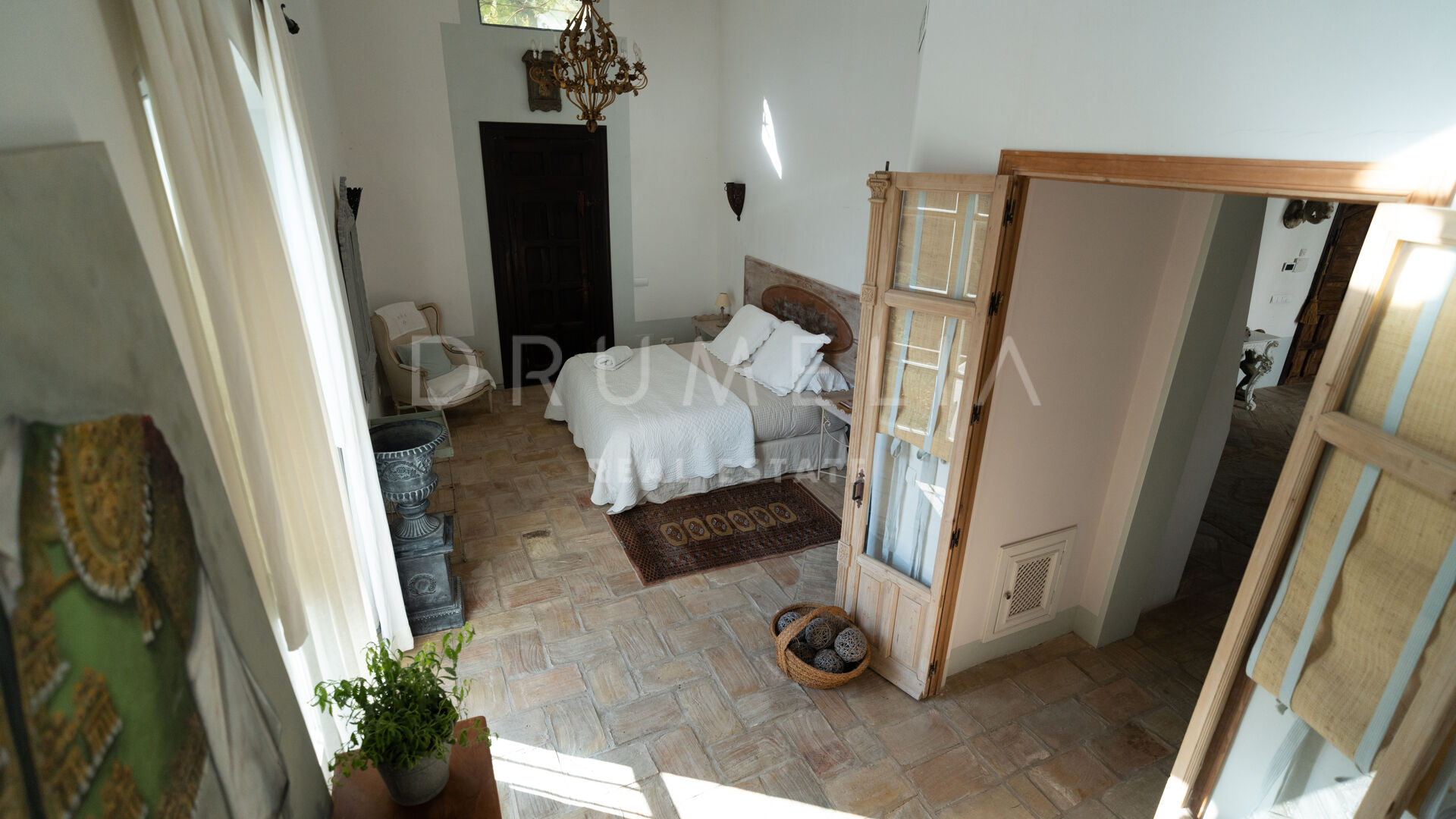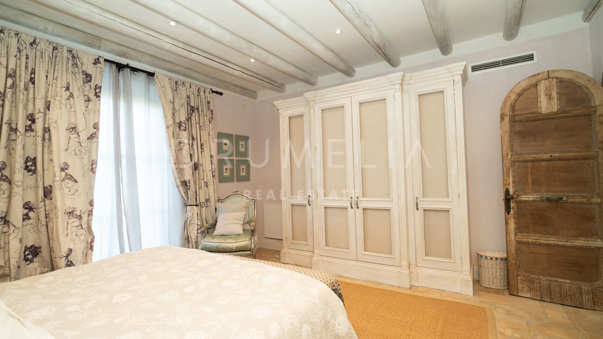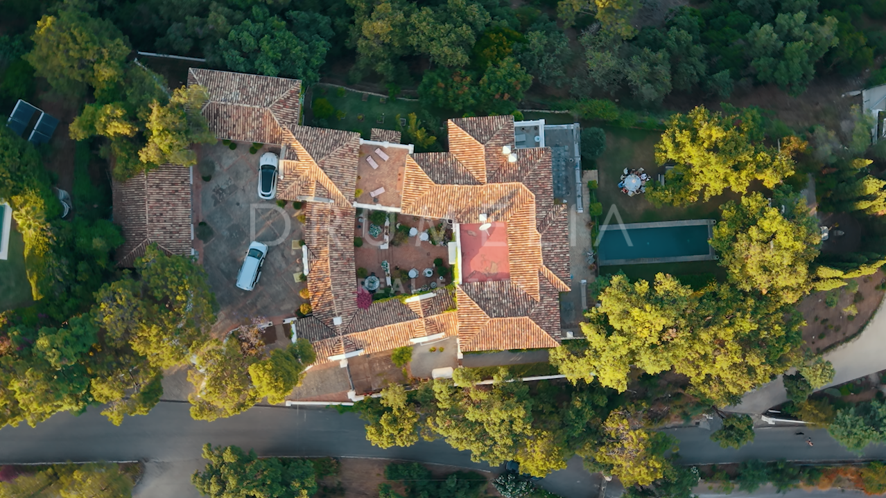 Эта изысканная вилла в андалузском стиле находится в закрытом эксклюзивном поселке Эль Мадроньяль в Бенахависе и представляет собой архитектурное произведение большой элегантности и традиций. Вход через старинные ворота ведет к впечатляющему центральному двору, отражающему характер и суть Андалусии во всей собственности.