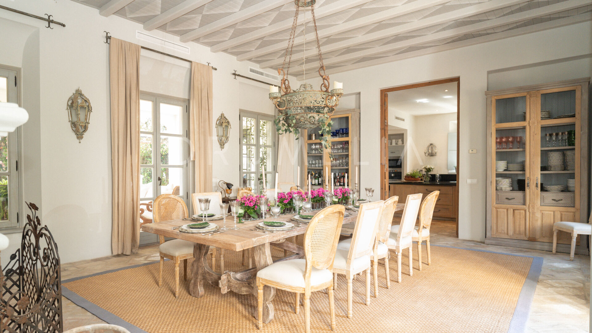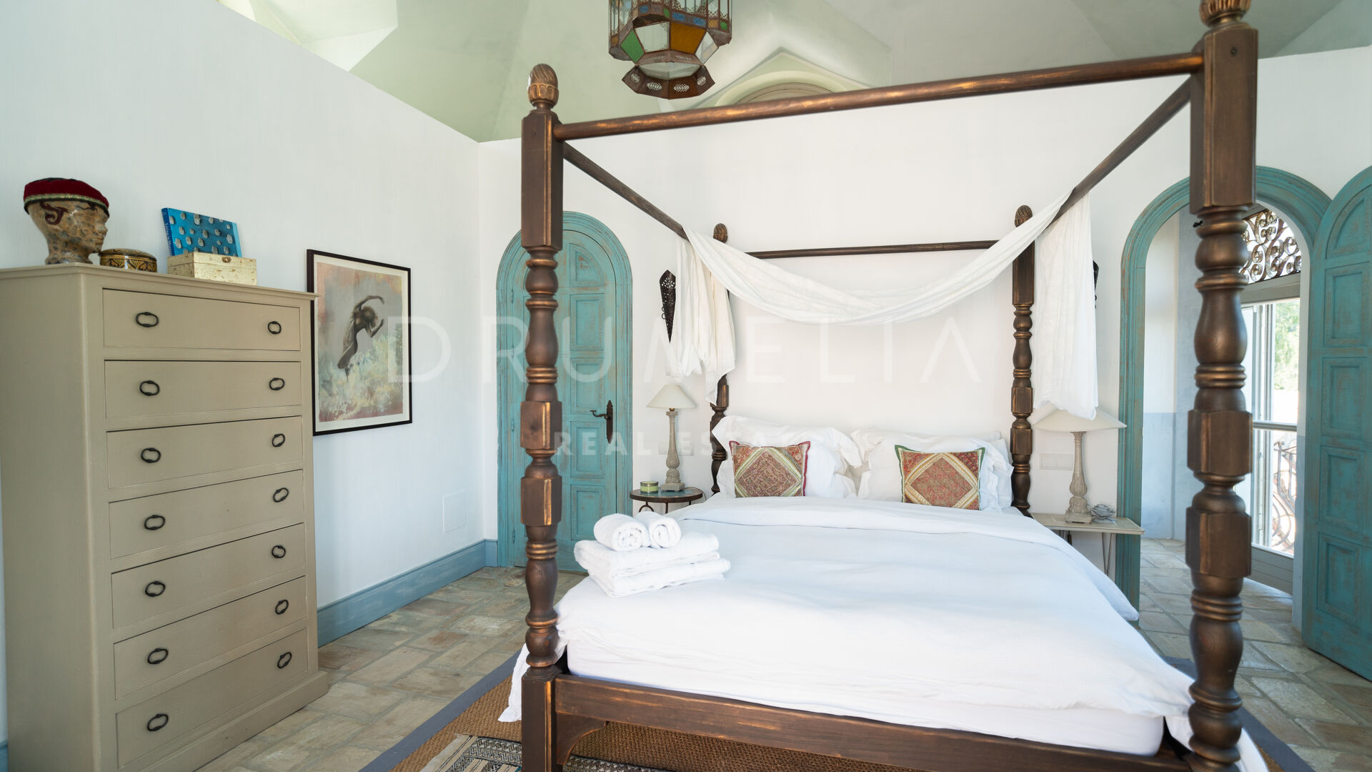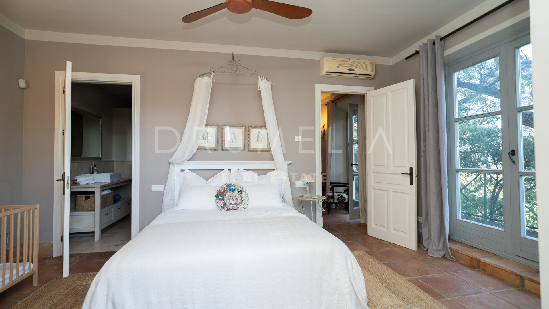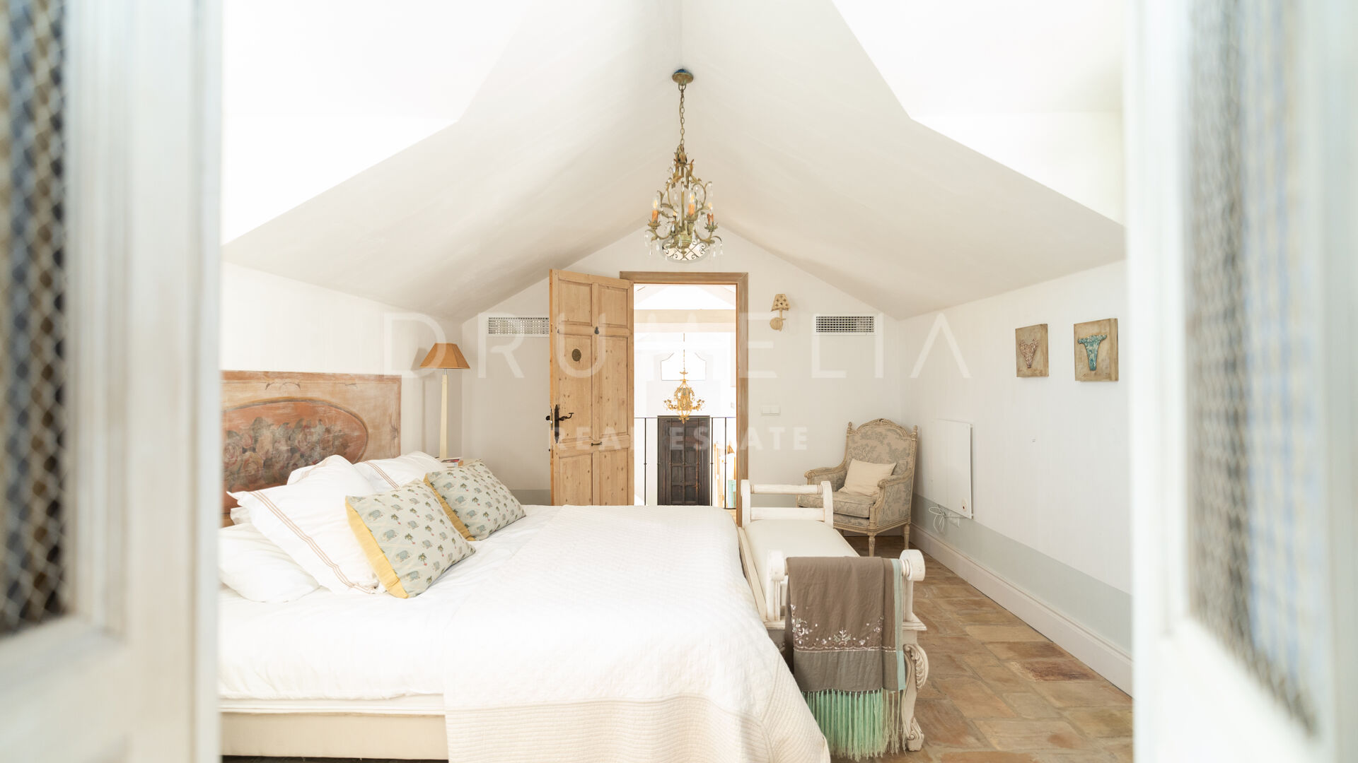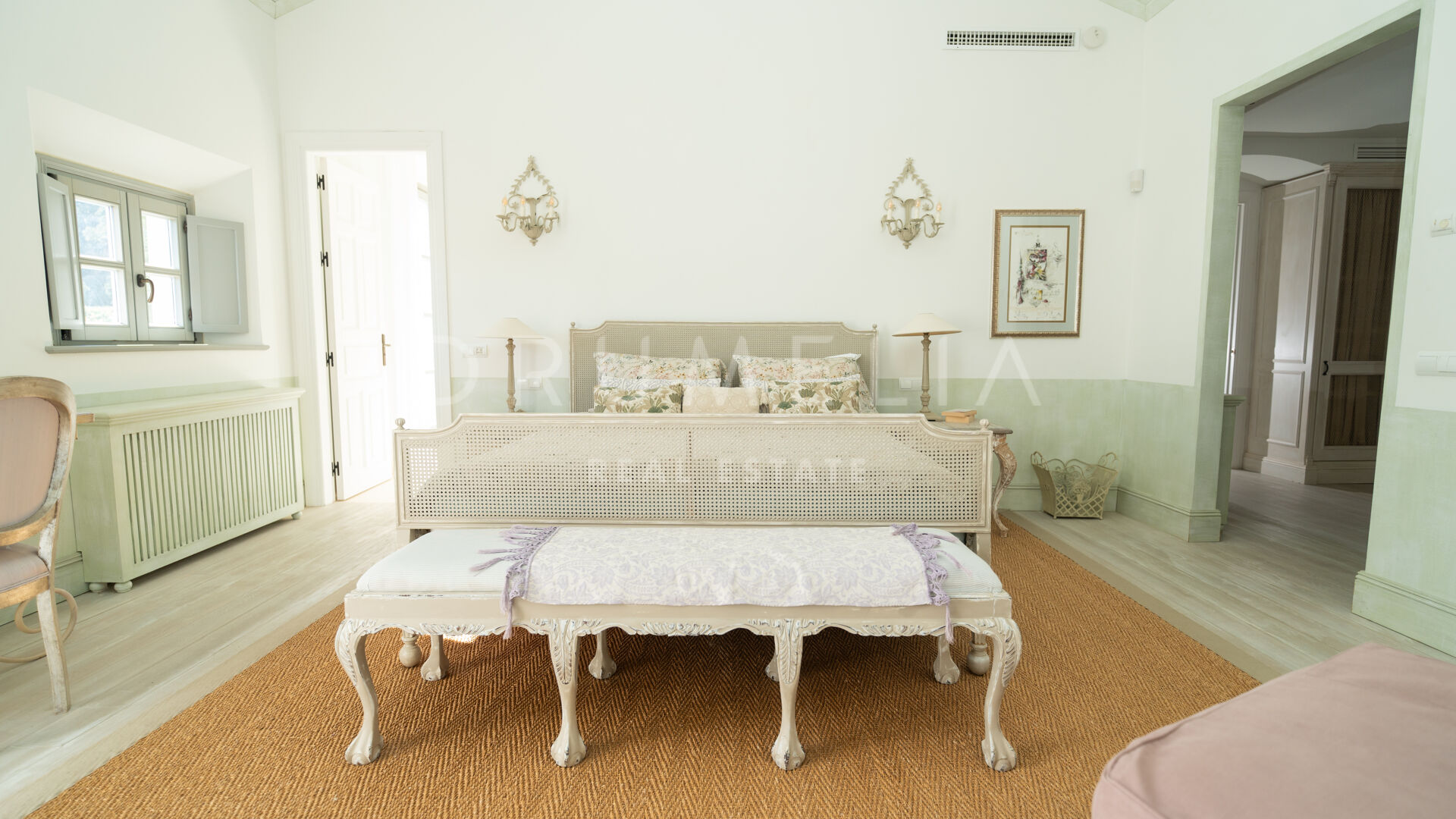 Эта изысканная вилла в андалузском стиле находится в закрытом эксклюзивном поселке Эль Мадроньяль в Бенахависе и представляет собой архитектурное произведение большой элегантности и традиций. Вход через старинные ворота ведет к впечатляющему центральному двору, отражающему характер и суть Андалусии во всей собственности.