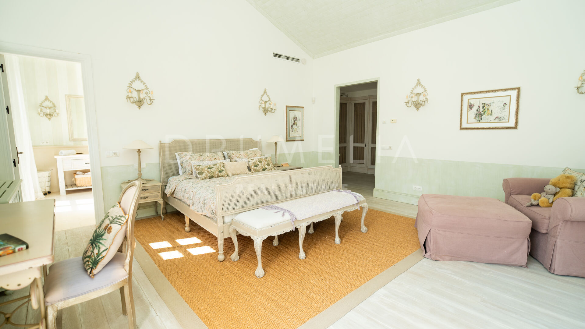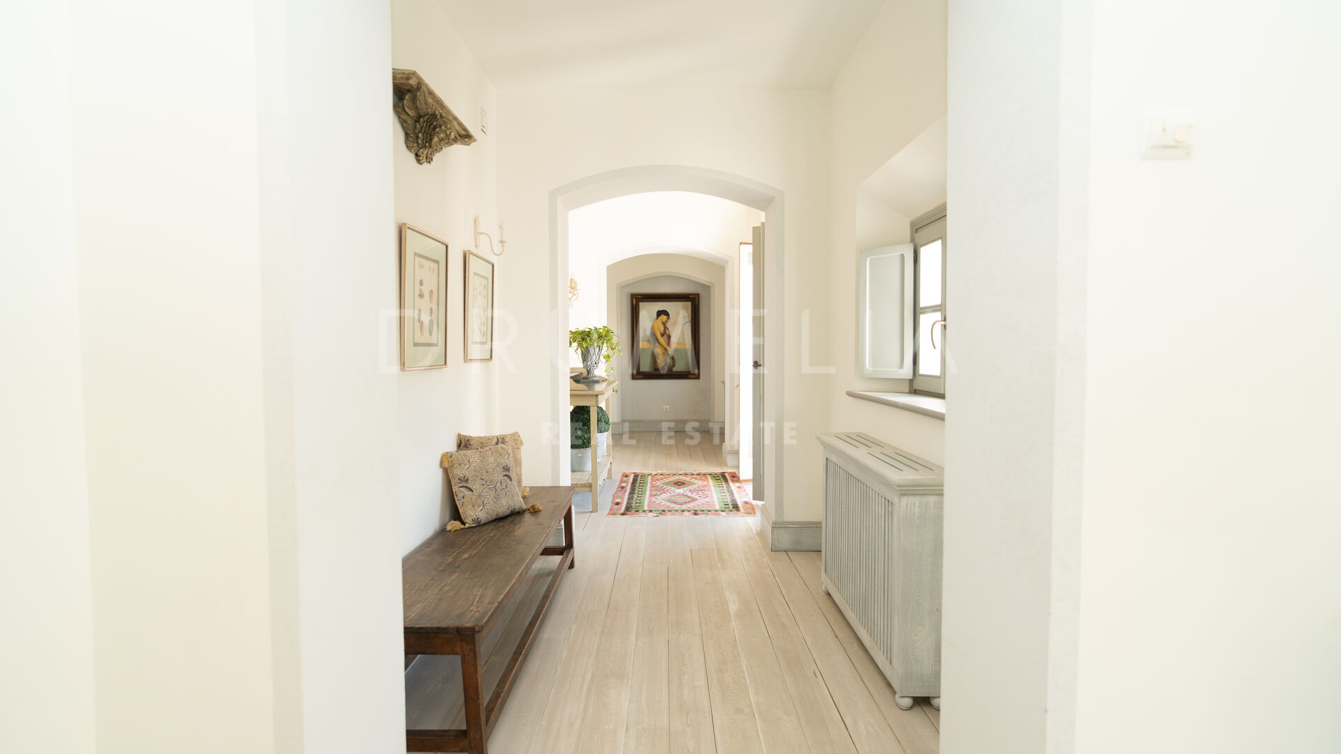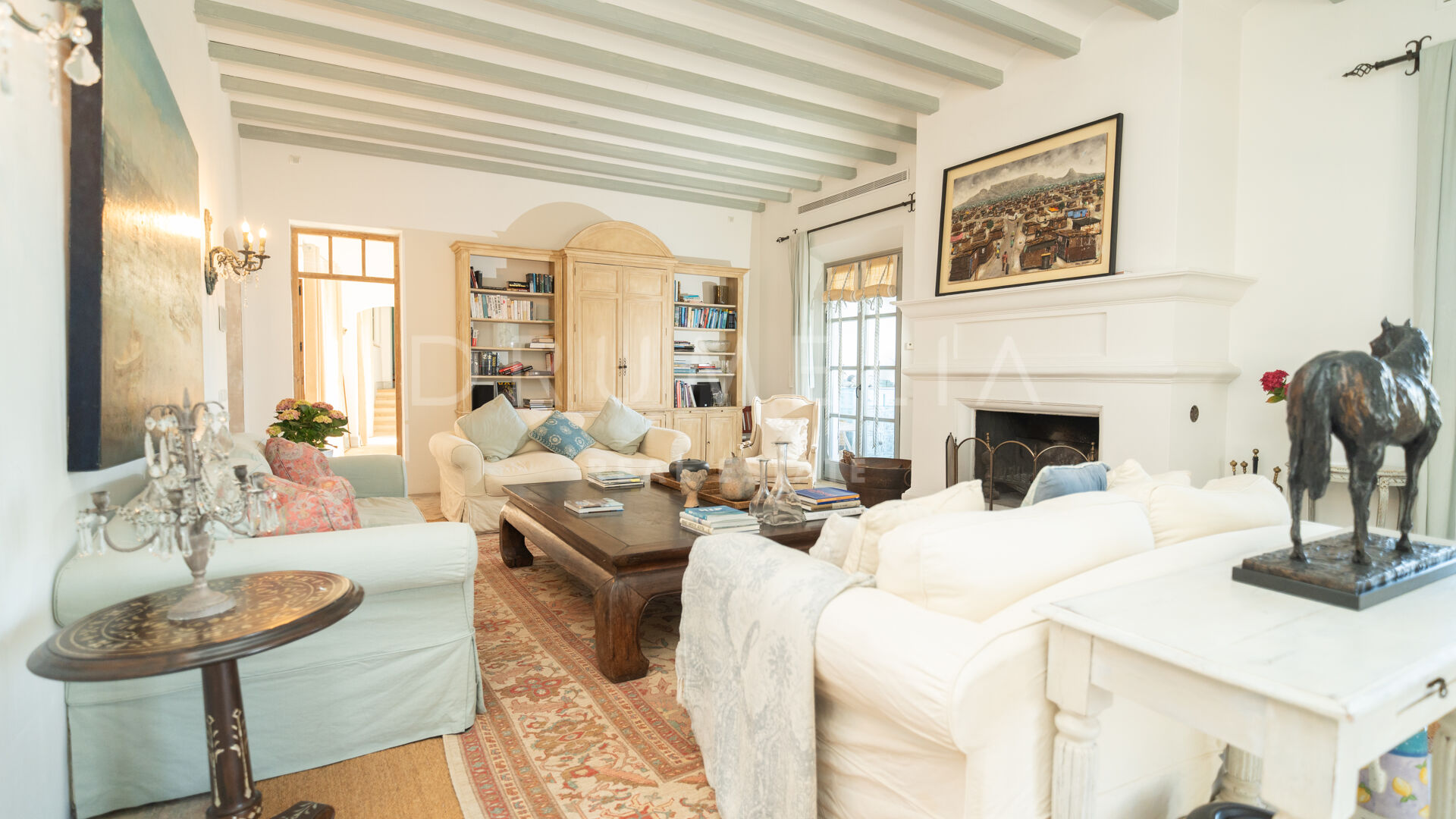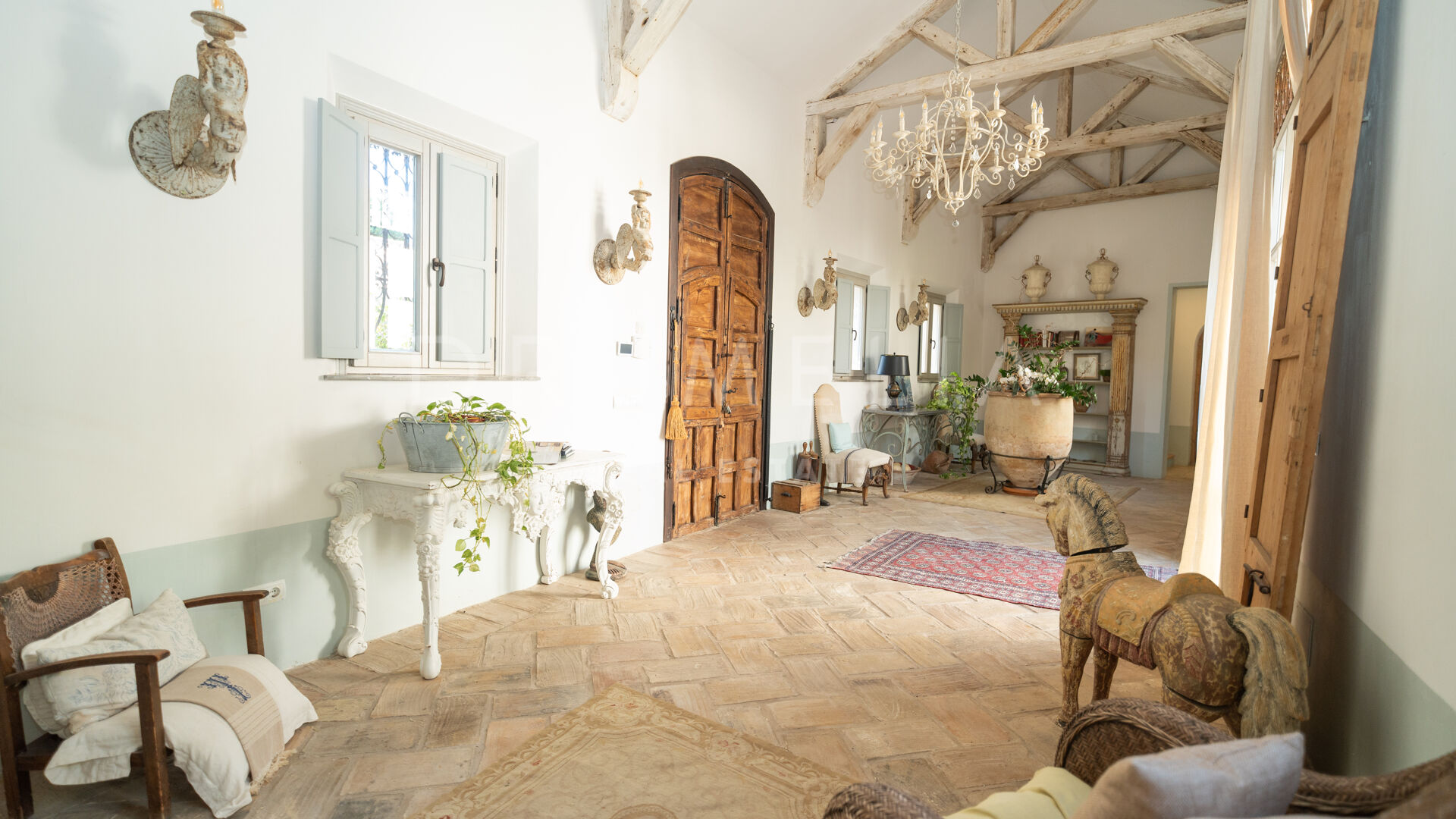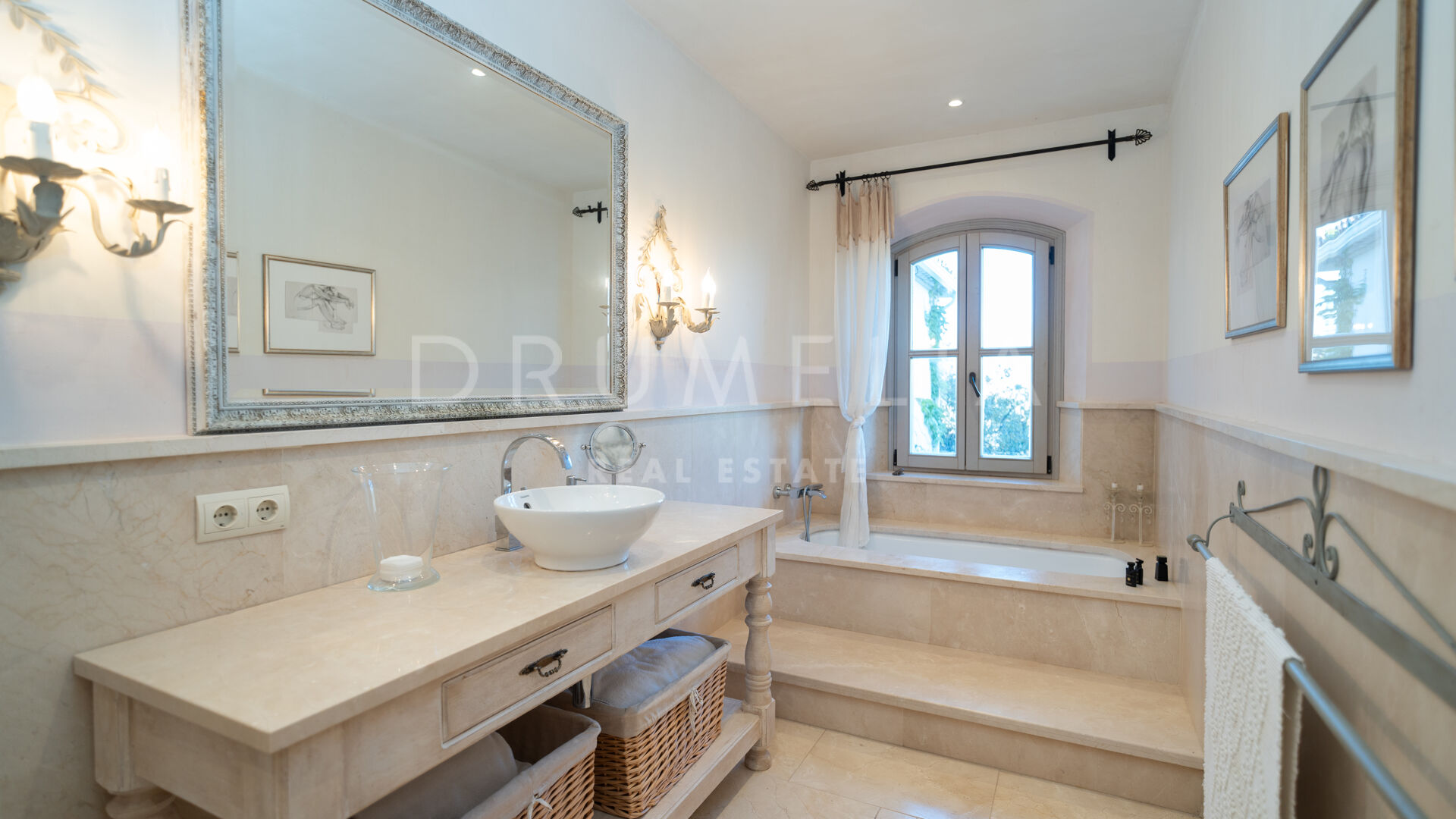 Эта изысканная вилла в андалузском стиле находится в закрытом эксклюзивном поселке Эль Мадроньяль в Бенахависе и представляет собой архитектурное произведение большой элегантности и традиций. Вход через старинные ворота ведет к впечатляющему центральному двору, отражающему характер и суть Андалусии во всей собственности.