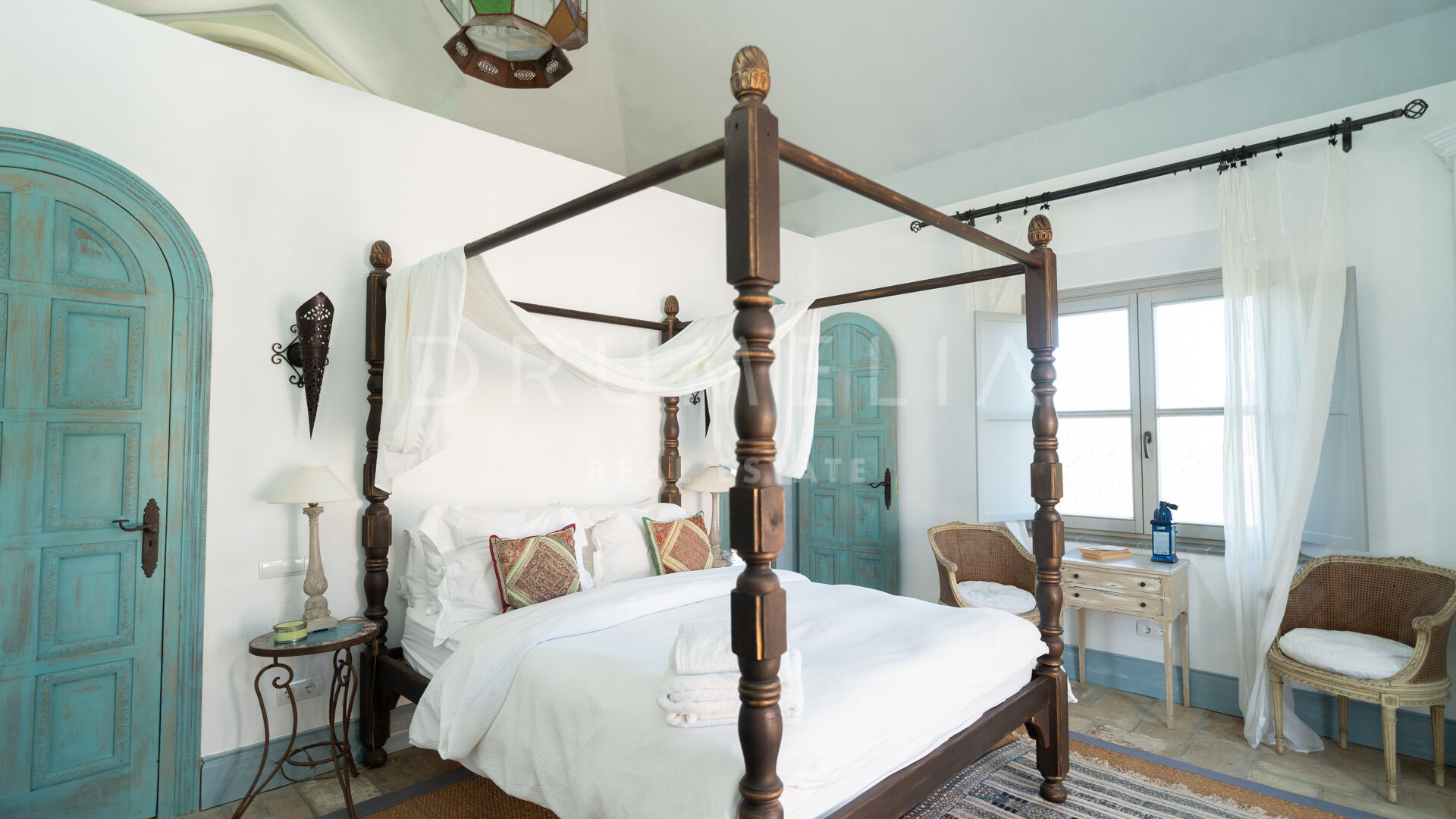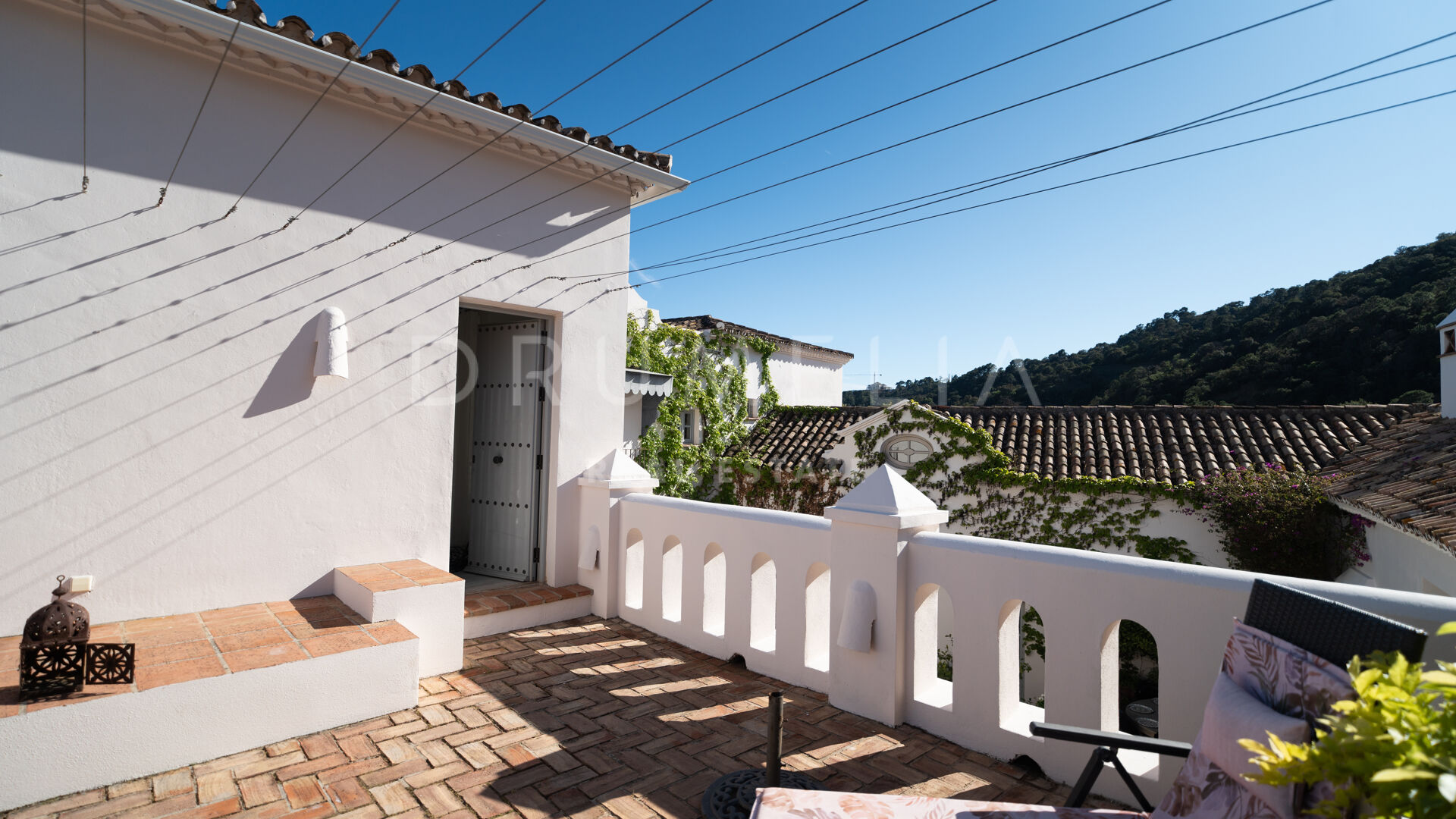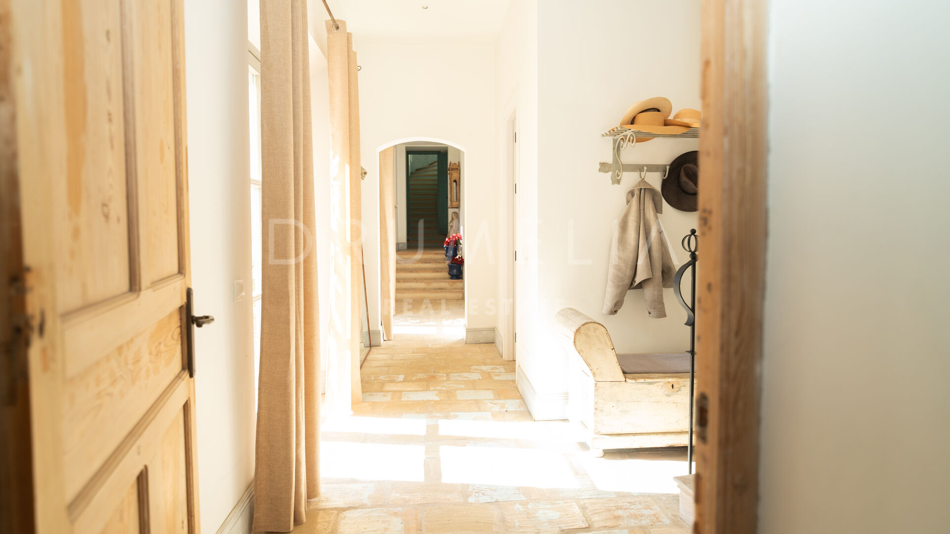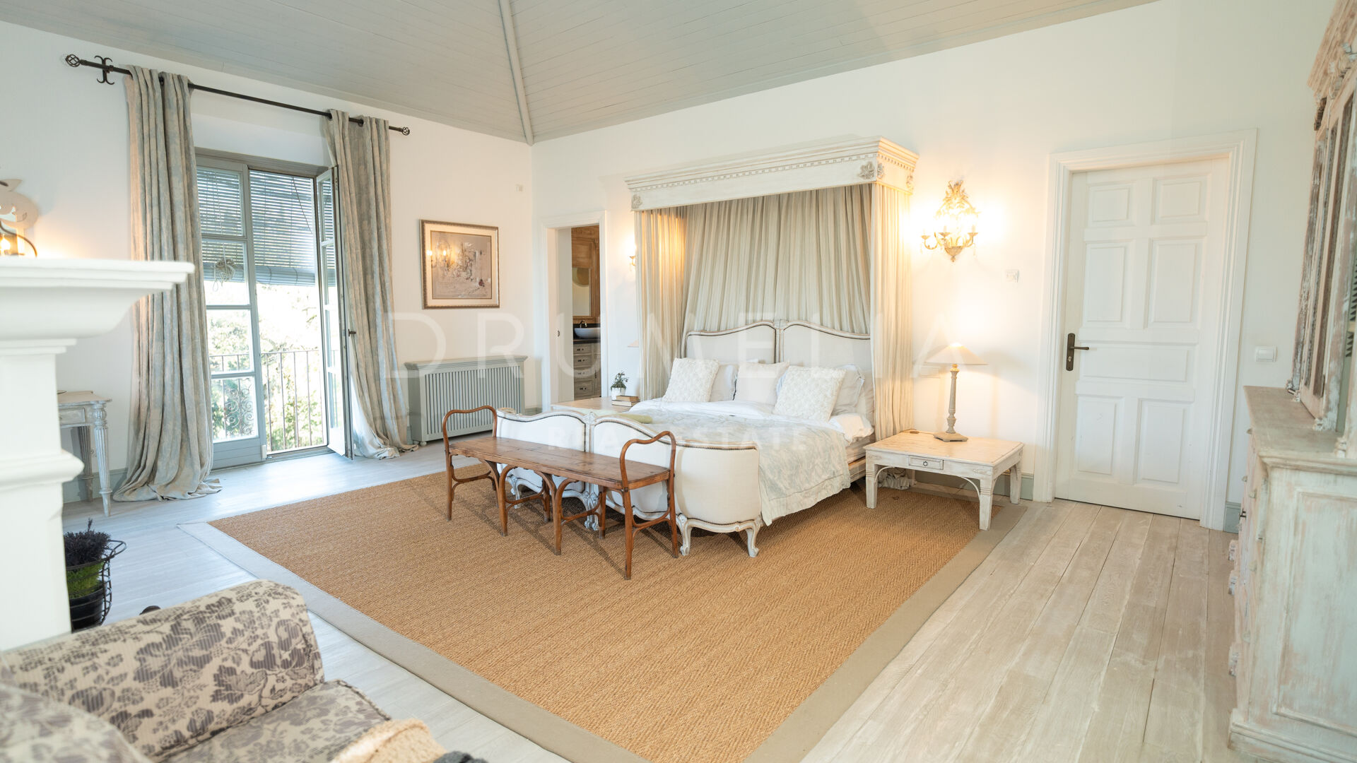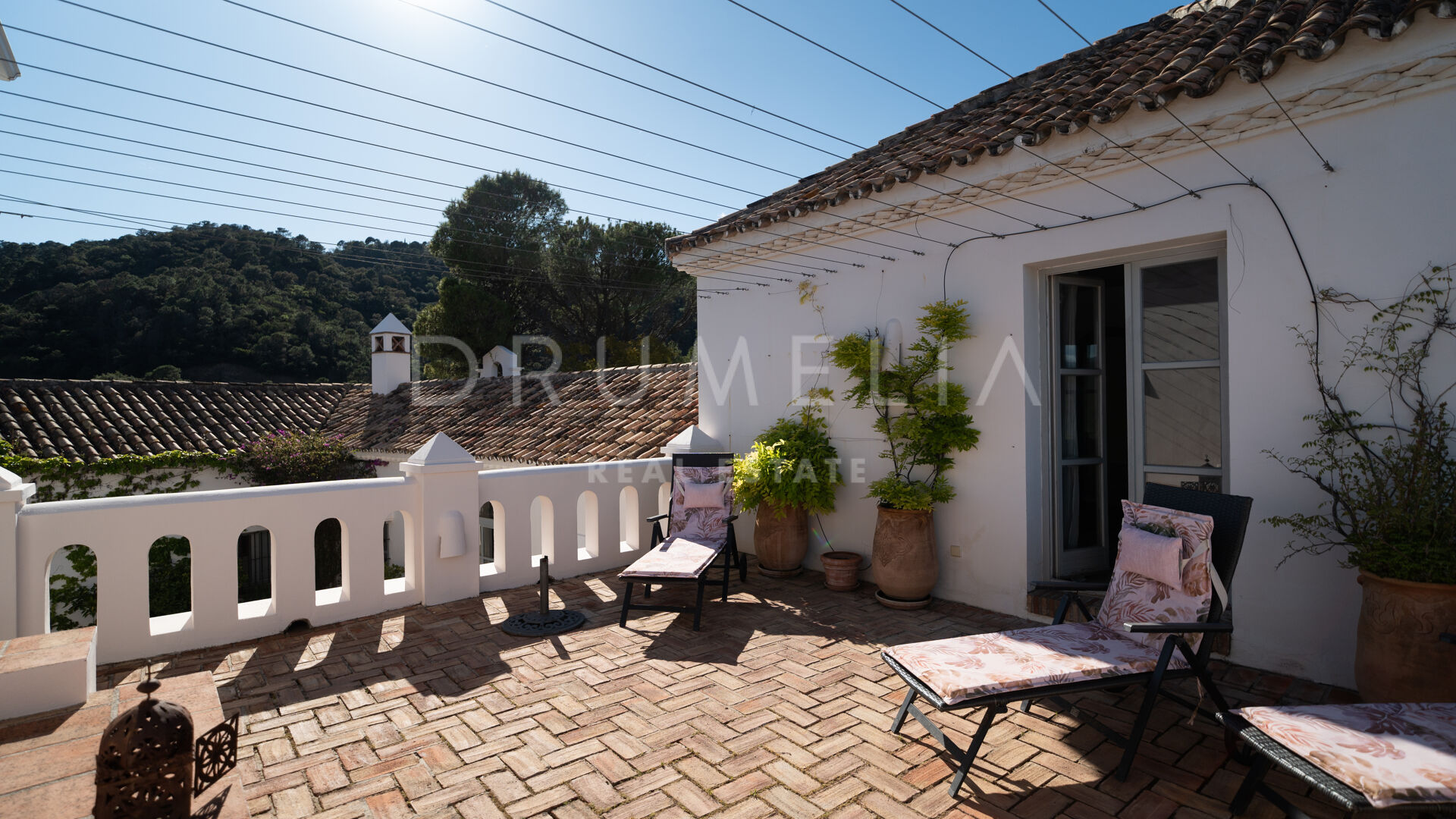 Эта изысканная вилла в андалузском стиле находится в закрытом эксклюзивном поселке Эль Мадроньяль в Бенахависе и представляет собой архитектурное произведение большой элегантности и традиций. Вход через старинные ворота ведет к впечатляющему центральному двору, отражающему характер и суть Андалусии во всей собственности.