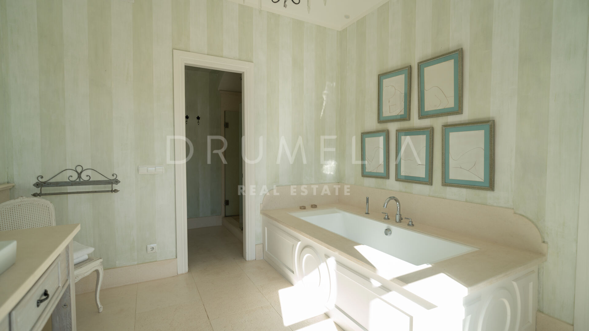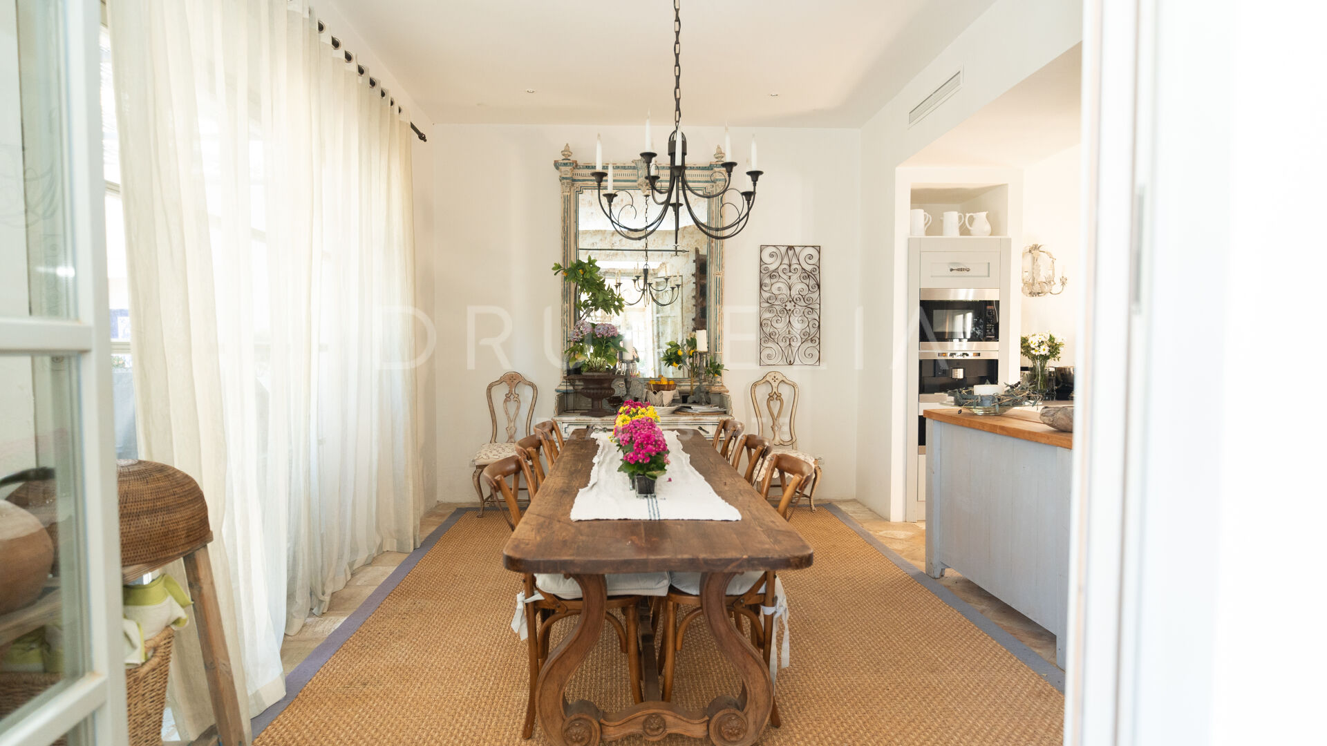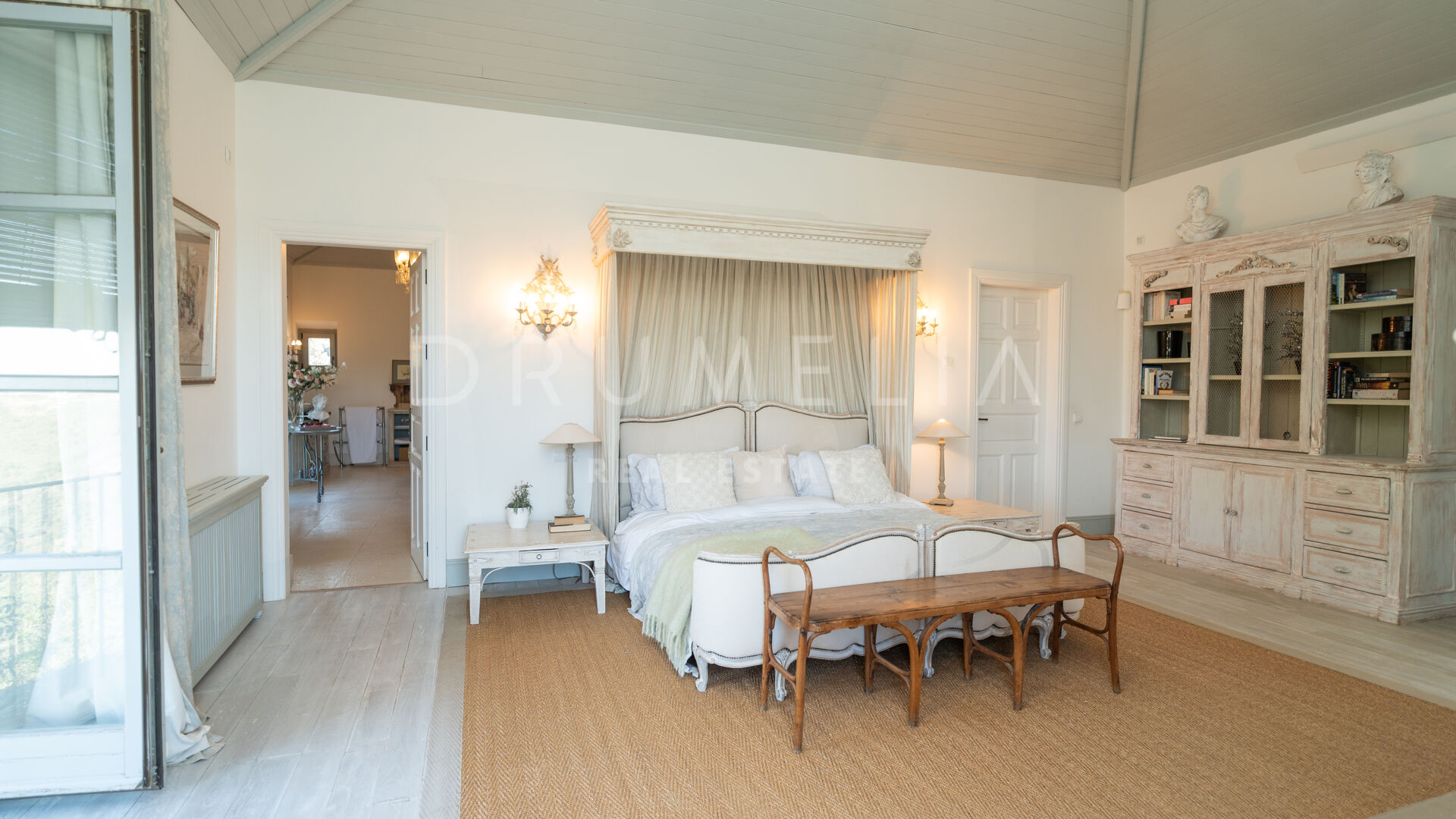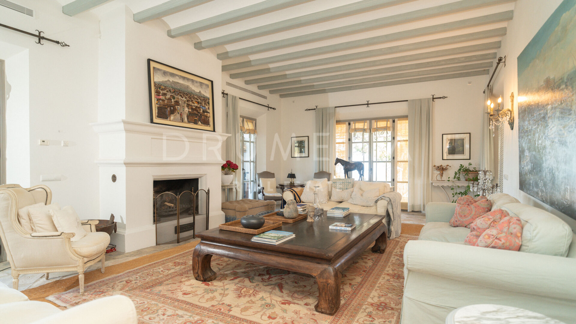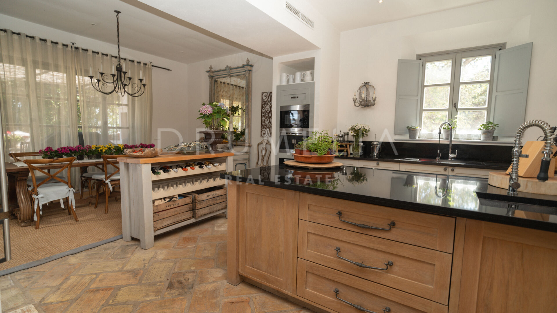 Эта изысканная вилла в андалузском стиле находится в закрытом эксклюзивном поселке Эль Мадроньяль в Бенахависе и представляет собой архитектурное произведение большой элегантности и традиций. Вход через старинные ворота ведет к впечатляющему центральному двору, отражающему характер и суть Андалусии во всей собственности.