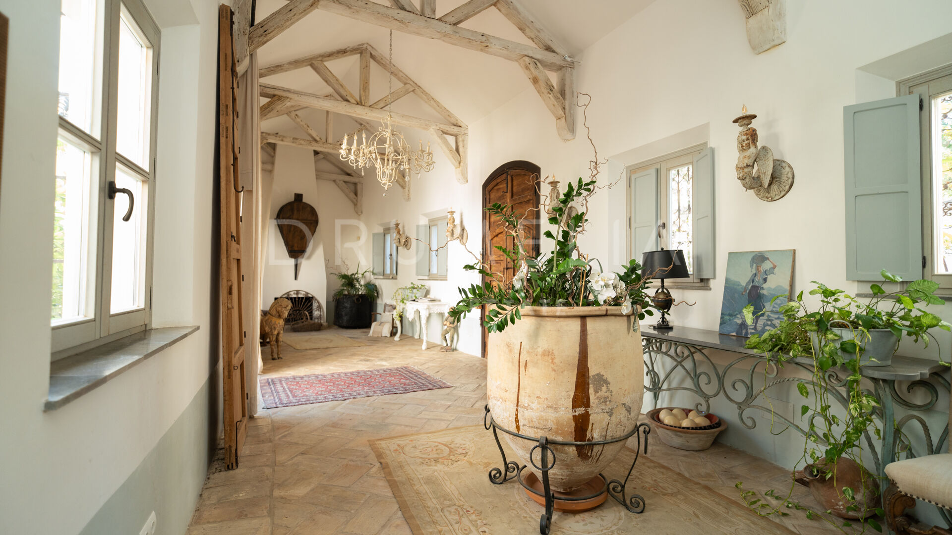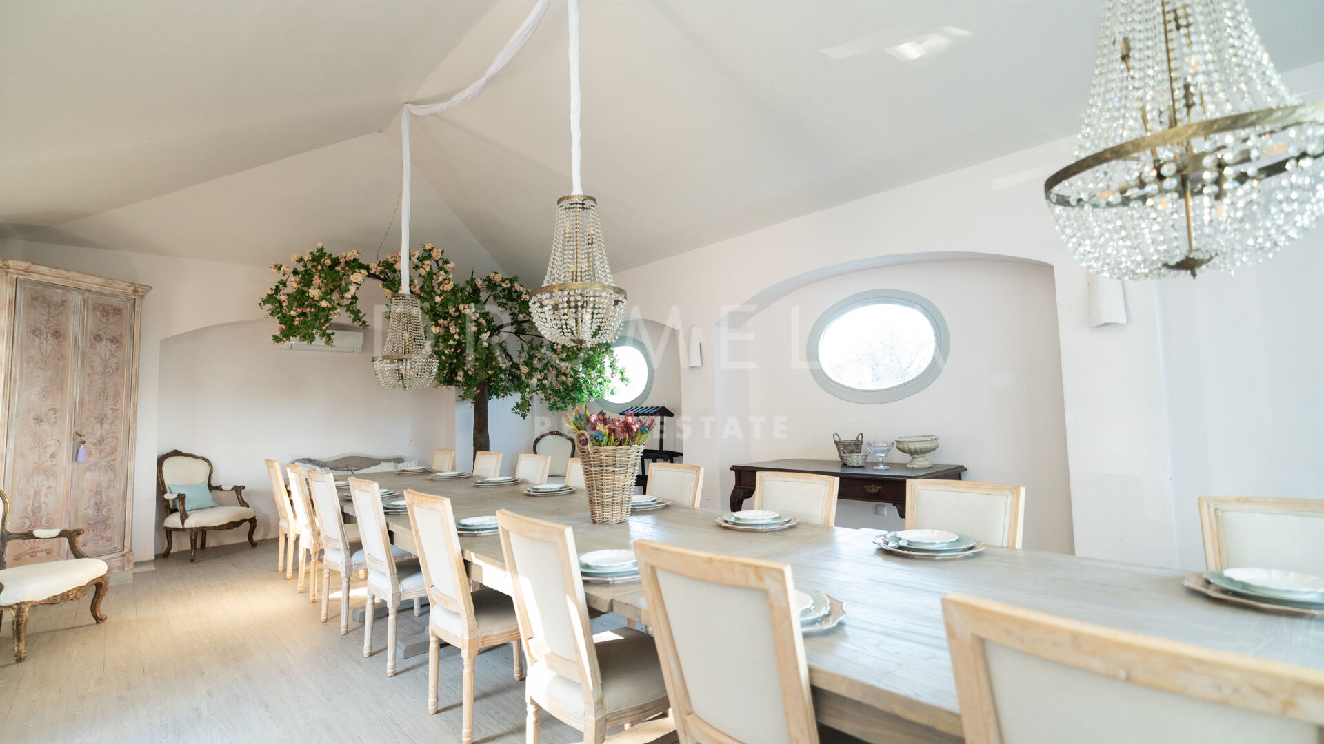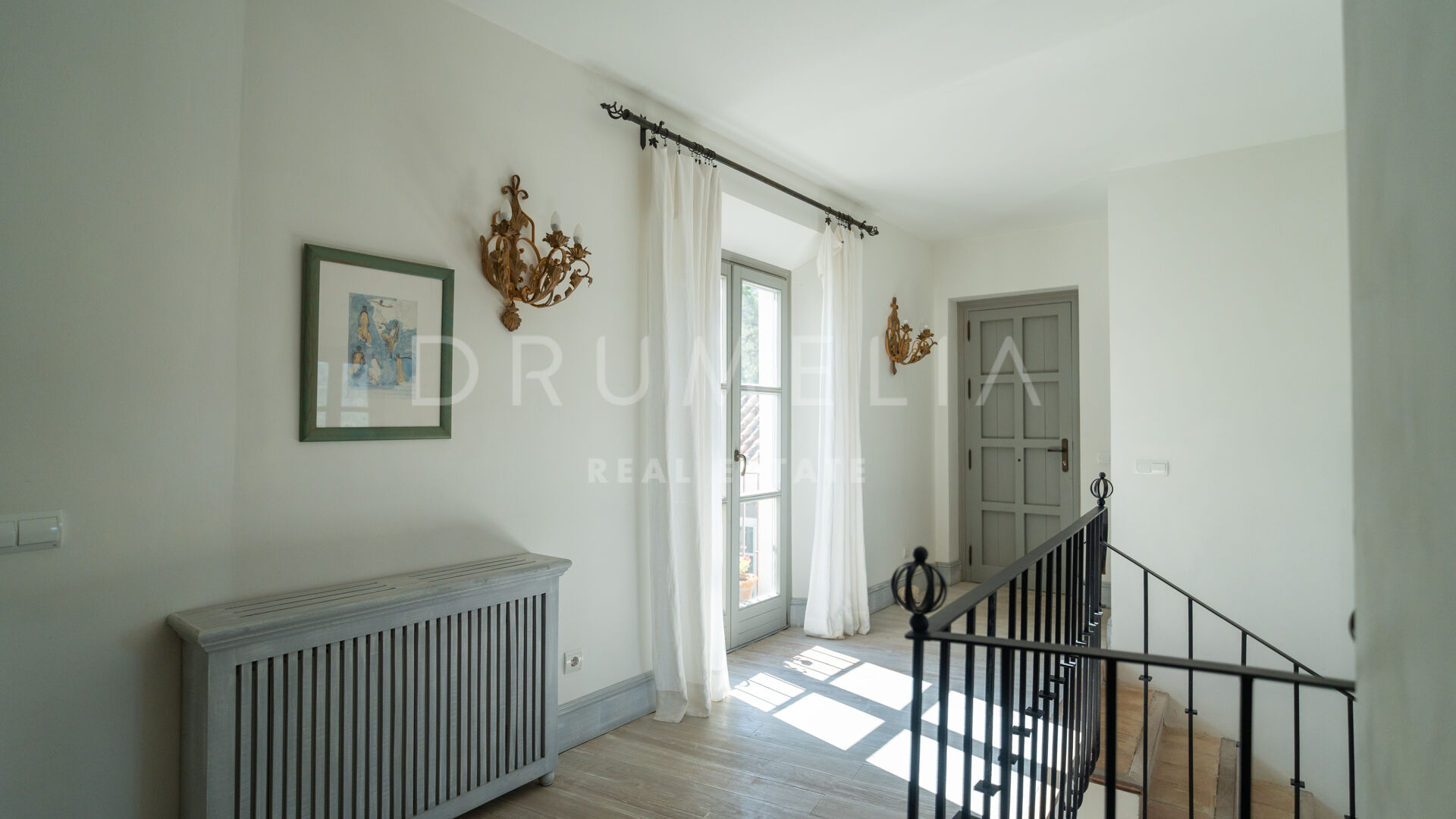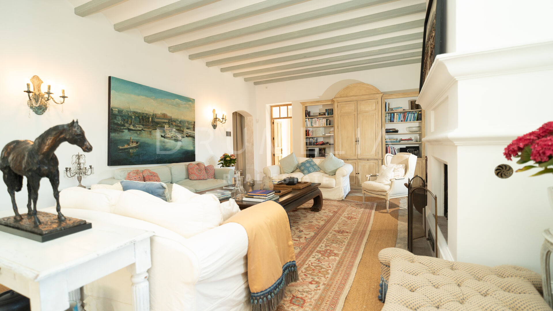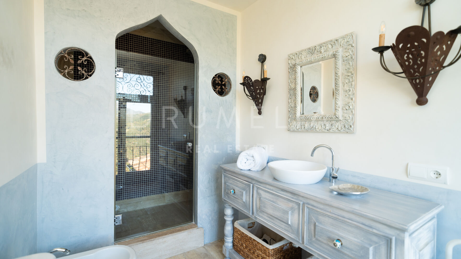 Интерьер выделяется гармоничным и детализированным дизайном с ручной работой каминов, расписными потолками и благородными материалами, создающими теплую и изысканную атмосферу. Просторные террасы и сады предлагают панорамный вид на Средиземное море и гору Ла Конча, дополняя привилегированную природную среду.