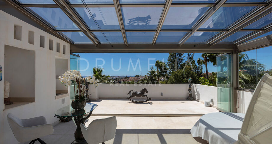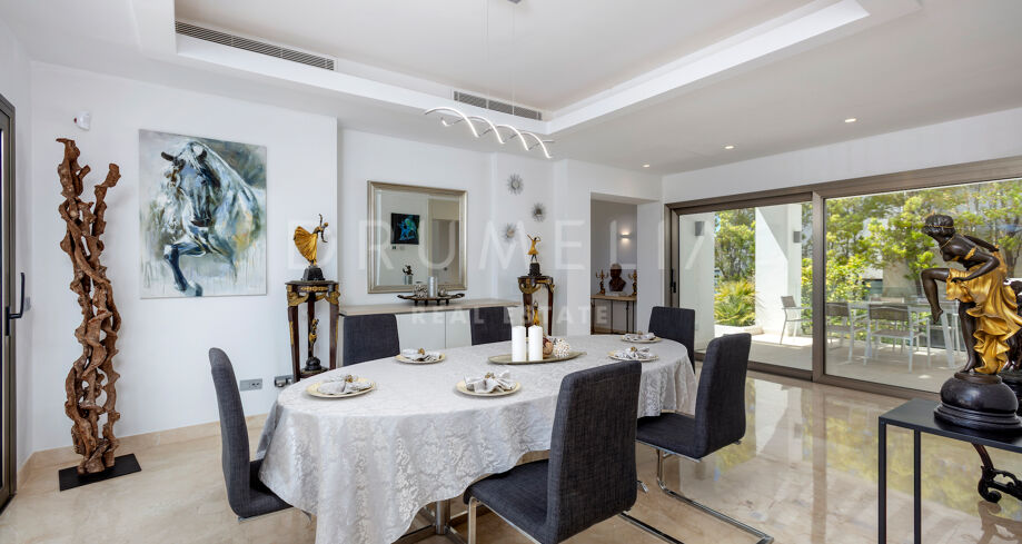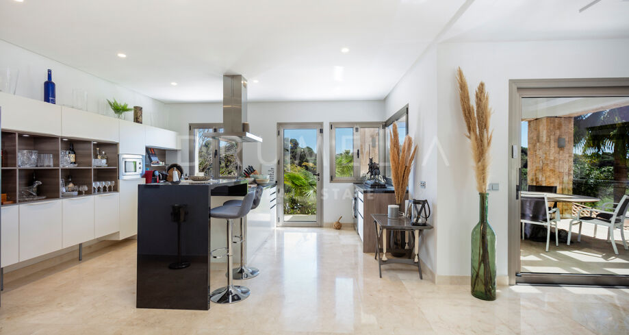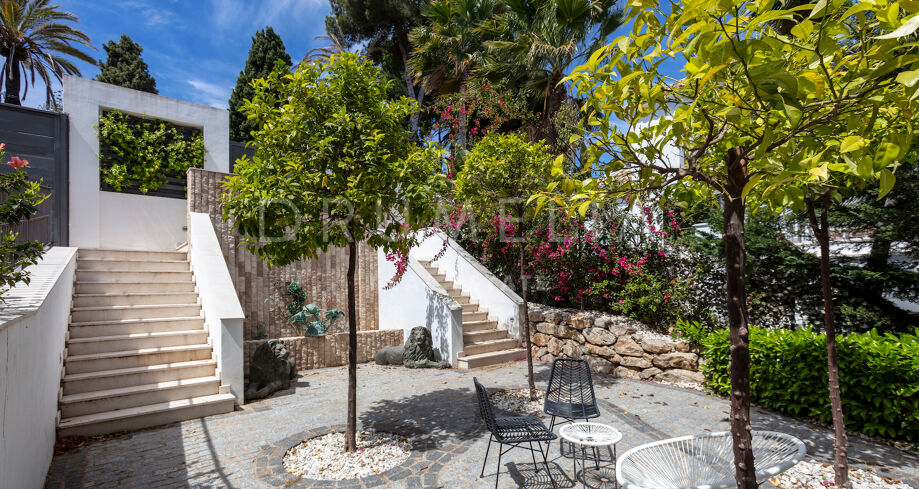 Открытые пространства предназначены для отдыха и развлечений и включают в себя обширную террасу площадью 200 м². Окруженная безупречными садами, вилла предлагает идеальные условия для обедов на свежем воздухе и отдыха. Ее расположение в Эль-Параисо, всего в десяти минутах от Пуэрто-Бануса, идеально подходит для тех, кто ищет яркий образ жизни рядом с побережьем и роскошными магазинами.