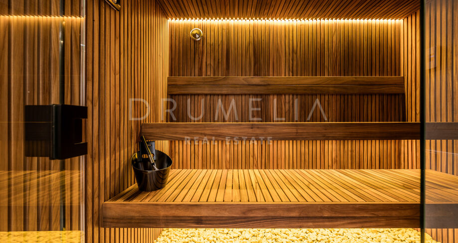 На улице просторные террасы идеальны для отдыха и приёма гостей, особенно с учётом западной ориентации и великолепного вида на горы. Частный спортзал и сауна дополняют зону релакса, а подогреваемый бассейн пригоден для использования круглый год. Эта вилла — идеальный баланс роскоши, комфорта и стиля, будь то закат в ванной или тёплый вечер с друзьями.