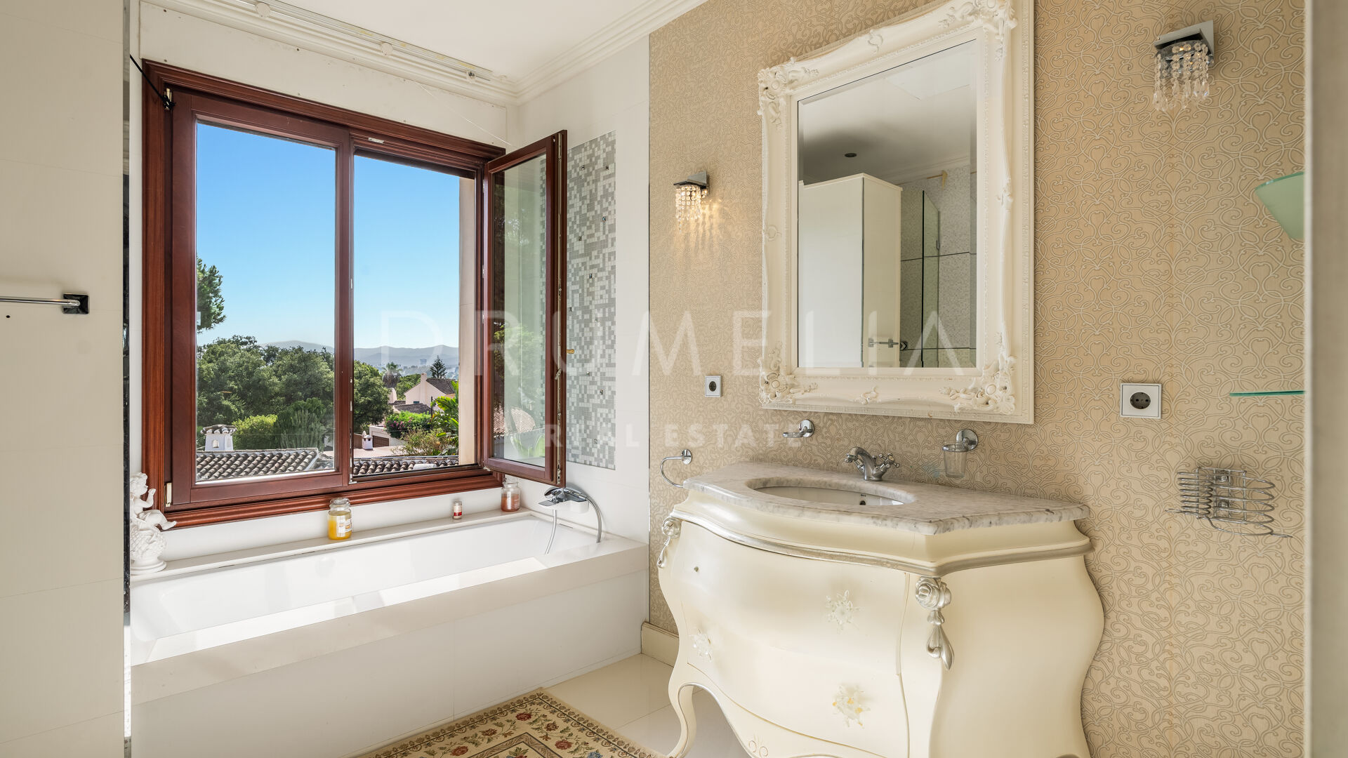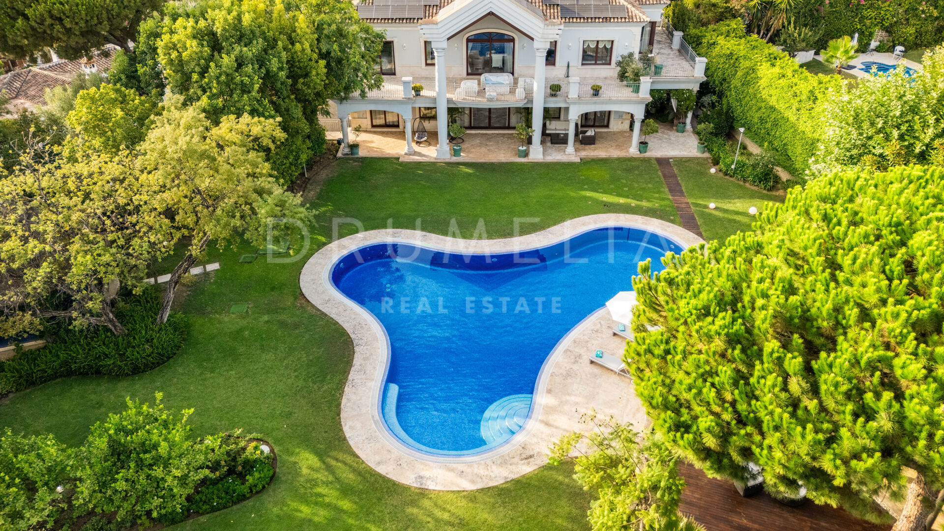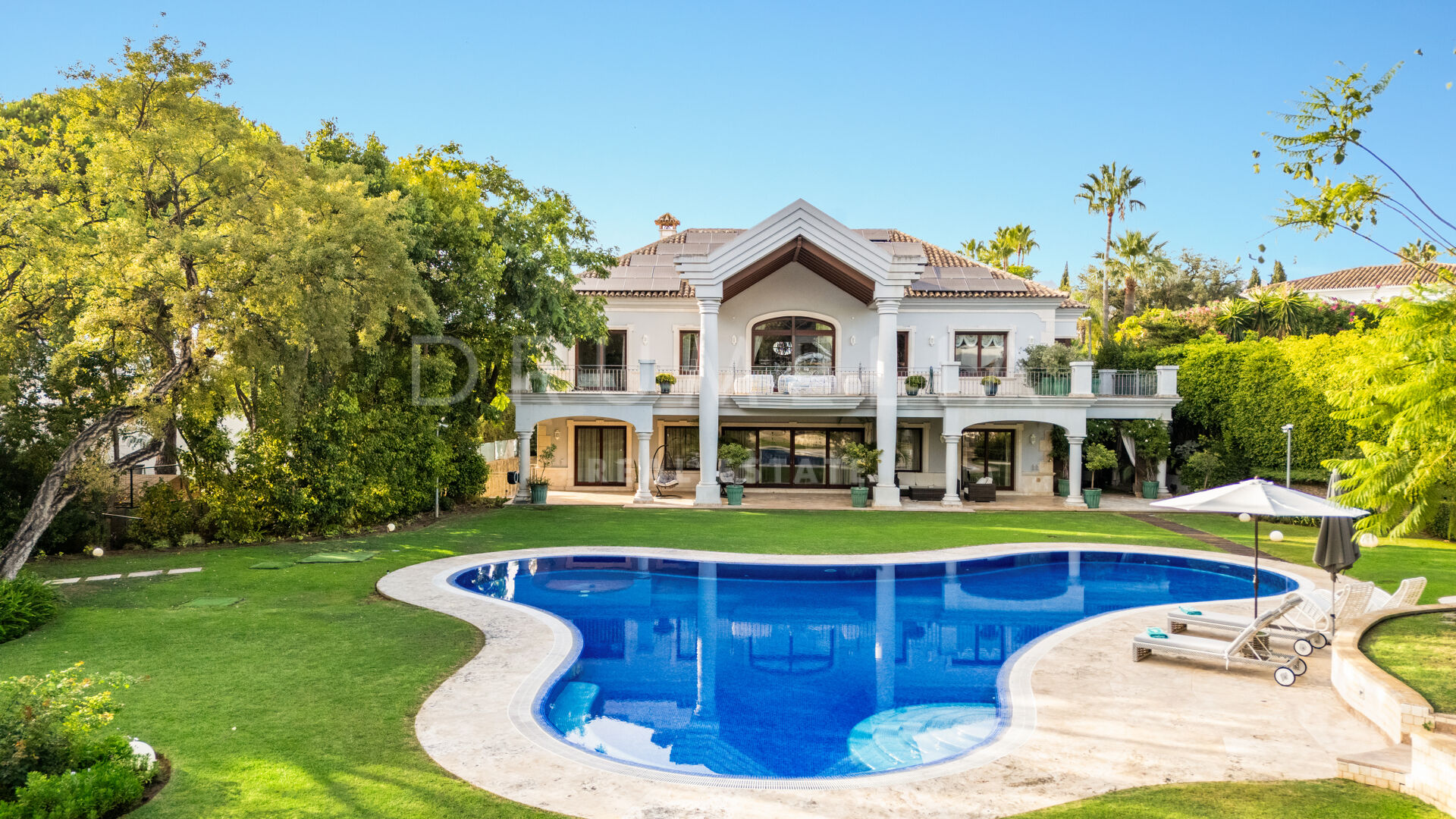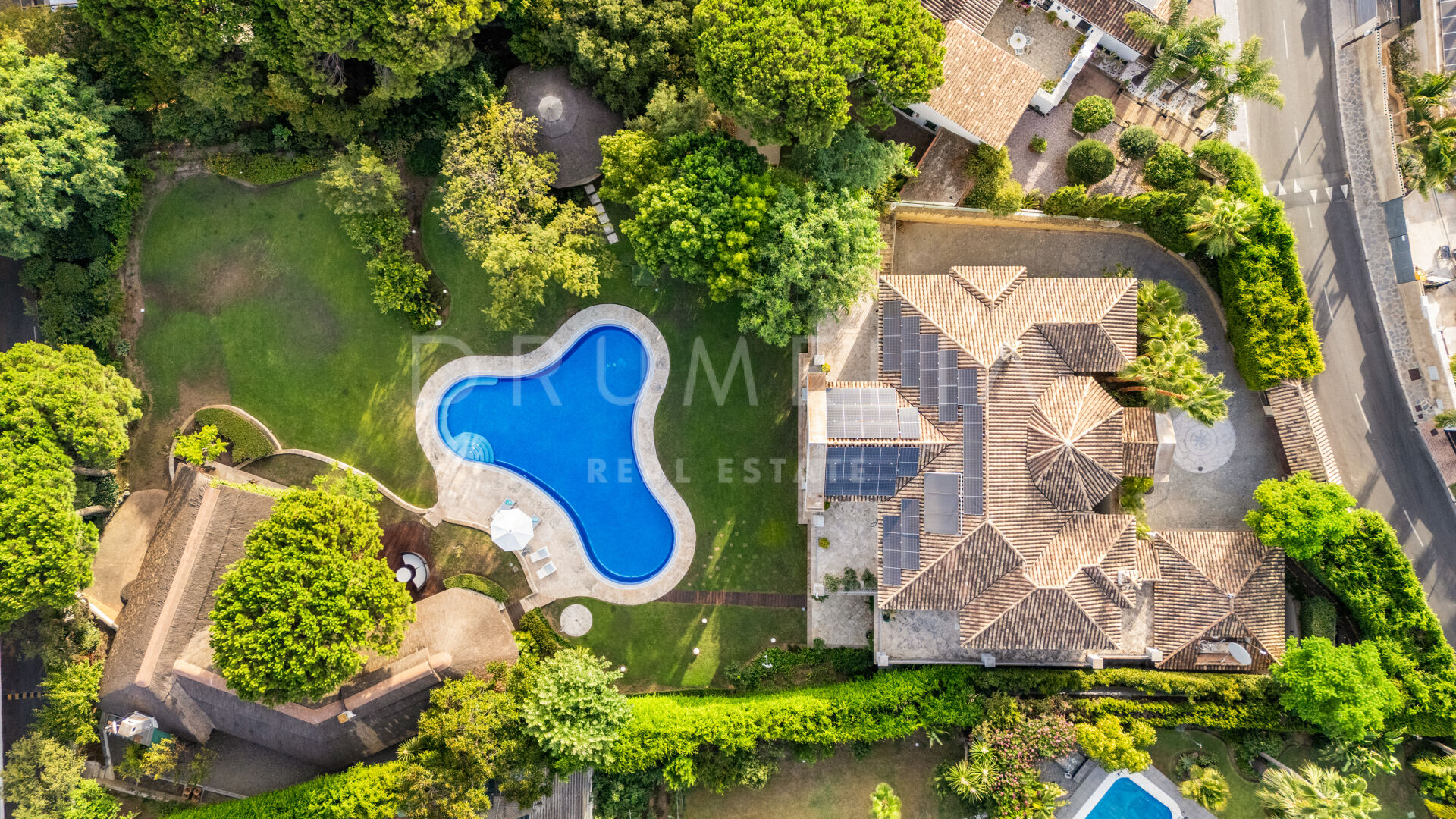 Расположенная на редком большом и ровном участке в престижном жилом районе Эль Росарио, Марбелья, эта элегантная вилла предлагает уникальное сочетание уединения, простора и вечного очарования. Окружённая зрелыми ухоженными садами, недвижимость наслаждается атмосферой спокойствия всего в нескольких минутах от пляжа, лучших полей для гольфа, международных школ, теннисных клубов, отличных ресторанов, бутиков и золотых пляжей с их непринуждёнными пляжными клубами и очаровательными прибрежными кафе.