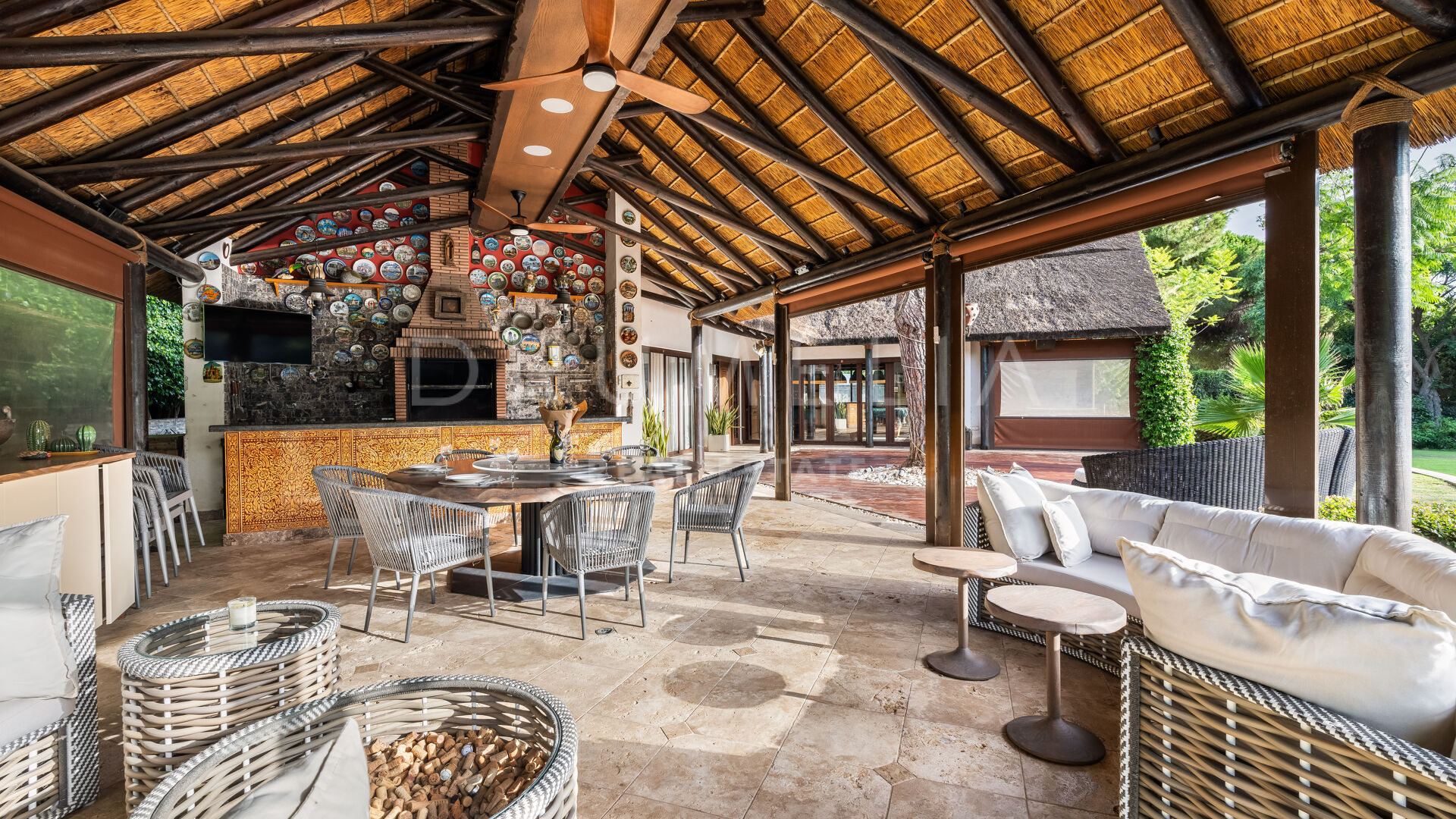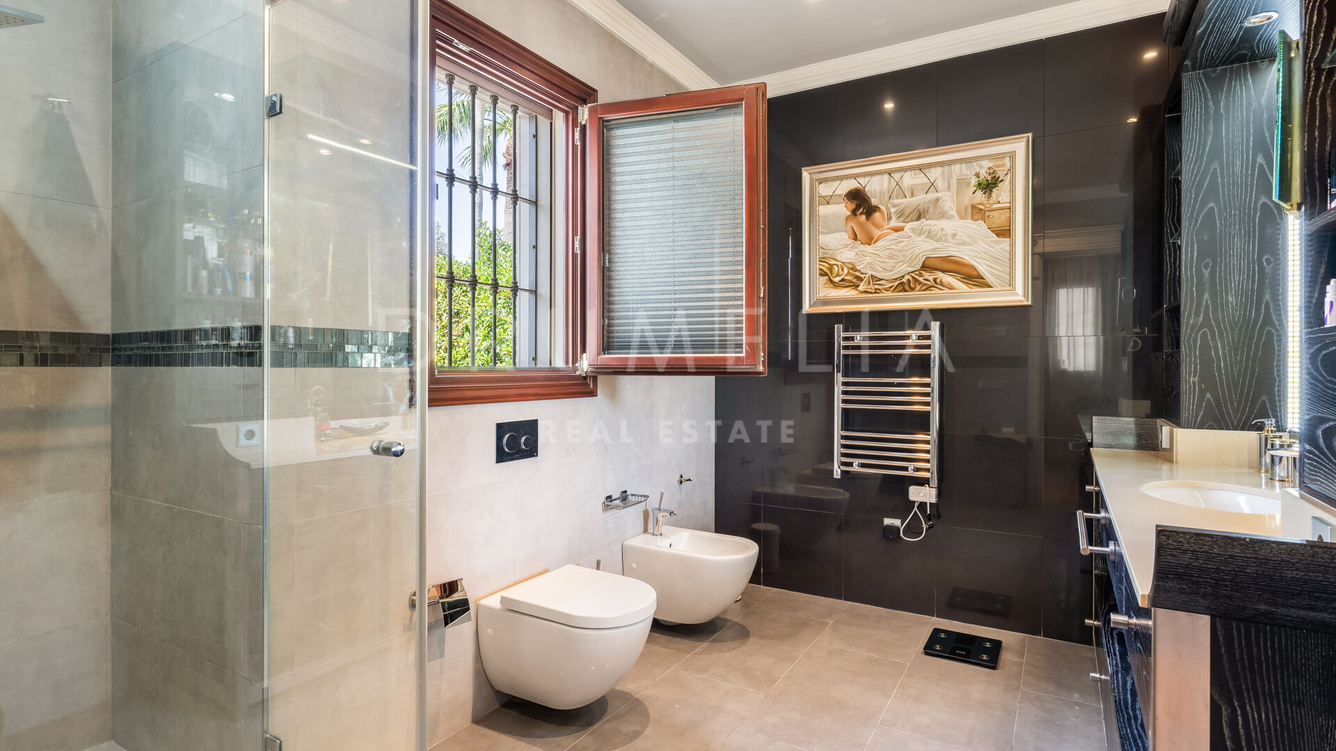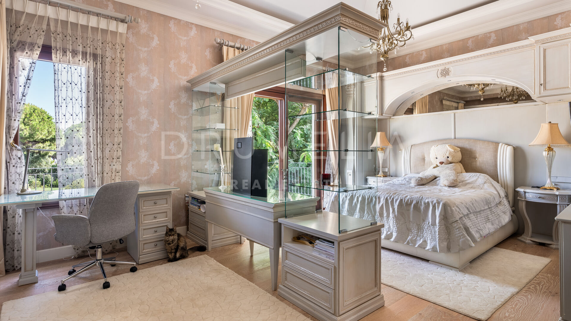 Расположенная на редком большом и ровном участке в престижном жилом районе Эль Росарио, Марбелья, эта элегантная вилла предлагает уникальное сочетание уединения, простора и вечного очарования. Окружённая зрелыми ухоженными садами, недвижимость наслаждается атмосферой спокойствия всего в нескольких минутах от пляжа, лучших полей для гольфа, международных школ, теннисных клубов, отличных ресторанов, бутиков и золотых пляжей с их непринуждёнными пляжными клубами и очаровательными прибрежными кафе.