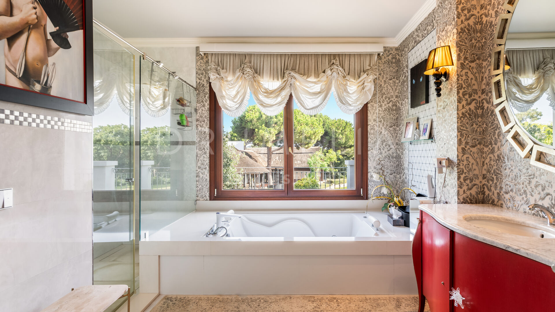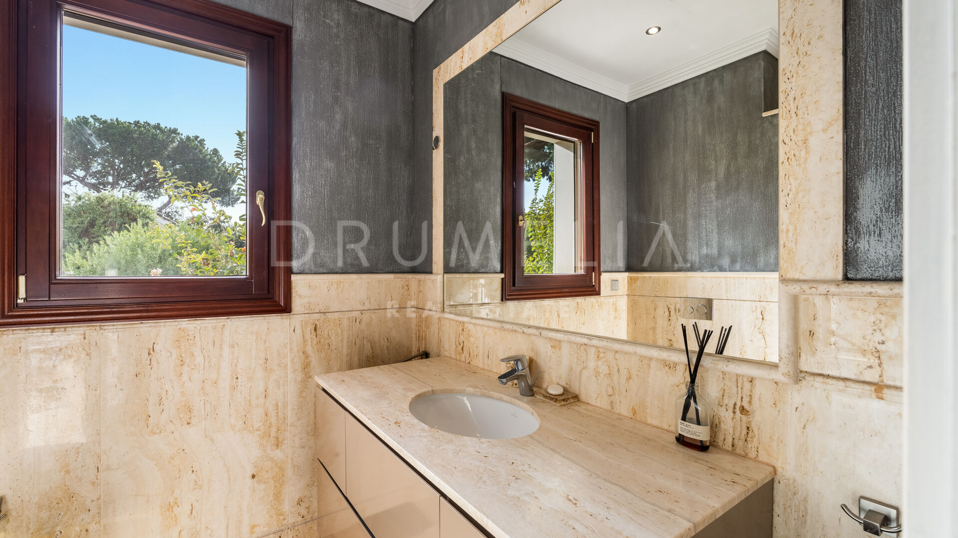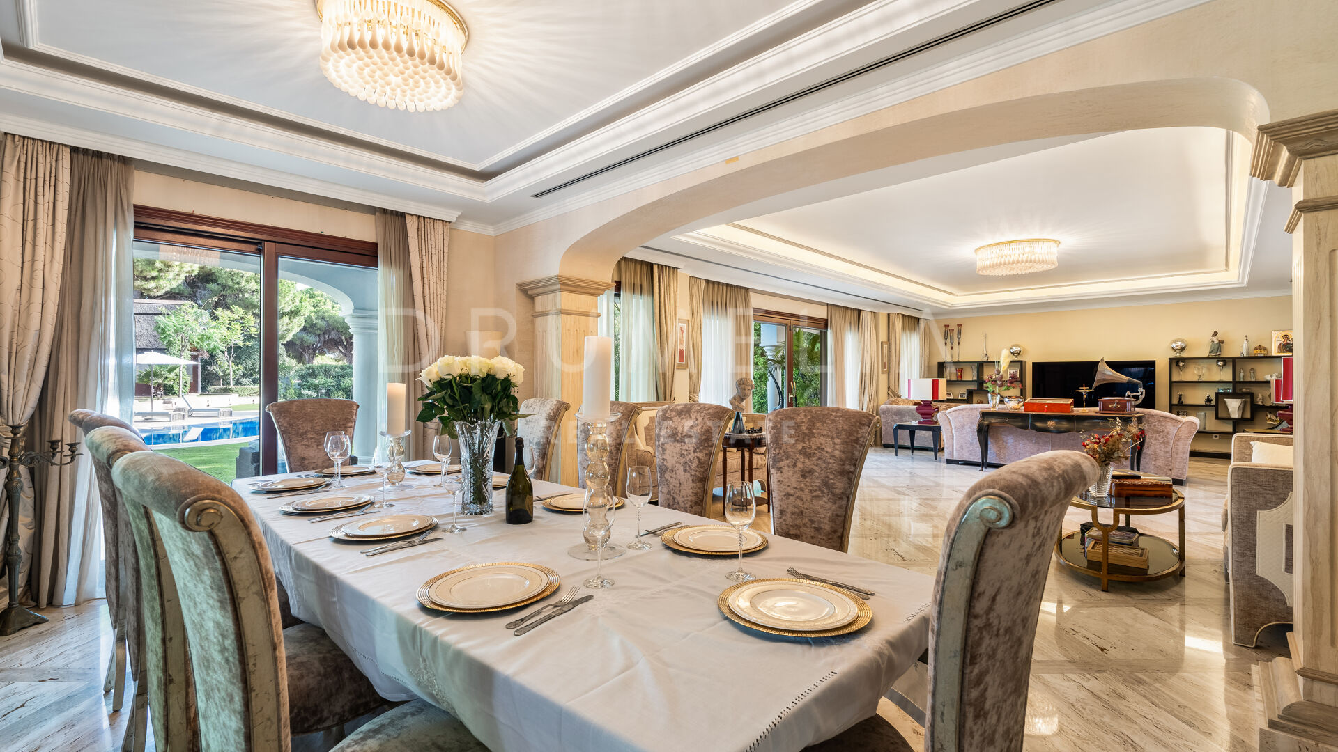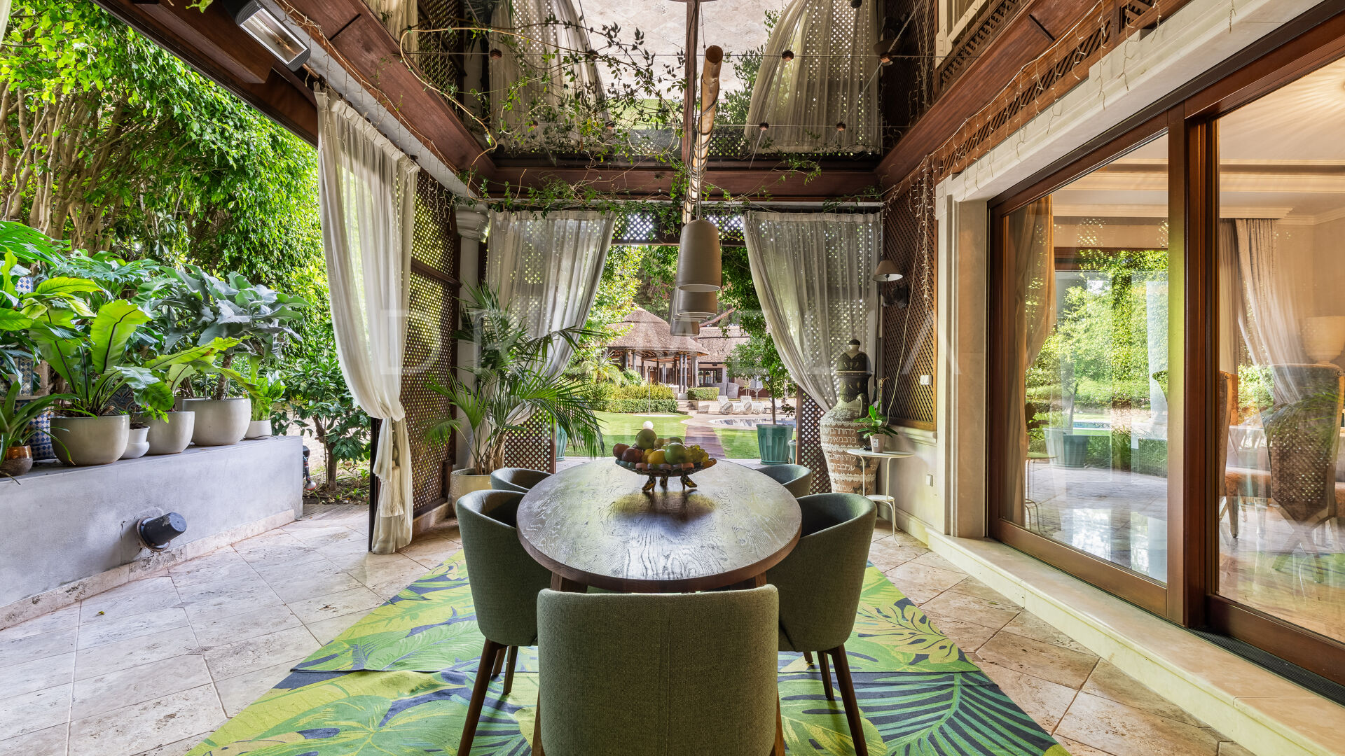 Расположенная на редком большом и ровном участке в престижном жилом районе Эль Росарио, Марбелья, эта элегантная вилла предлагает уникальное сочетание уединения, простора и вечного очарования. Окружённая зрелыми ухоженными садами, недвижимость наслаждается атмосферой спокойствия всего в нескольких минутах от пляжа, лучших полей для гольфа, международных школ, теннисных клубов, отличных ресторанов, бутиков и золотых пляжей с их непринуждёнными пляжными клубами и очаровательными прибрежными кафе.