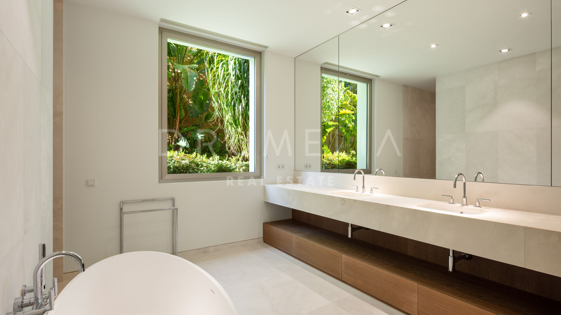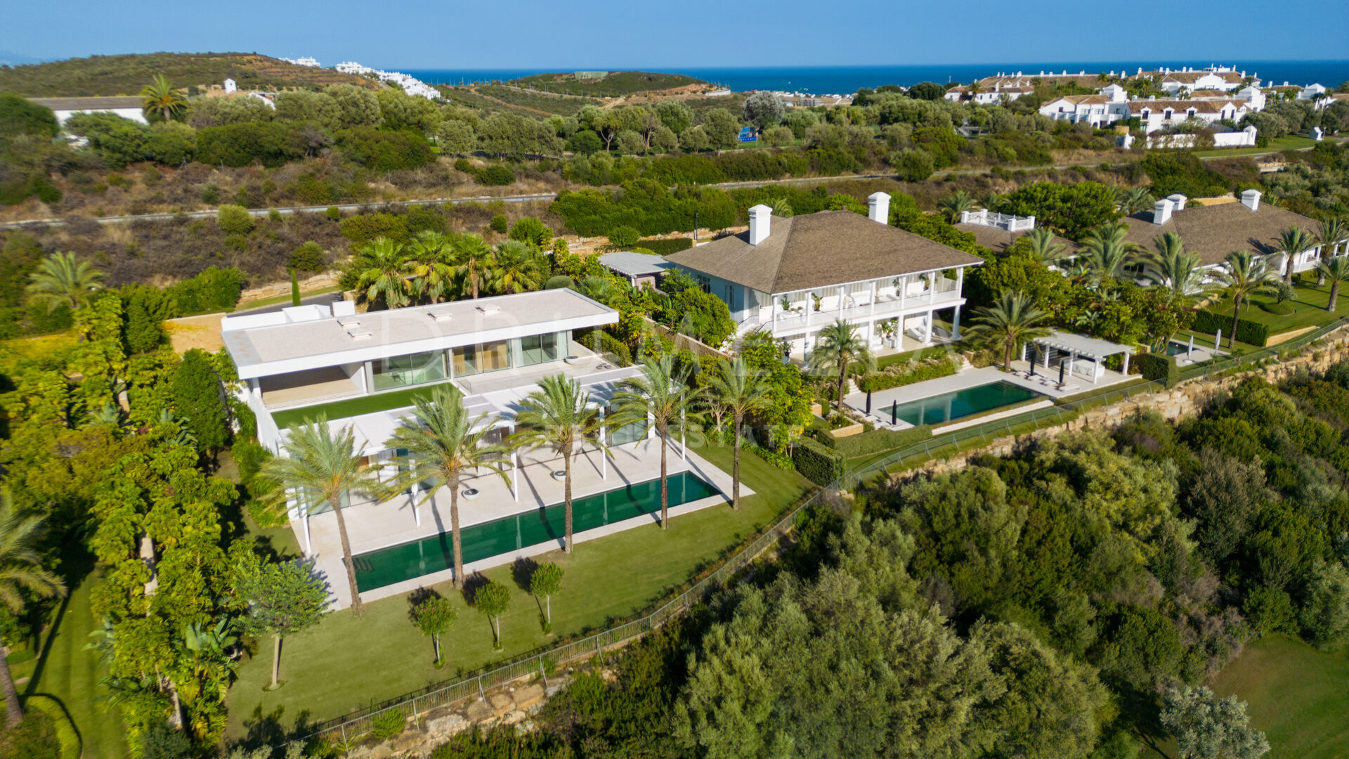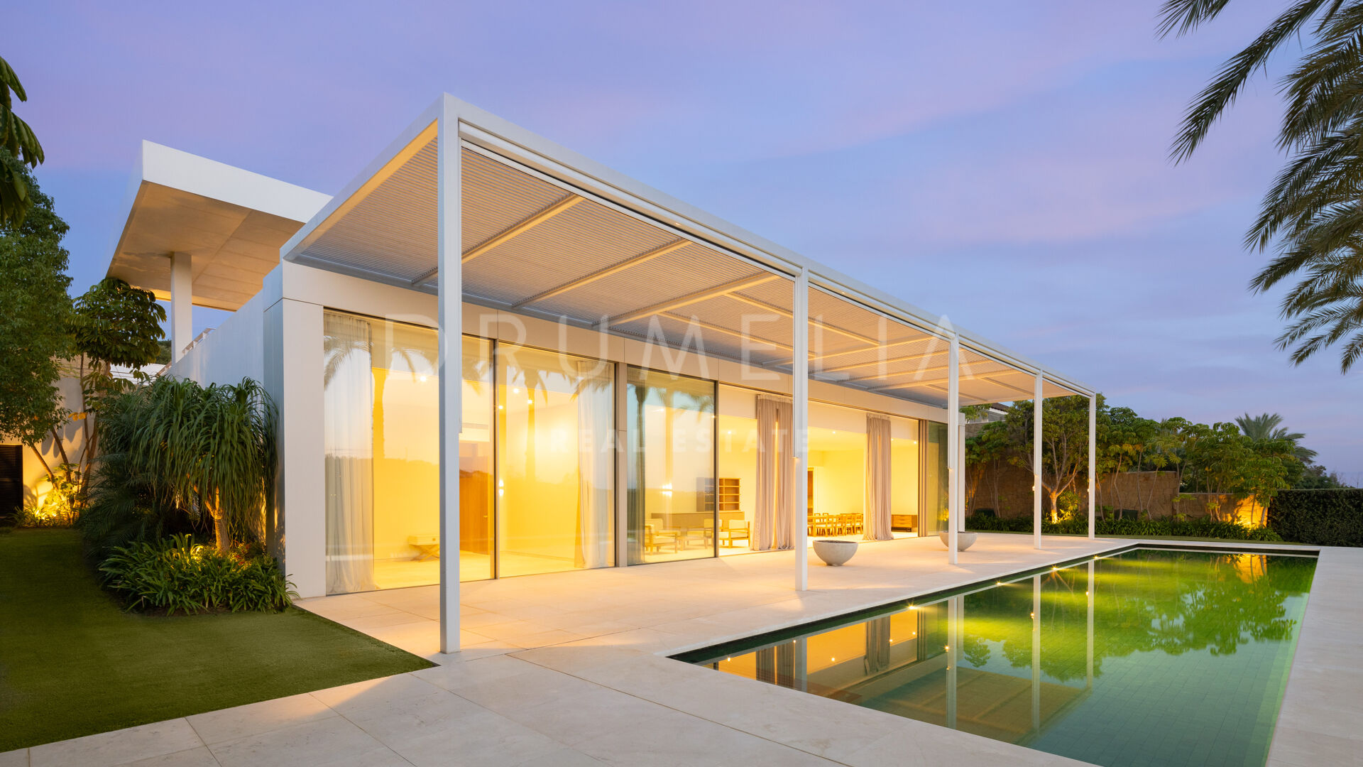 Эта неординарная вилла является идеальной для ведения самой роскошной жизни рядом с гольф-полем. Резиденция, тщательно спроектированная престижным архитектурным бюро Vicens & Romans, представляет собой современное архитектурное чудо, которому, вероятно, нет равных на всем побережье Коста-дель-Соль. Окруженный пасторальными пейзажами и элитной недвижимостью этого района, дом площадью 578 м² с террасами 327 м² расположен на просторном участке размером 1.937 м². Он может похвастаться захватывающим видом на поле для гольфа Finca Cortesin и Средиземное море.