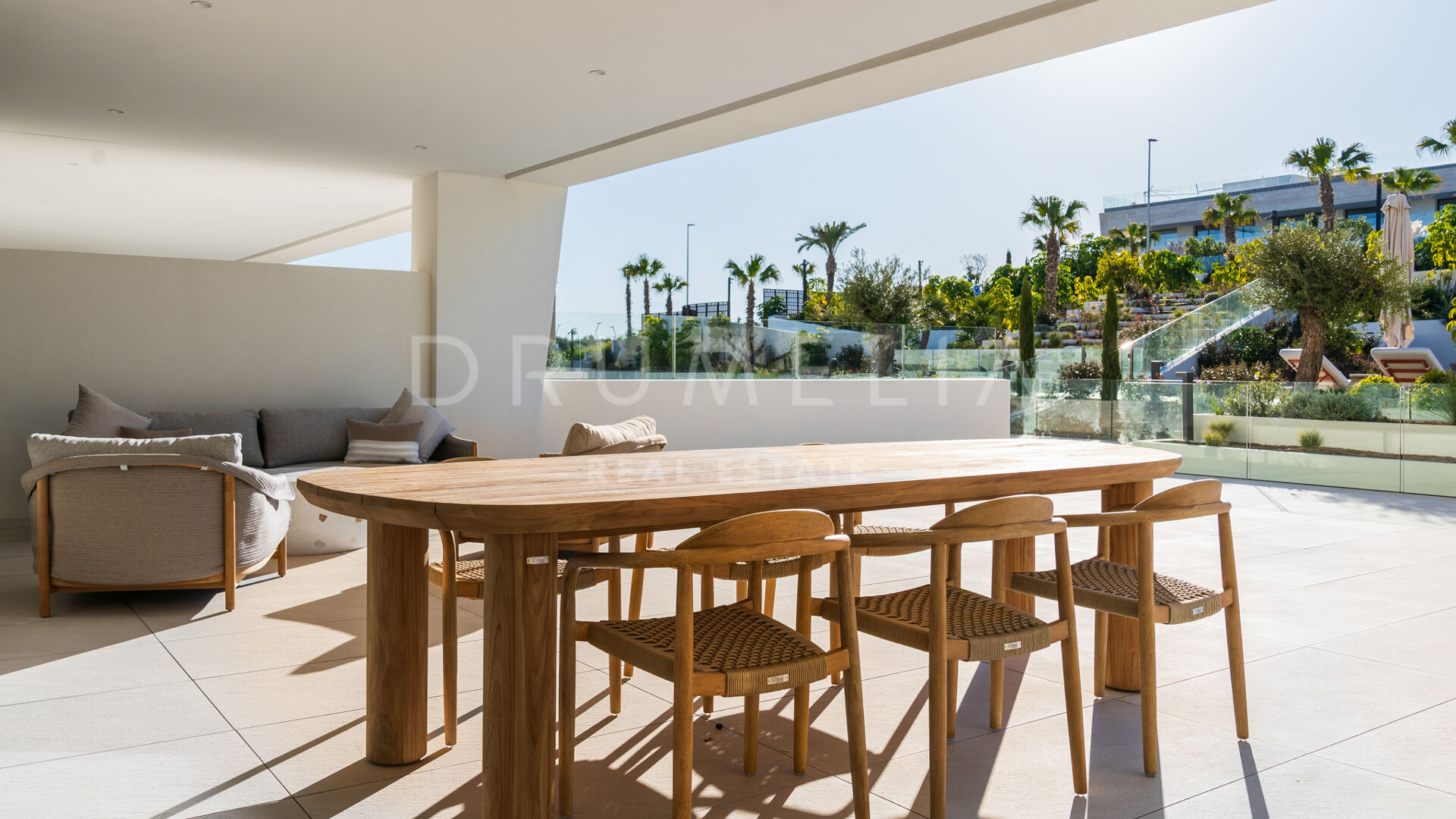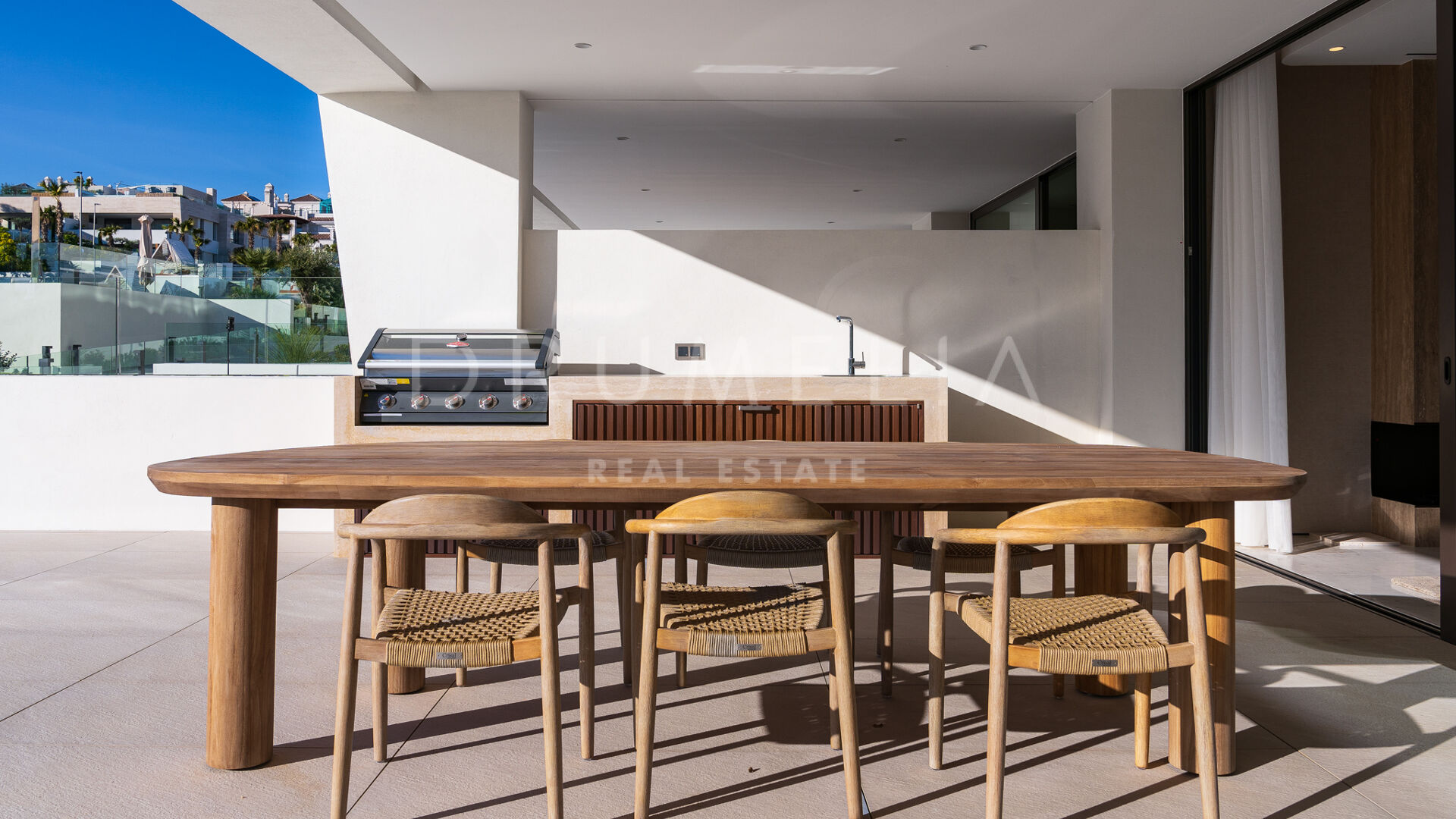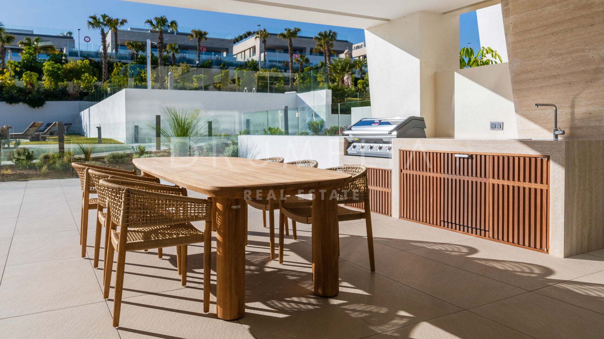 Просторная гостиная открытой планировки наполнена естественным светом и плавно переходит в частную террасу, идеально подходящую для отдыха и ужинов на свежем воздухе под мягким средиземноморским климатом. Современная кухня, оснащённая передовой техникой, сочетает функциональность и стиль, предоставляя идеальное пространство для любителей гастрономии.