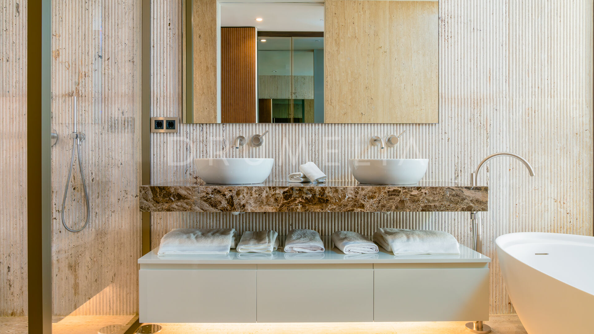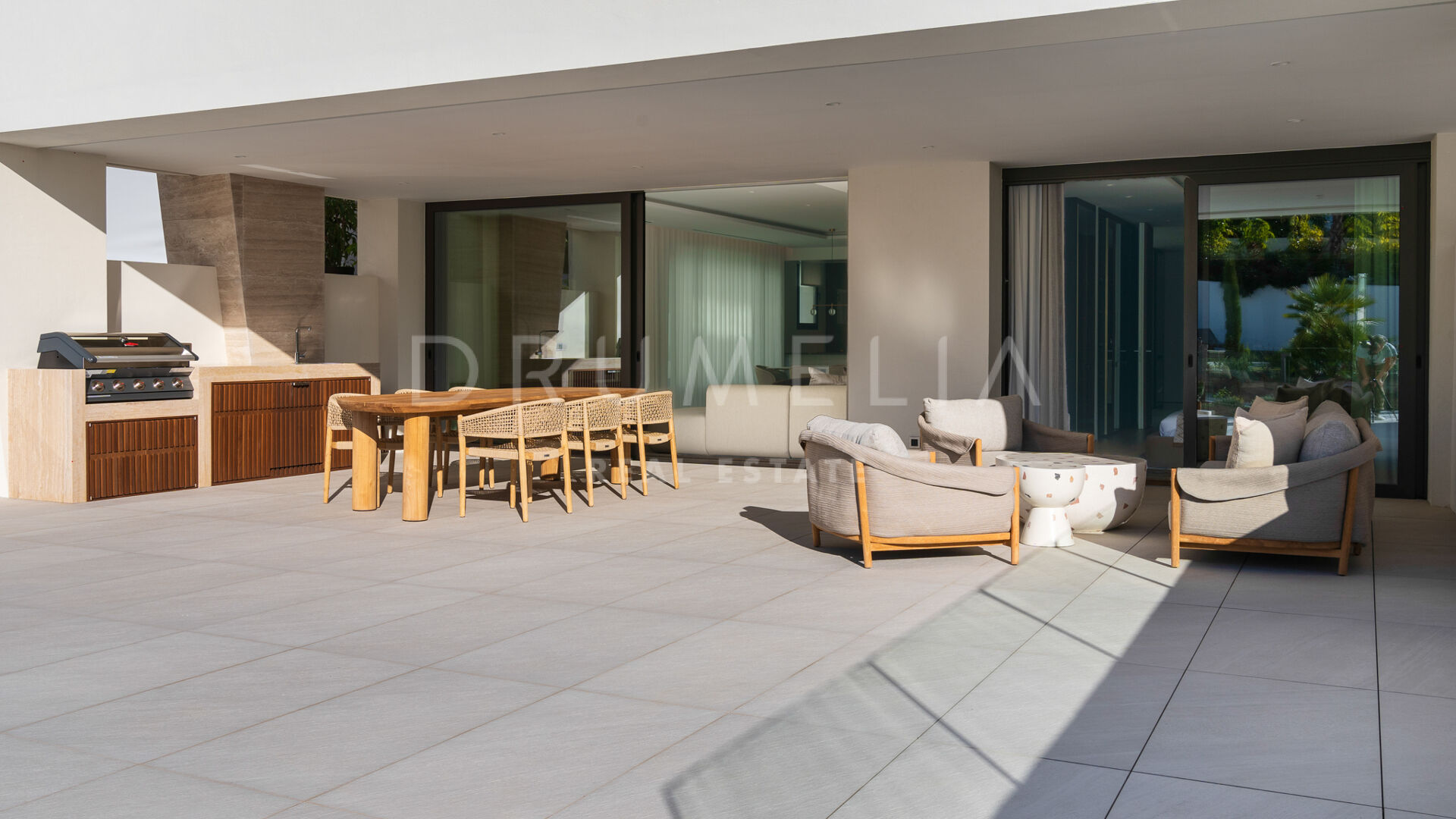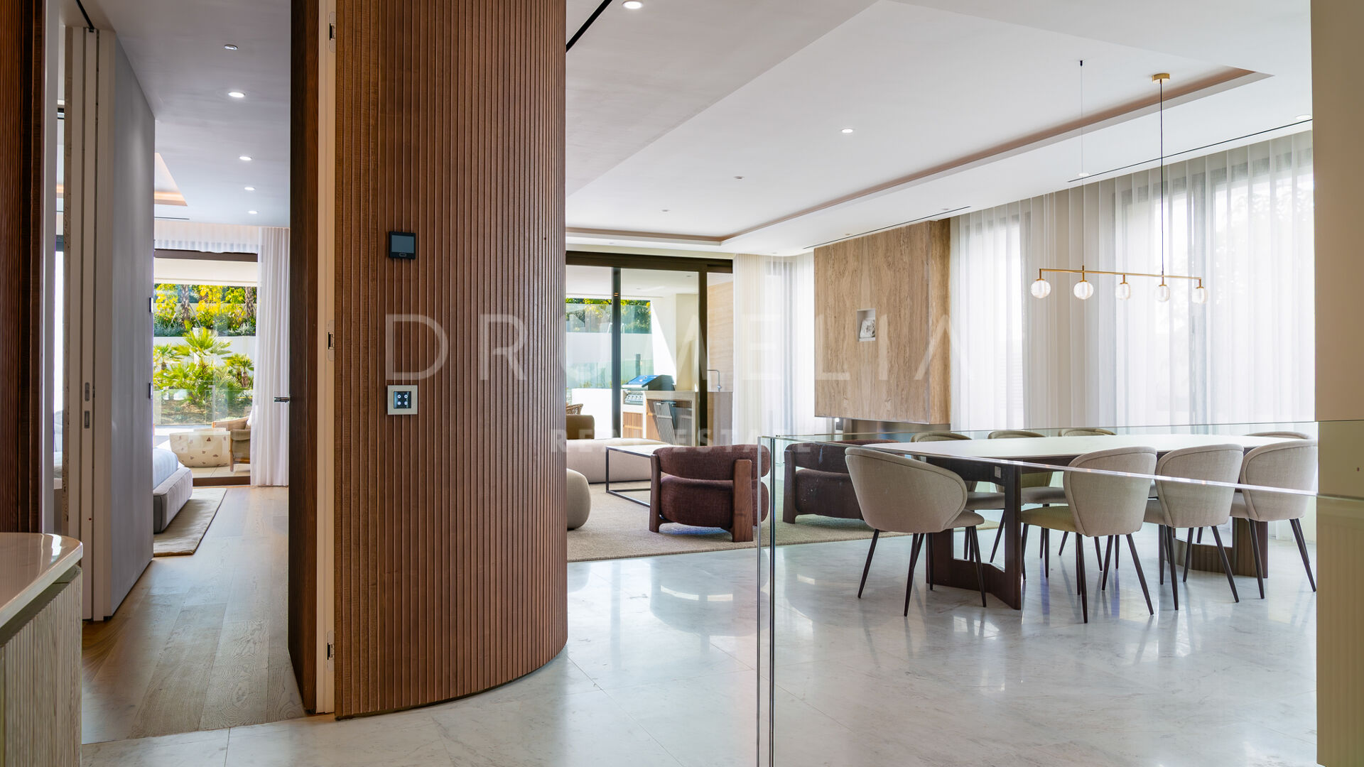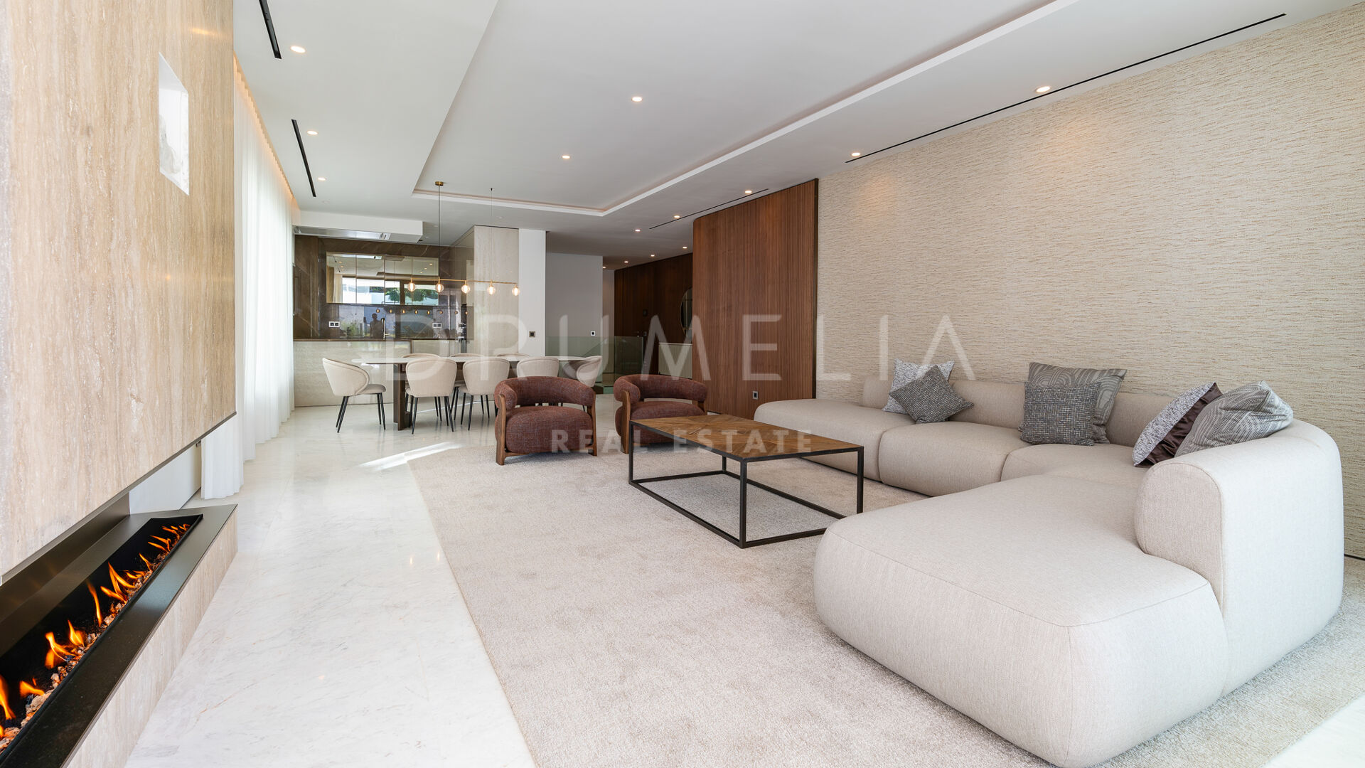 Просторная гостиная открытой планировки наполнена естественным светом и плавно переходит в частную террасу, идеально подходящую для отдыха и ужинов на свежем воздухе под мягким средиземноморским климатом. Современная кухня, оснащённая передовой техникой, сочетает функциональность и стиль, предоставляя идеальное пространство для любителей гастрономии.