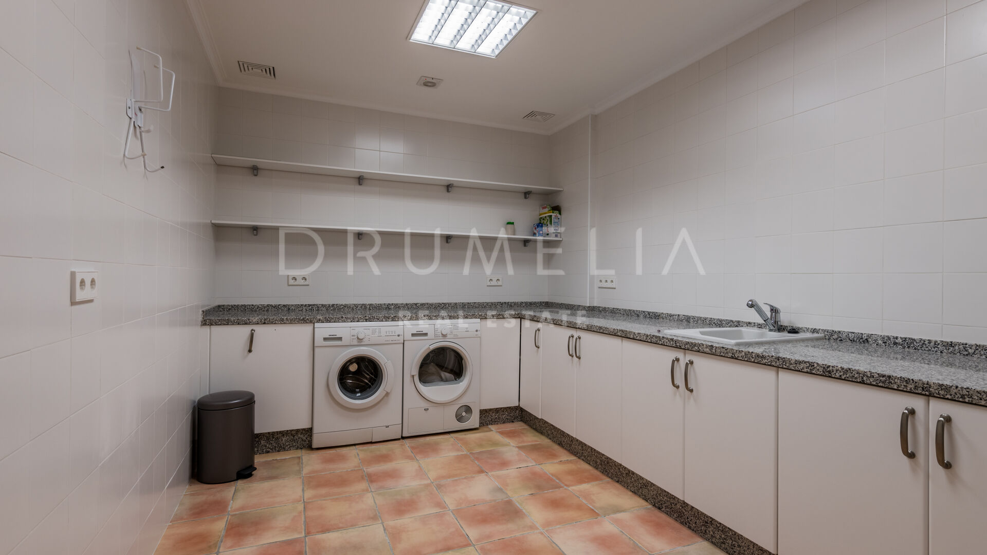 Эта неординарная элитная вилла продается в отличном состоянии, с лифтом, полами из мрамора и традиционной терракотовой плитки, системой подогрева полов по всему дому, изысканным и красивым дизайном потолка и освещения, кондиционерами, удобными встроенными шкафами, двойными стеклопакетами, выполненным на заказ и искусно изготовленным вручную элементами из дерева. Дом великолепен и может похвастаться неподдельным европейским шиком, обогащенным андалузским стилем. Без сомнения, это очень эксклюзивная недвижимость в престижном месте!