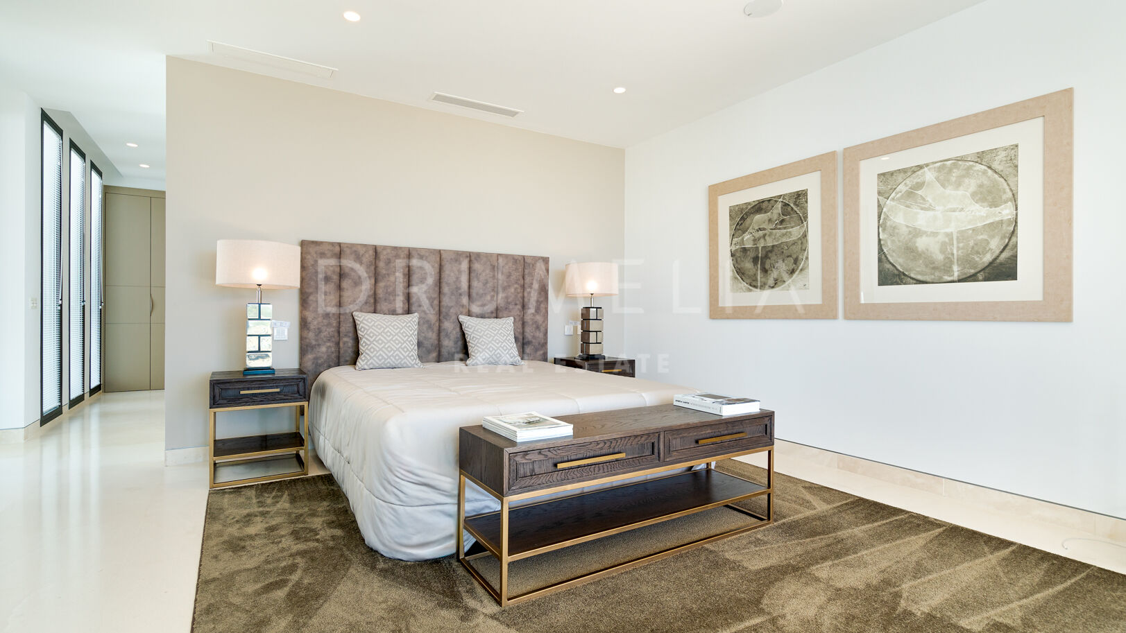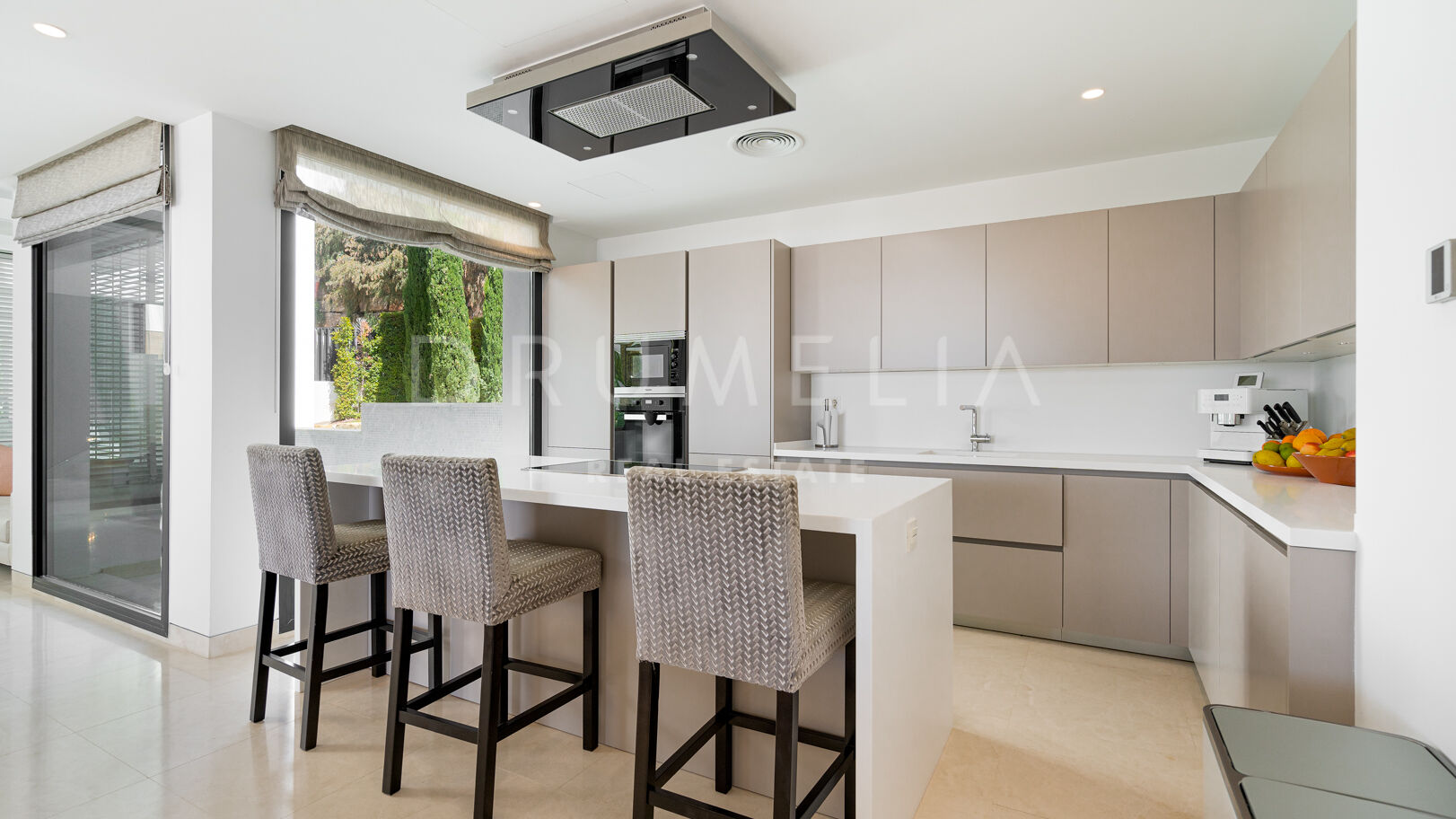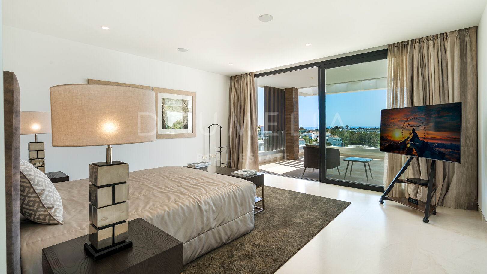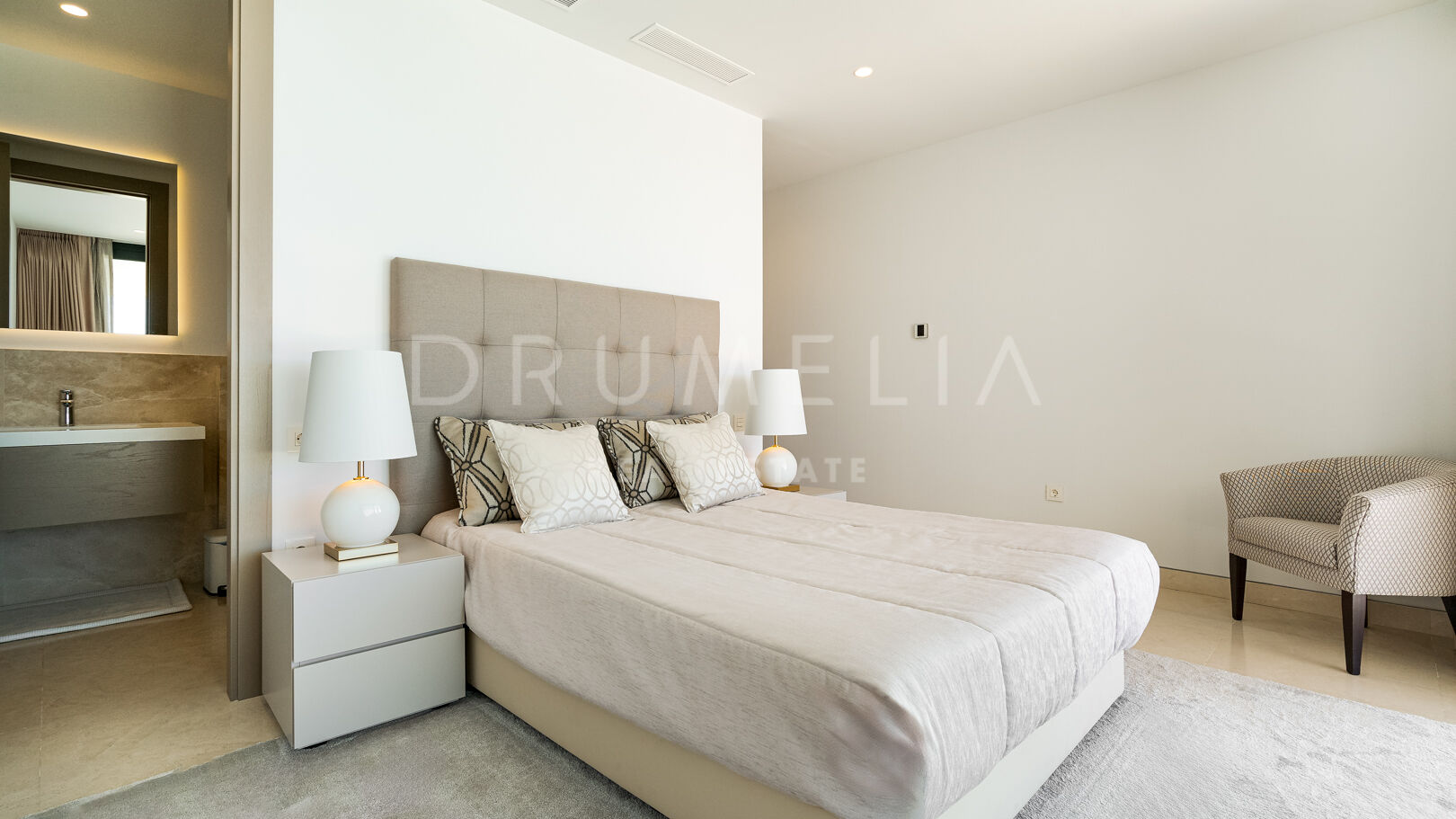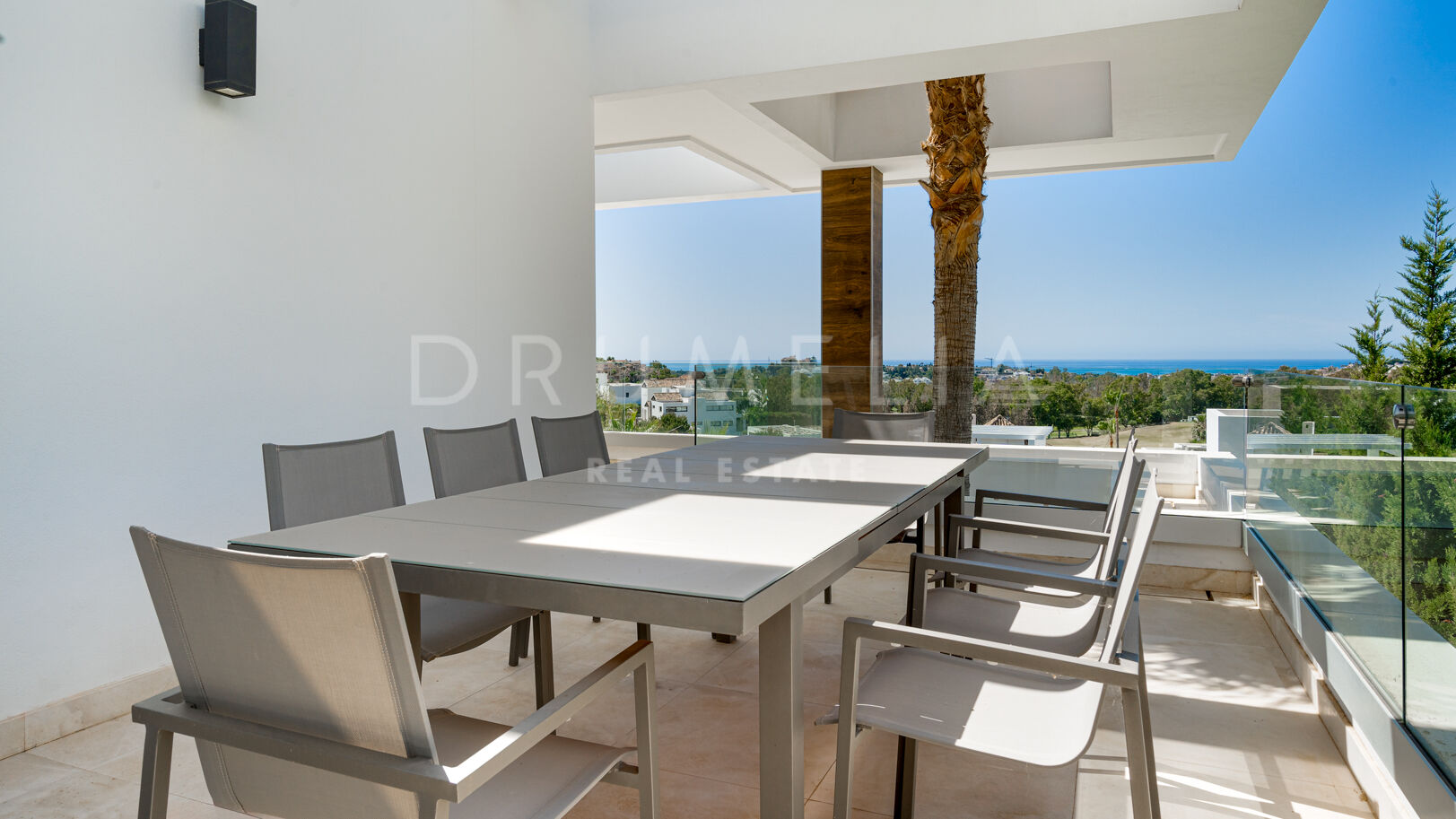 На трех уровнях виллы расположены пять спален с ванными комнатами, включая роскошную главную спальню с собственной террасой. Гостиная и столовая открытой планировки плавно переходят в просторные террасы, а кухня, оборудованная по последнему слову техники, оснащена бытовой техникой премиум-класса. Потрясающий бассейн-инфинити служит центром открытого пространства, дополненного стильной зоной отдыха и пышными садами – идеальное место для средиземноморского образа жизни.