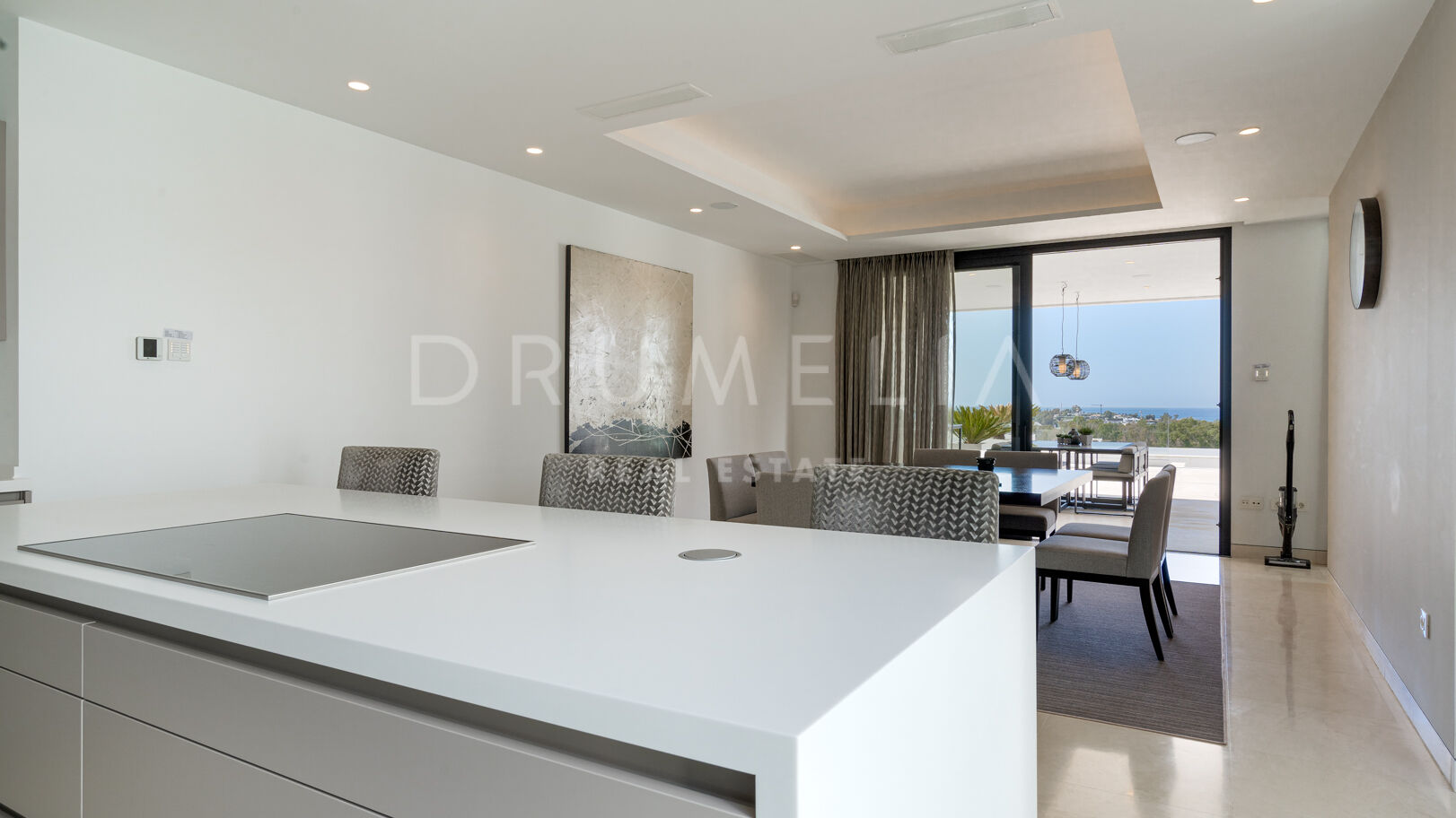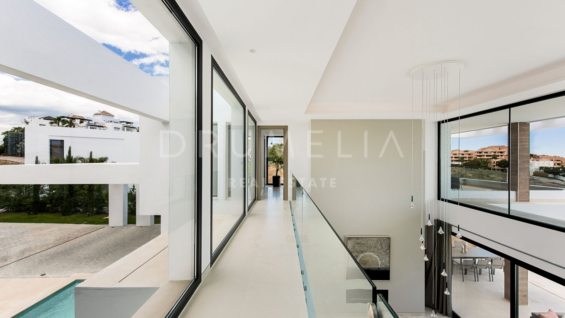 Эта современная вилла в эксклюзивном закрытом поселке Ла Алькерия, Бенахавис, идеально расположена на возвышенности, откуда открываются захватывающие панорамные виды на Средиземное море, поле для гольфа и окружающие горы. Ориентация на юг обеспечивает обильное естественное освещение во всем доме, подчеркивая его современный дизайн с открытой планировкой.