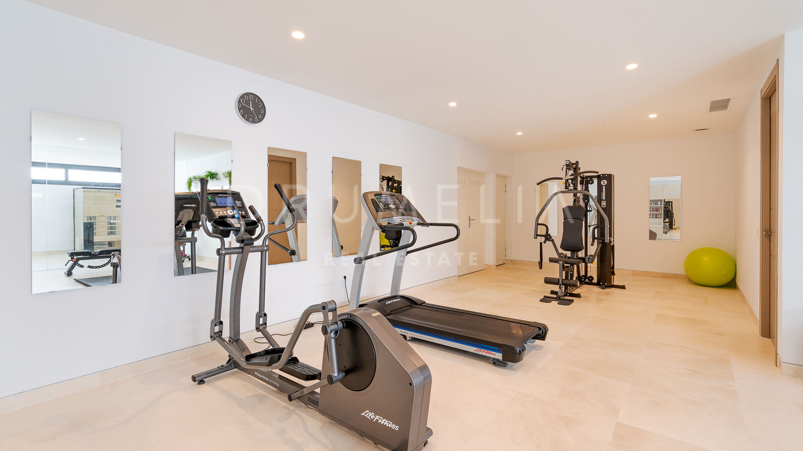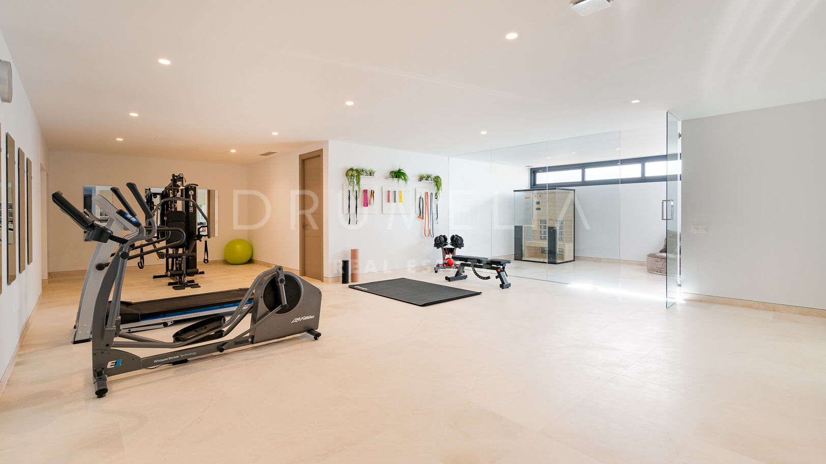 На цокольном этаже расположены просторная многофункциональная комната, частный тренажерный зал с ванной комнатой и охраняемая парковка. Вилла, предназначенная для тех, кто ищет уединения и спокойствия, расположена в тупике в охраняемом сообществе, всего в нескольких минутах от лучших полей для гольфа, международных школ, пляжа и оживленных центров Марбельи и Пуэрто-Бануса.