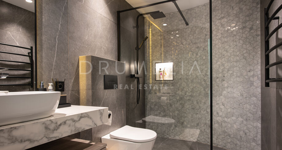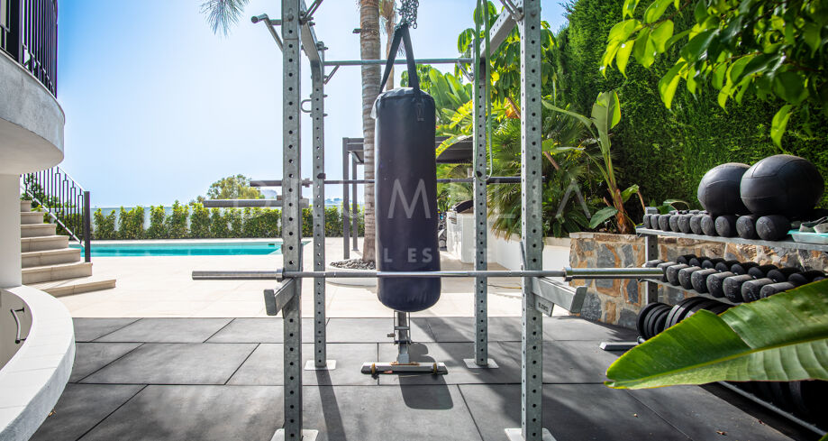 Вилла включает пять спален и пять ванных комнат, спроектированных для комфорта и приватности. Жилые зоны выходят в сад с частным бассейном, летней кухней и зоной для тренировок на свежем воздухе — идеальное место для активного средиземноморского образа жизни. Двухместный гараж обеспечивает безопасность и дополнительное пространство для хранения.