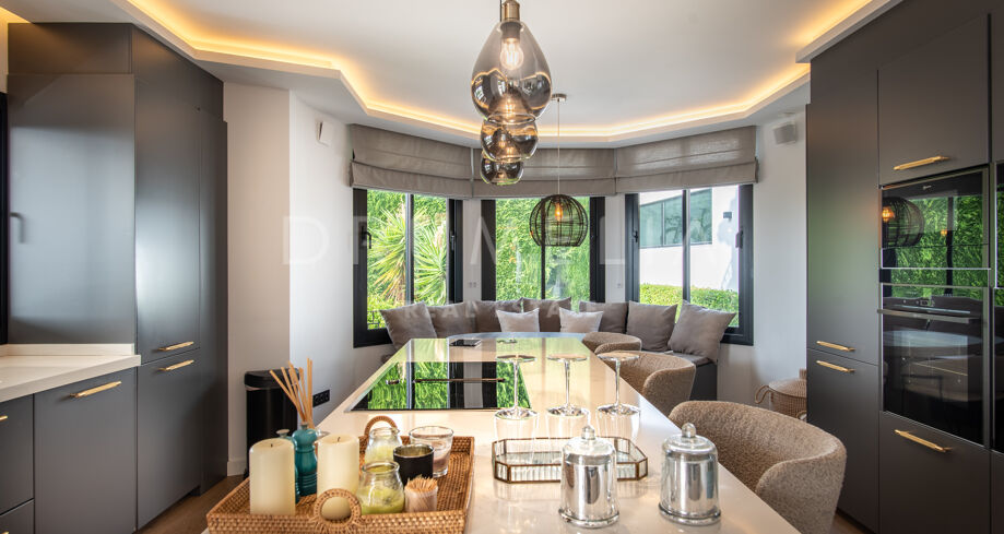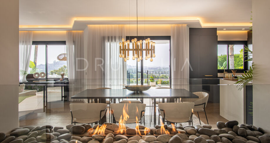 В престижном районе Ла-Кинта в Бенаависе расположена эта вилла площадью 303 м² (386 м² с террасами) на участке 765 м². Из дома открываются панорамные виды на Средиземное море, поля для гольфа и горы. Южная ориентация обеспечивает солнечный свет в течение всего дня и гармонию между роскошью и природой.