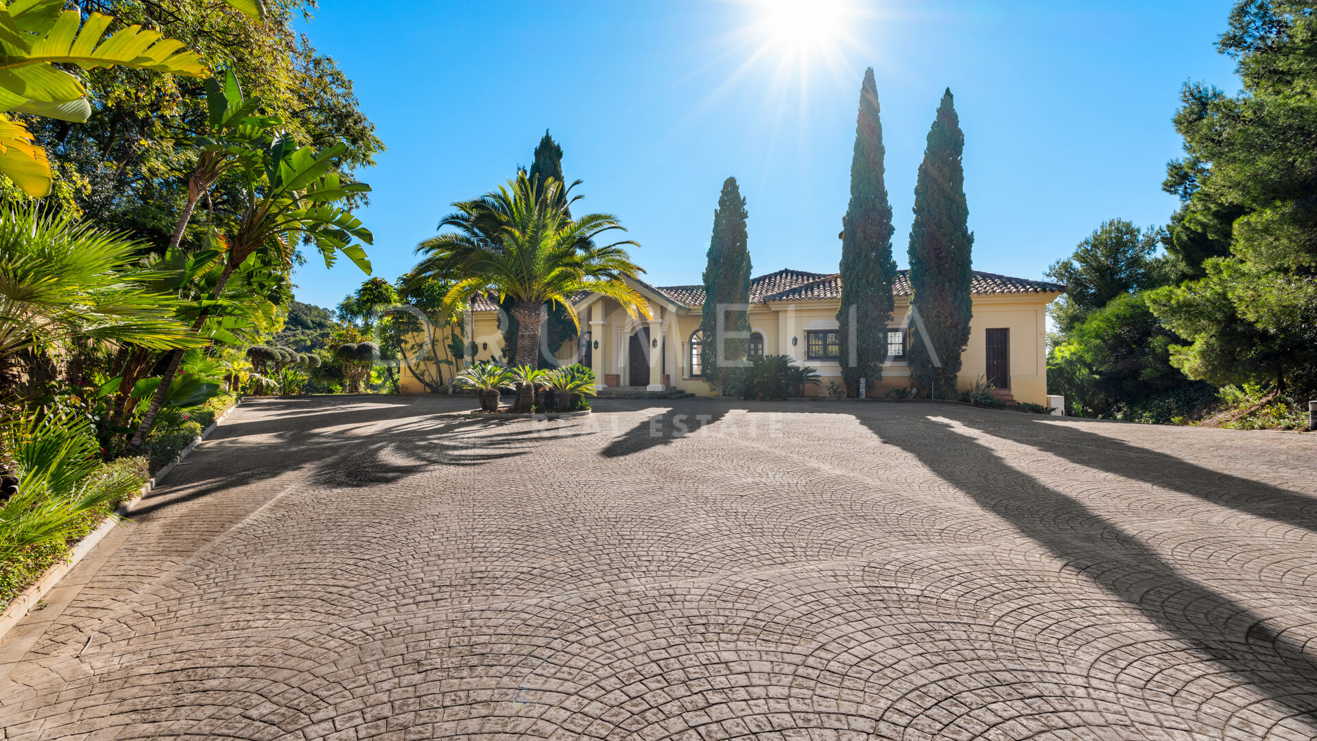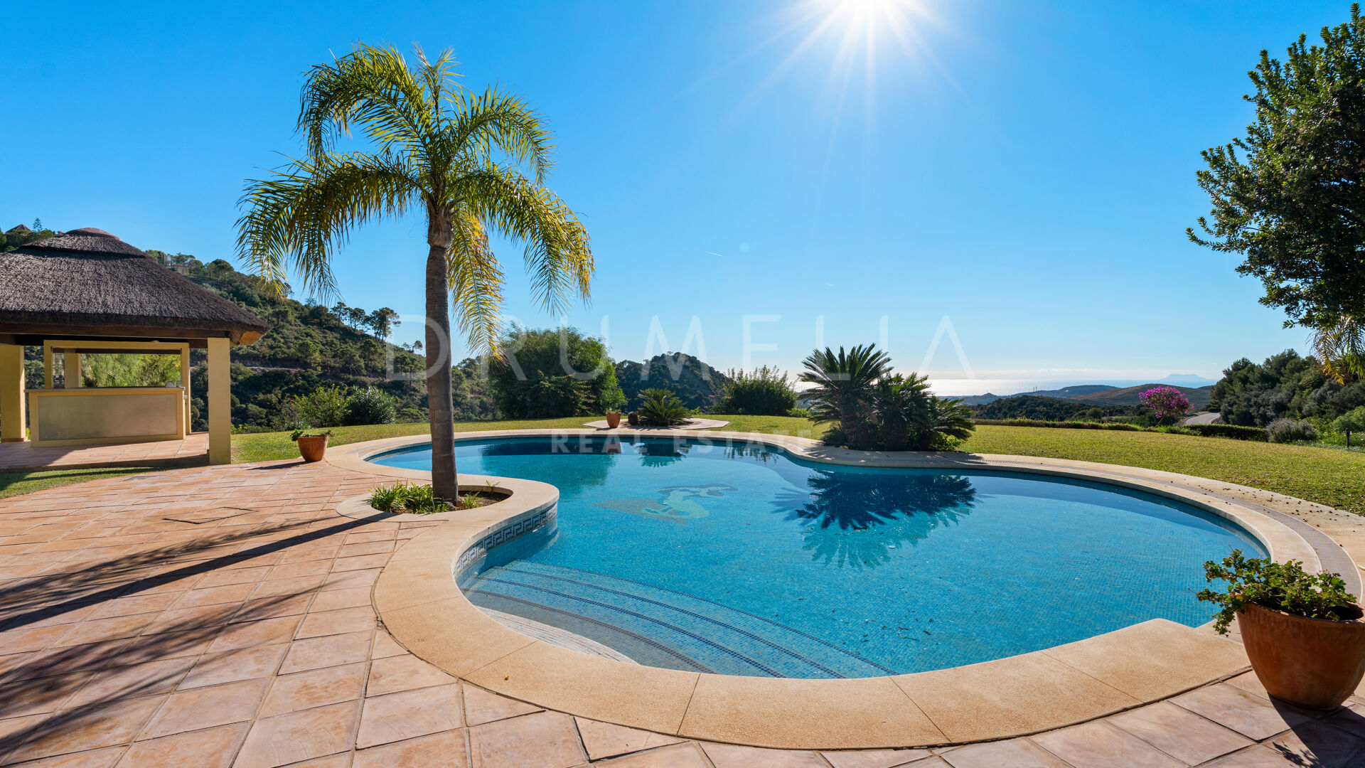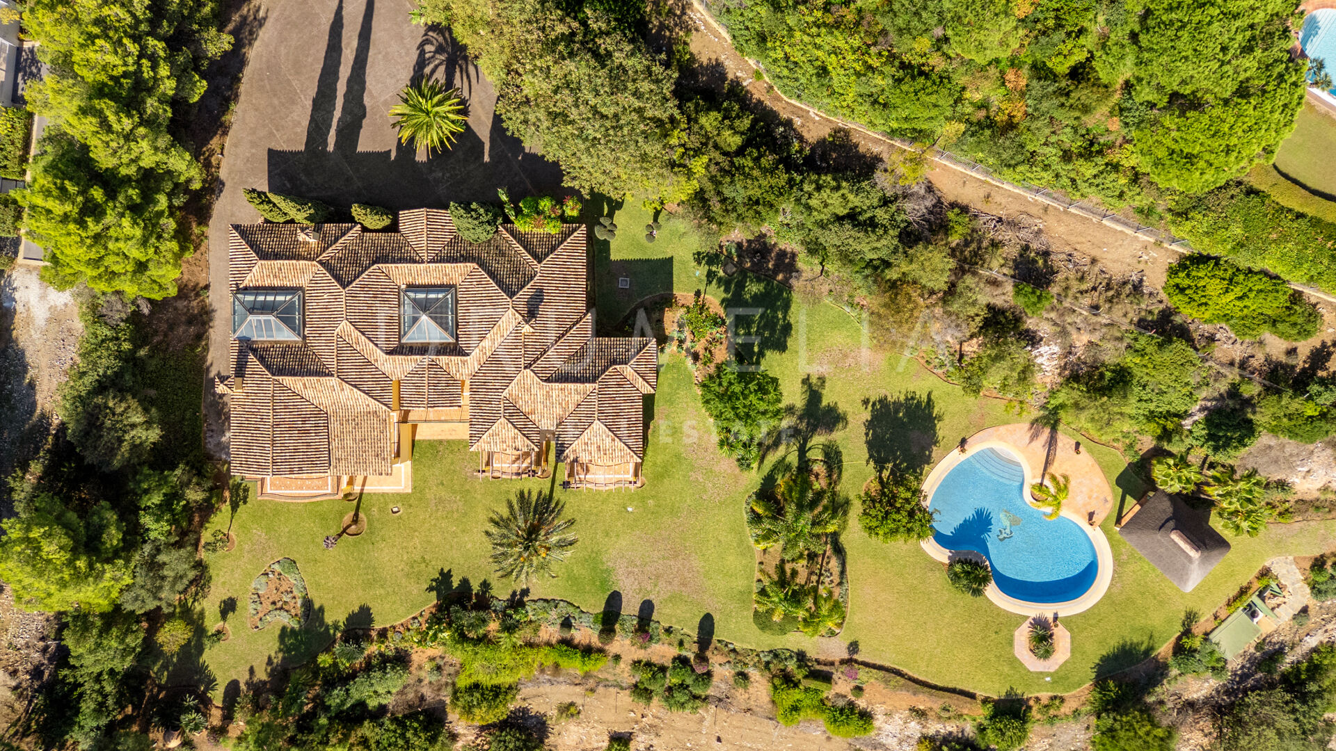 Участок площадью 6 173 м² включает зрелые сады, несколько крытых и открытых террас и частный бассейн с открытыми видами на горы и природный ландшафт La Zagaleta.