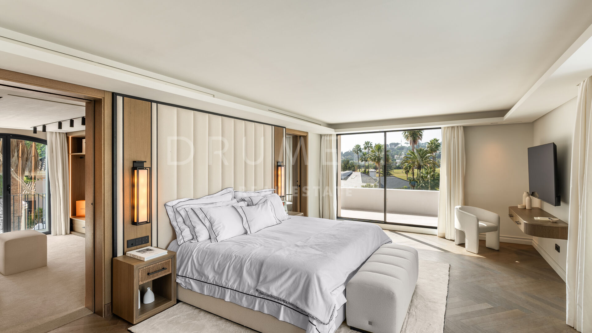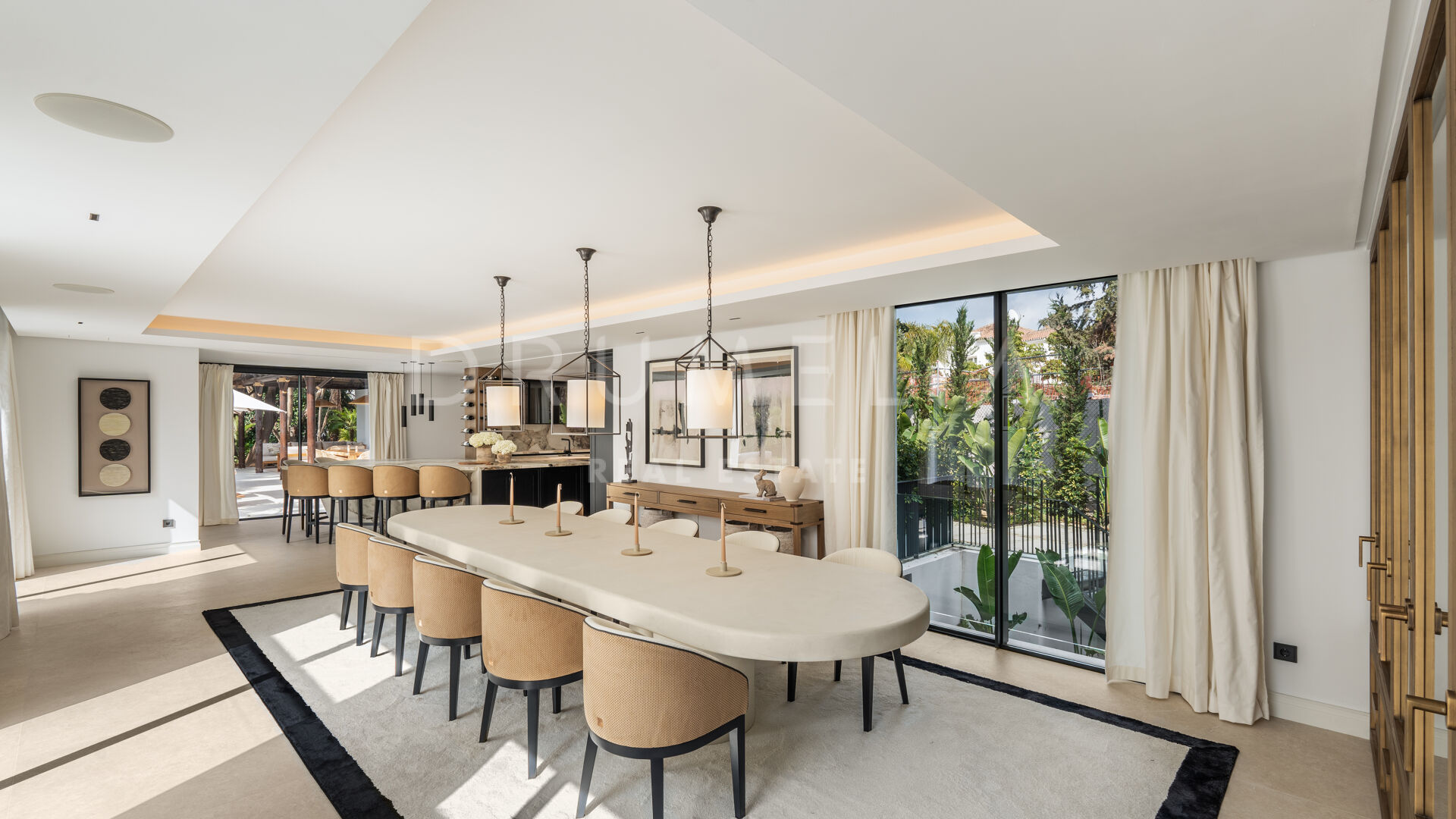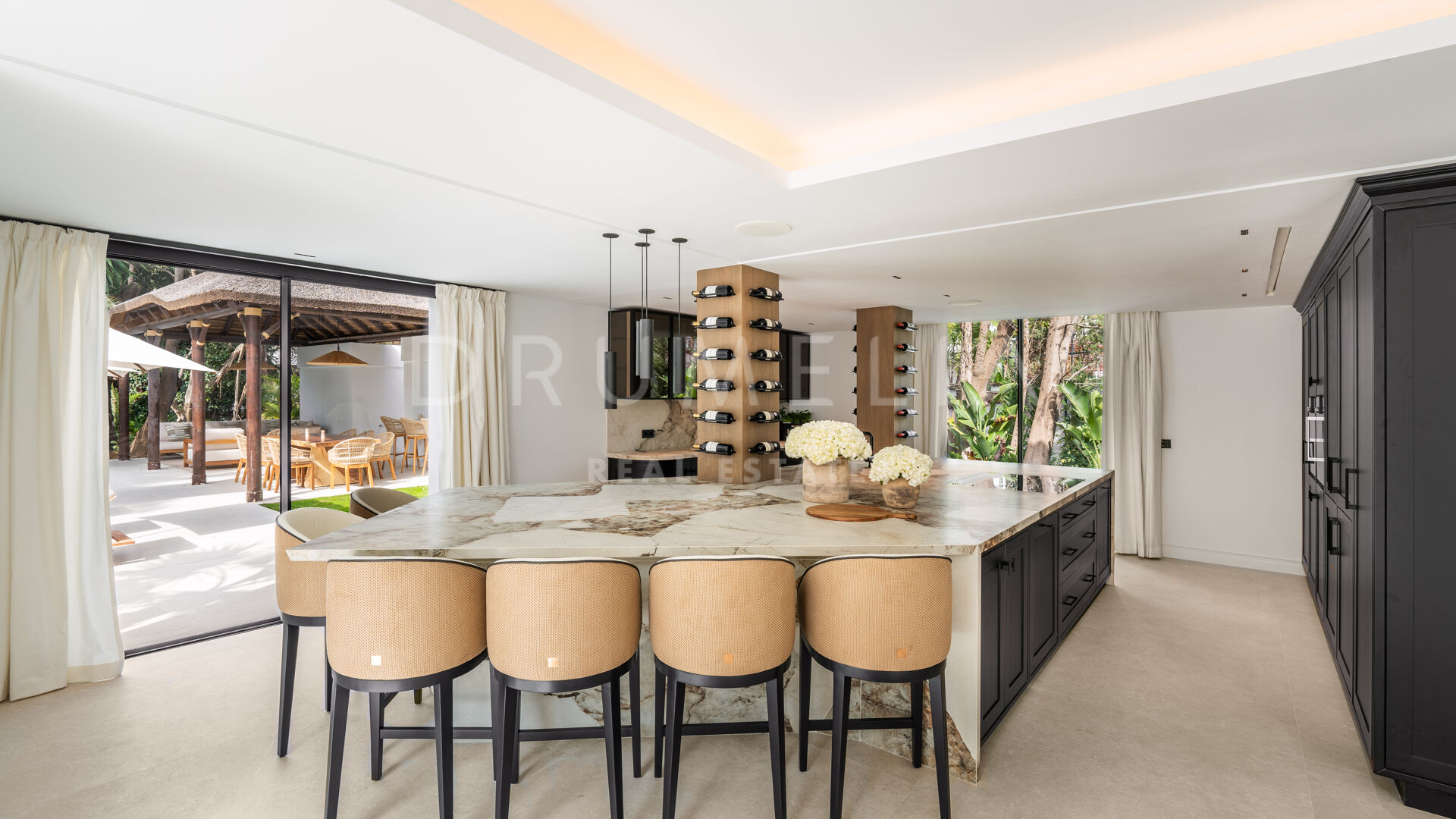 Элегантная современная вилла в эксклюзивном комплексе Las Brisas в Нуэва Андалусия, в настоящее время проходящая комплексную реконструкцию по самым высоким стандартам, идеально подходит для стильной жизни и развлечений. Прямо напротив кухни находится впечатляющая гостиная открытой планировки с камином, формальная столовая для развлечений и просторная кухня открытой планировки с винным погребом, а также пять просторных и спокойных спален.