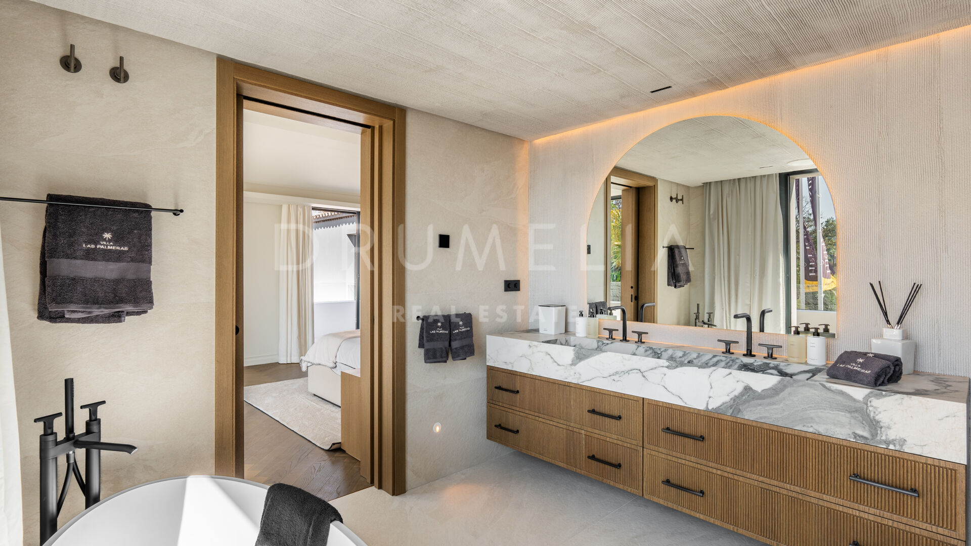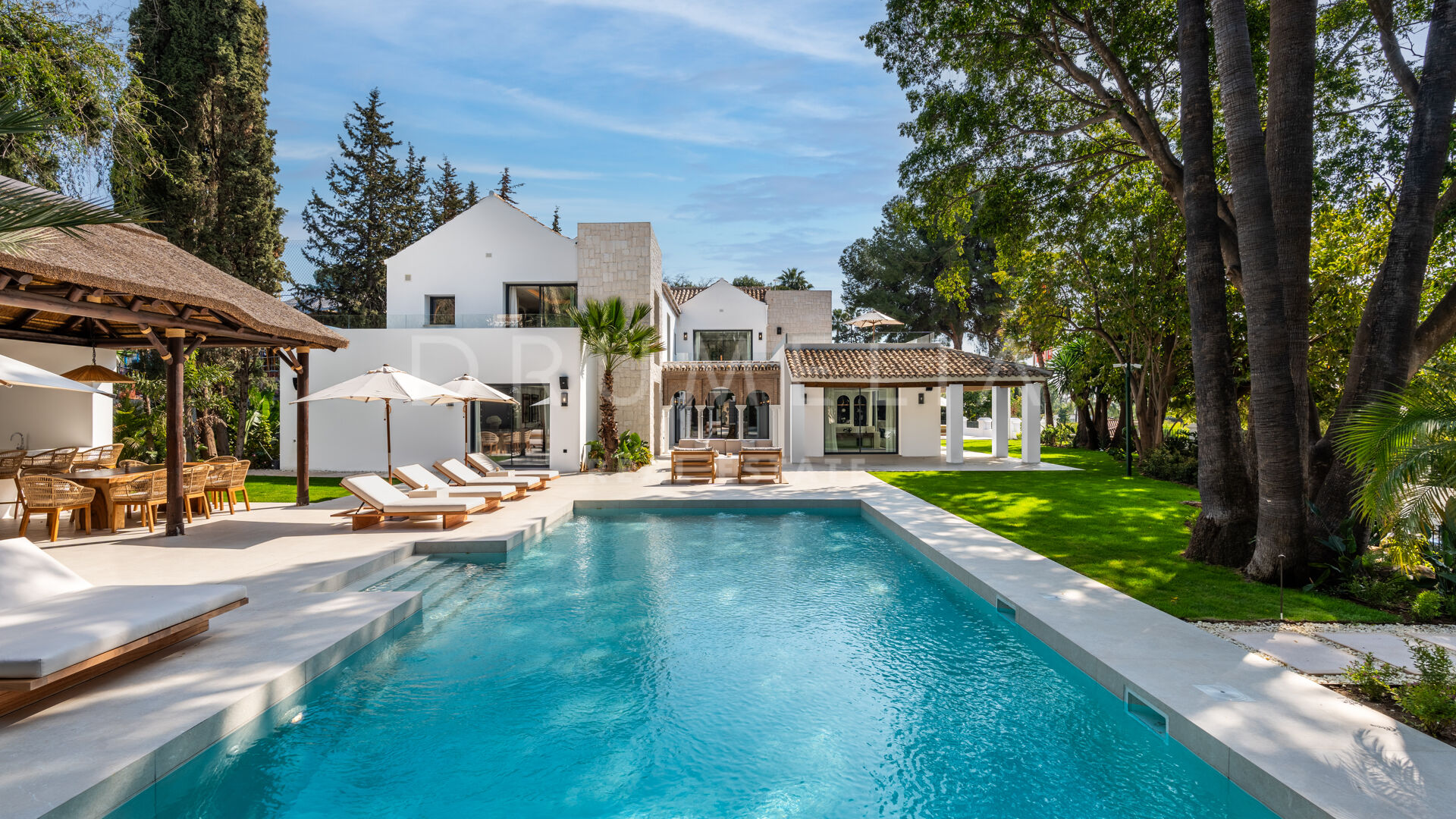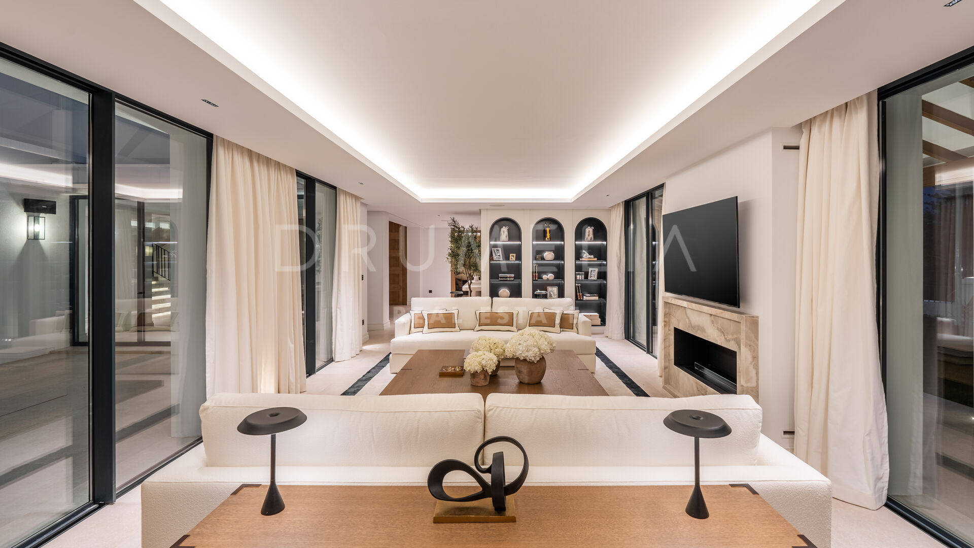 Элегантная современная вилла в эксклюзивном комплексе Las Brisas в Нуэва Андалусия, в настоящее время проходящая комплексную реконструкцию по самым высоким стандартам, идеально подходит для стильной жизни и развлечений. Прямо напротив кухни находится впечатляющая гостиная открытой планировки с камином, формальная столовая для развлечений и просторная кухня открытой планировки с винным погребом, а также пять просторных и спокойных спален.