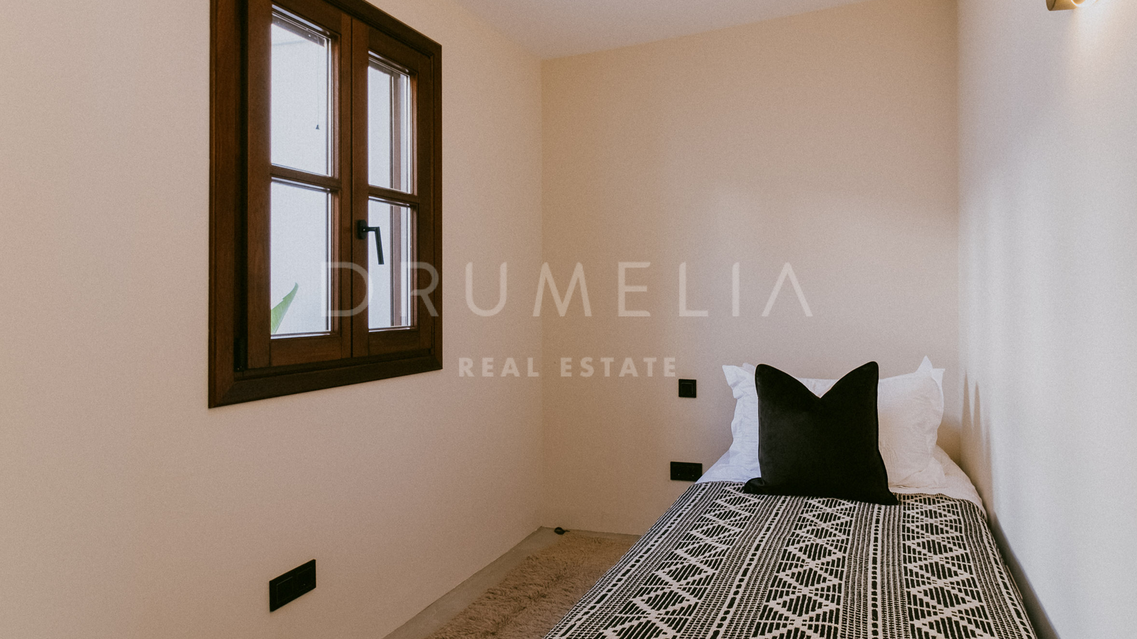 Этот светлый и уютный отреставрированный таунхаус с тремя спальнями гармонично сочетает очарование традиционного андалузского стиля с современным, тщательно обновлённым дизайном.