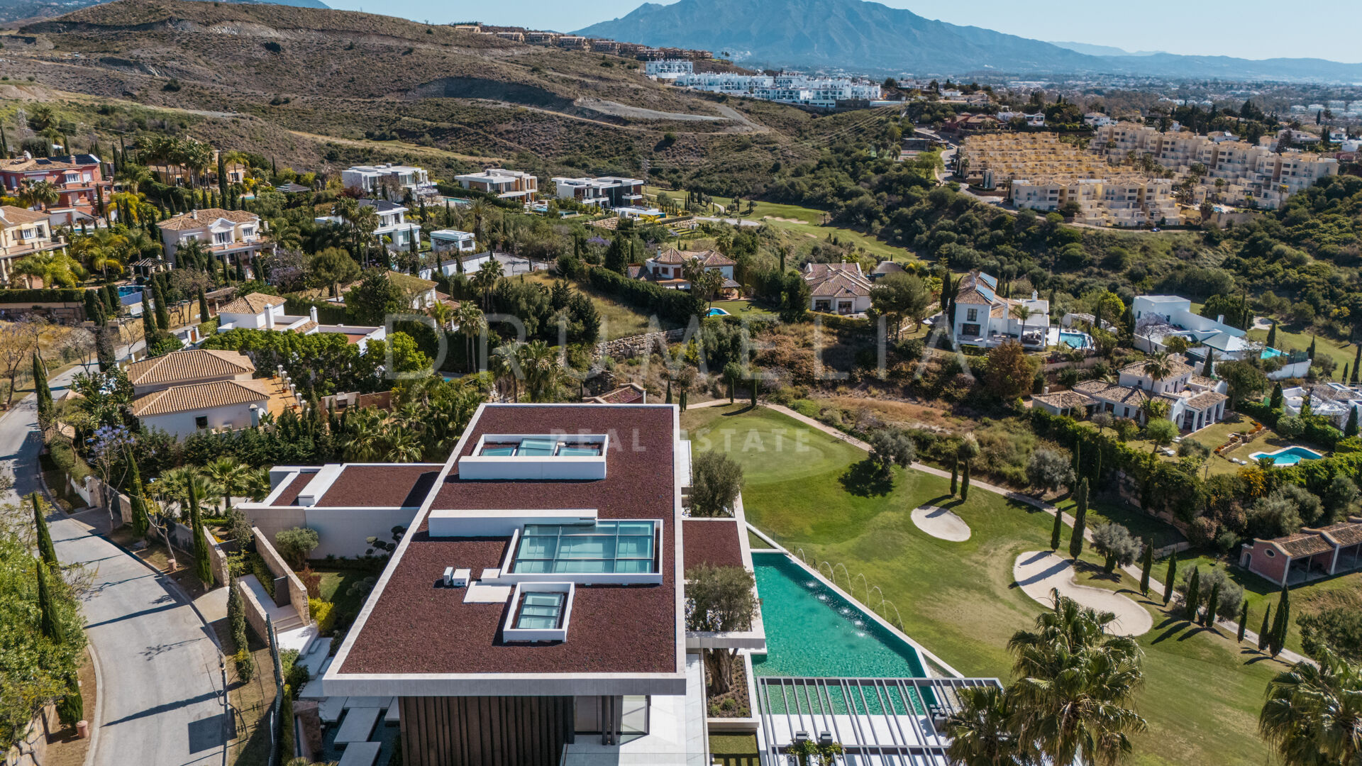 Роскошный особняк площадью 2.321 м², расположенный на большом участке площадью 3.239 м² на первой линии гольфа, создан известной студией Tobal Architects. Специализируясь на проектах для самых требовательных клиентов, эта студия занимается проектированием и строительством элитных домов на заказ с 1980 года. Этот дом с «вау-фактором» был отделан в соответствии с высочайшими стандартами качества, с безупречными архитектурными решениями во всем доме. Дизайнеры объединили современную архитектуру и традиционную средиземноморскую атмосферу, создав вневременное здание, которое вписывается в очаровательный пейзаж, чтобы результат был гармоничным, функциональным и эстетичным.
