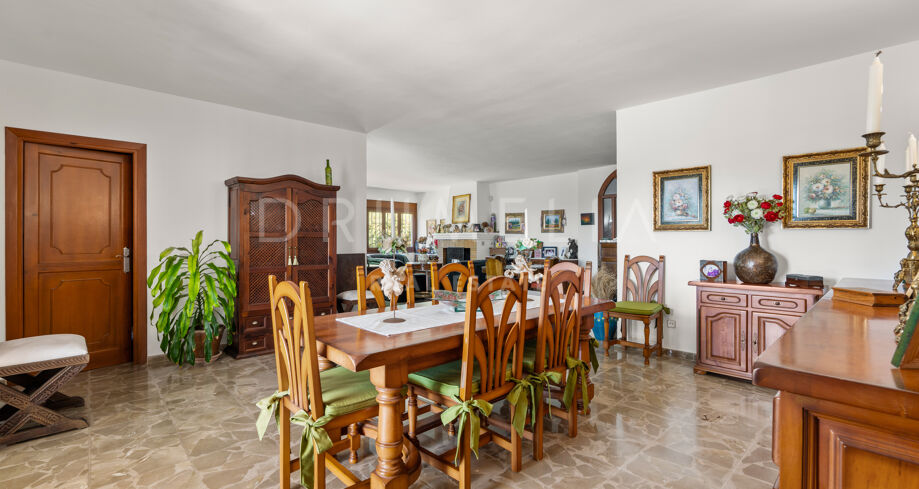 Эта вилла предлагает просторную планировку на одном уровне, дополненную большим частным участком площадью 27.924 м² с взрослой растительностью и отличной приватностью. В собственности несколько жилых зон, включая светлую главную гостиную, отдельную столовую и практичную кухню с прямым выходом во двор. Несколько спален и ванных комнат обеспечивают достаточно места для семейной жизни или приема гостей, гарантируя комфорт и функциональность.
