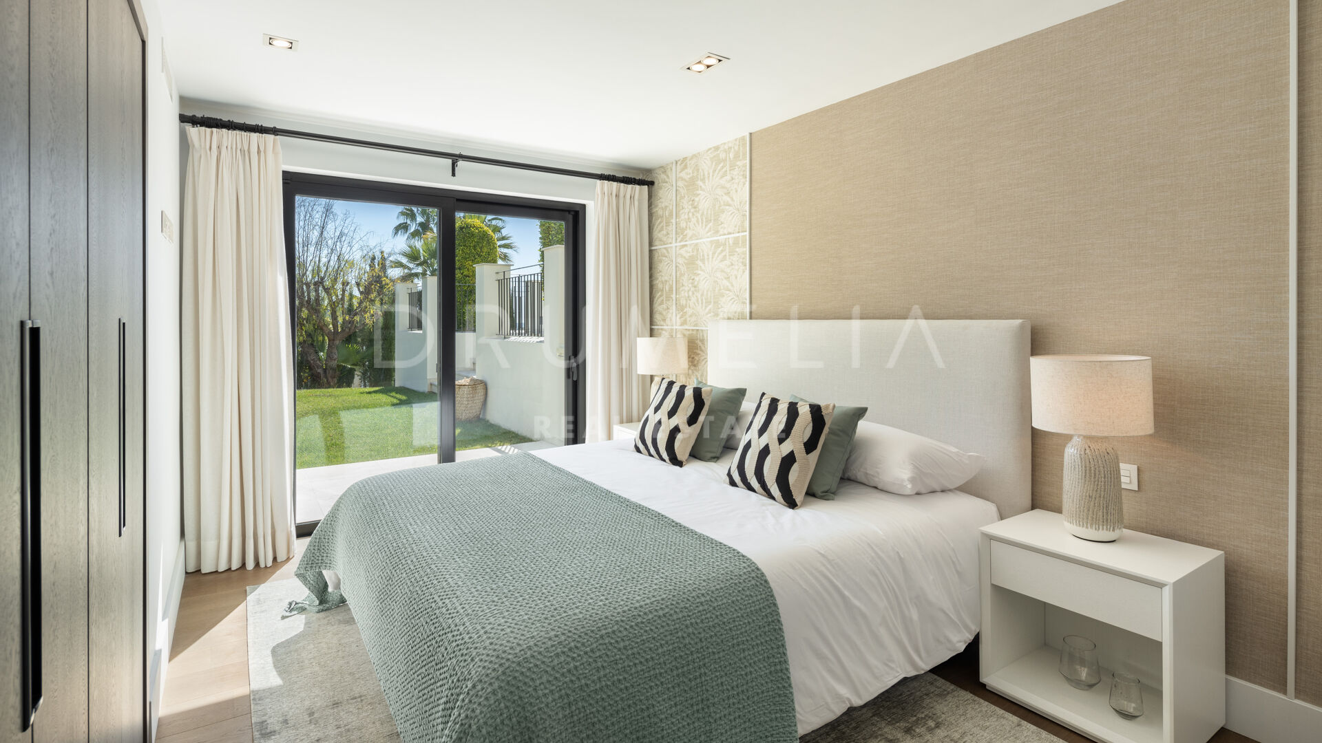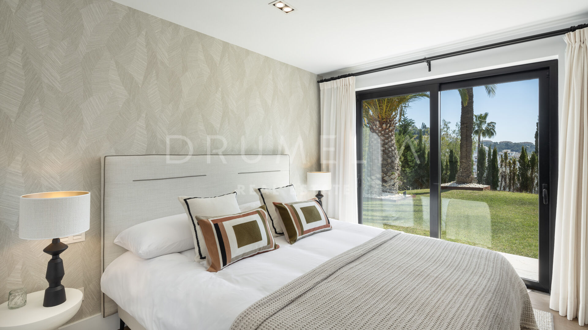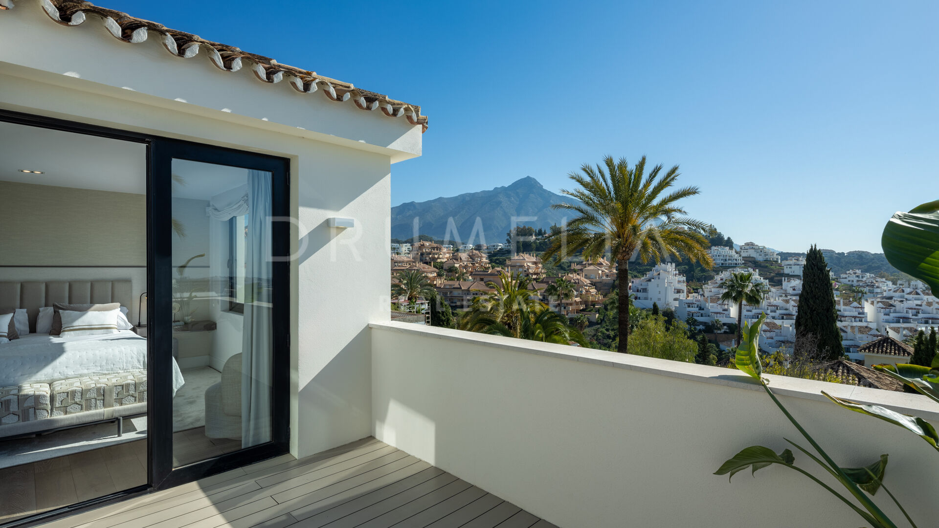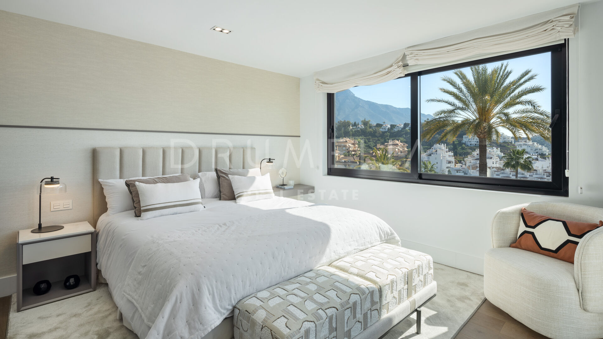 Вилла предлагает пять замечательных гостевых апартаментов, но именно главная спальня привлекает внимание. Элегантно оформленная, она может похвастаться захватывающим видом на гору Ла-Конча как из комнаты, так и с частной террасы.