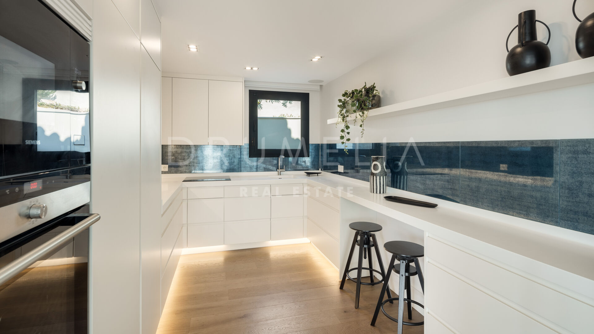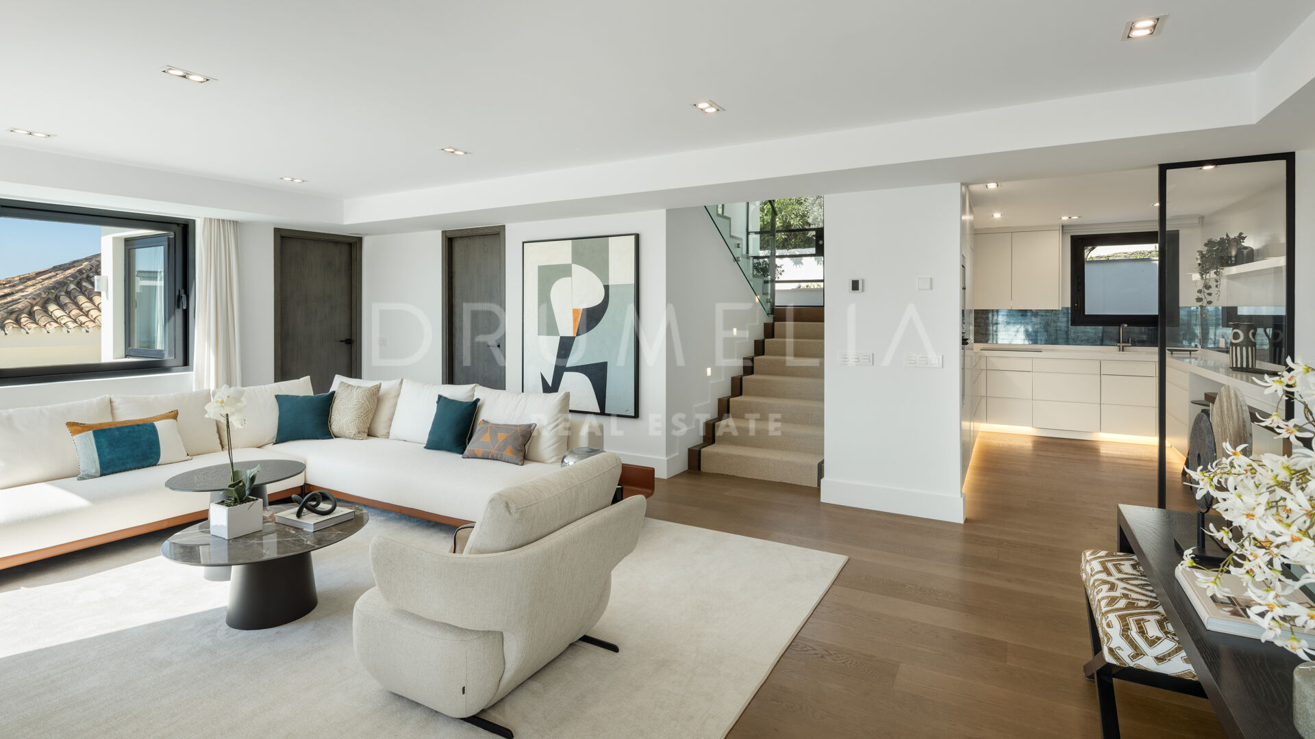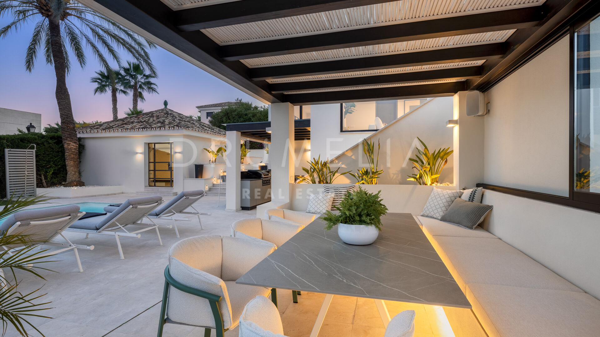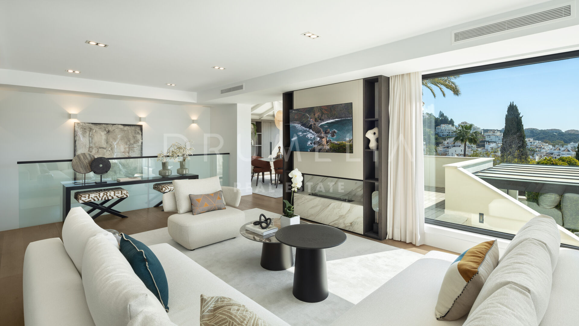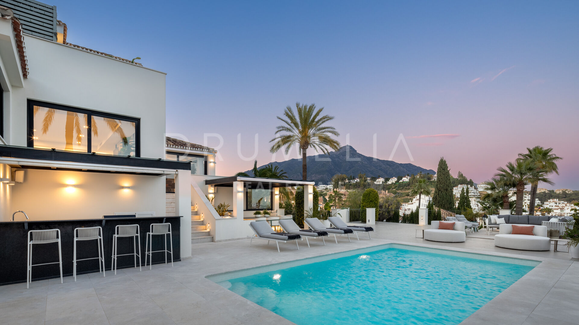 Зайдя внутрь, вы попадете в элегантный рай, где каждый уголок украшен невероятной мебелью и светильниками, разработанными известной фирмой La Albaida, занимающейся дизайном интерьеров. Плавные переходы между гостиной и столовой подчеркнуты широкими окнами, из которых открываются прямые виды и выход на террасы. Современная кухня, оборудованная по последнему слову техники, сочетает в себе функциональность и эстетическую привлекательность, предоставляя достаточно места для хранения и прилавков для дополнительного удобства.