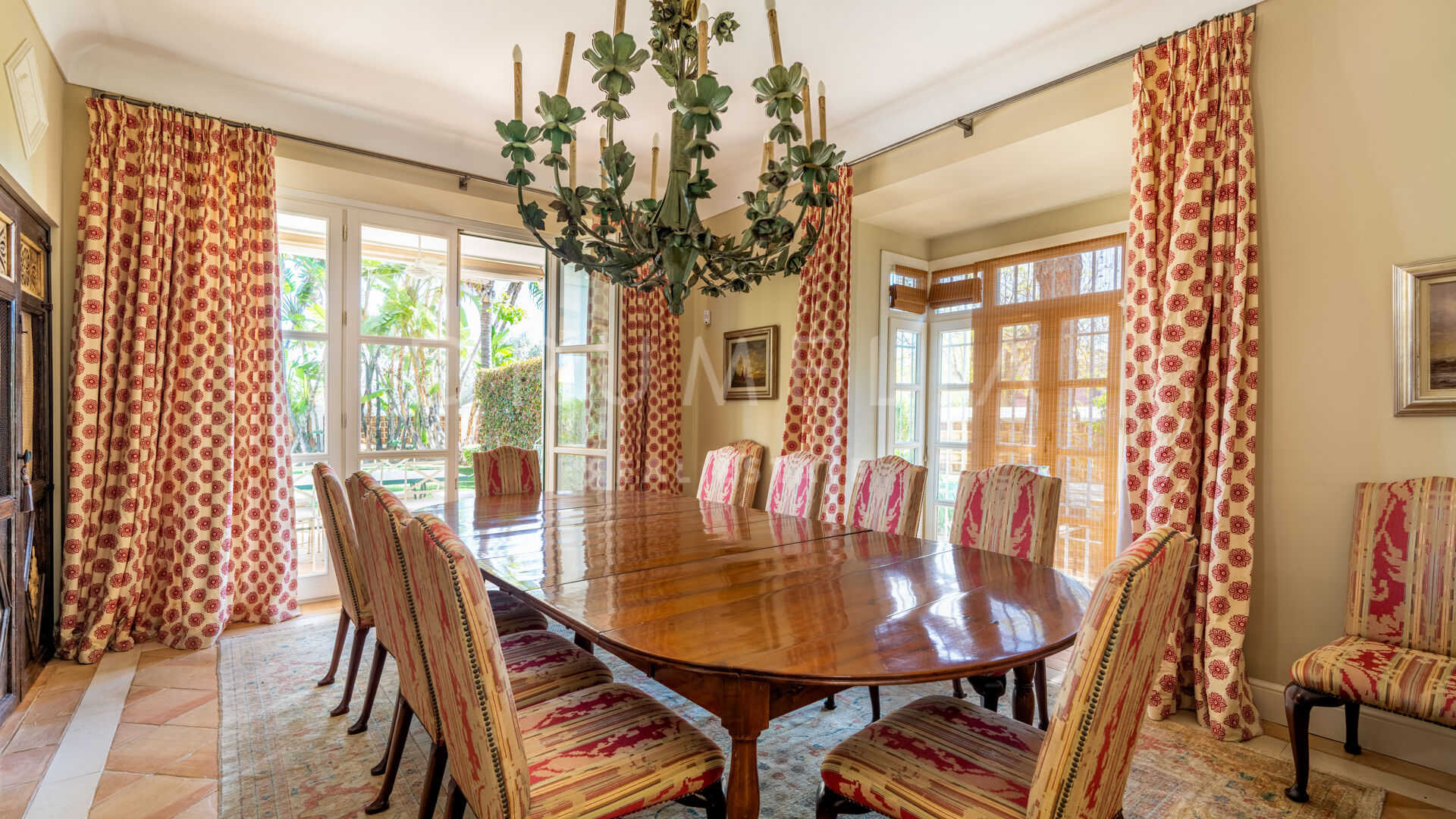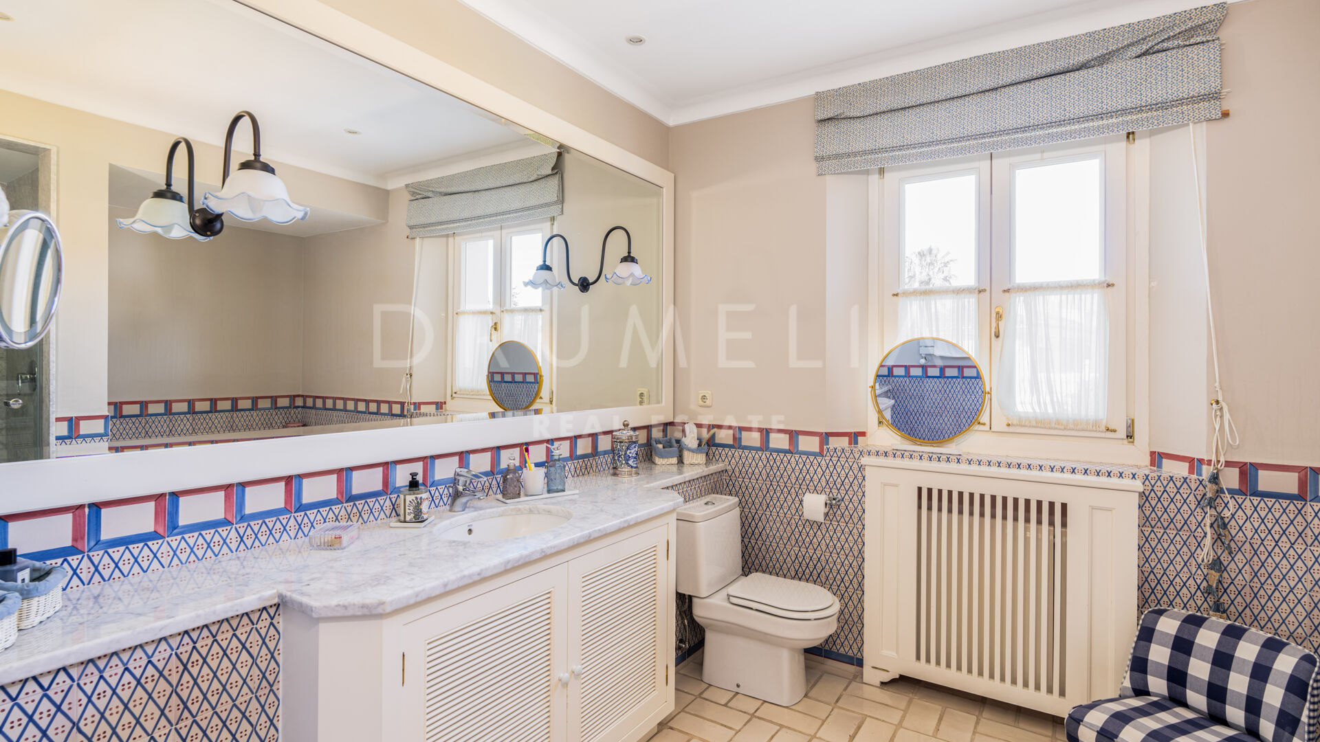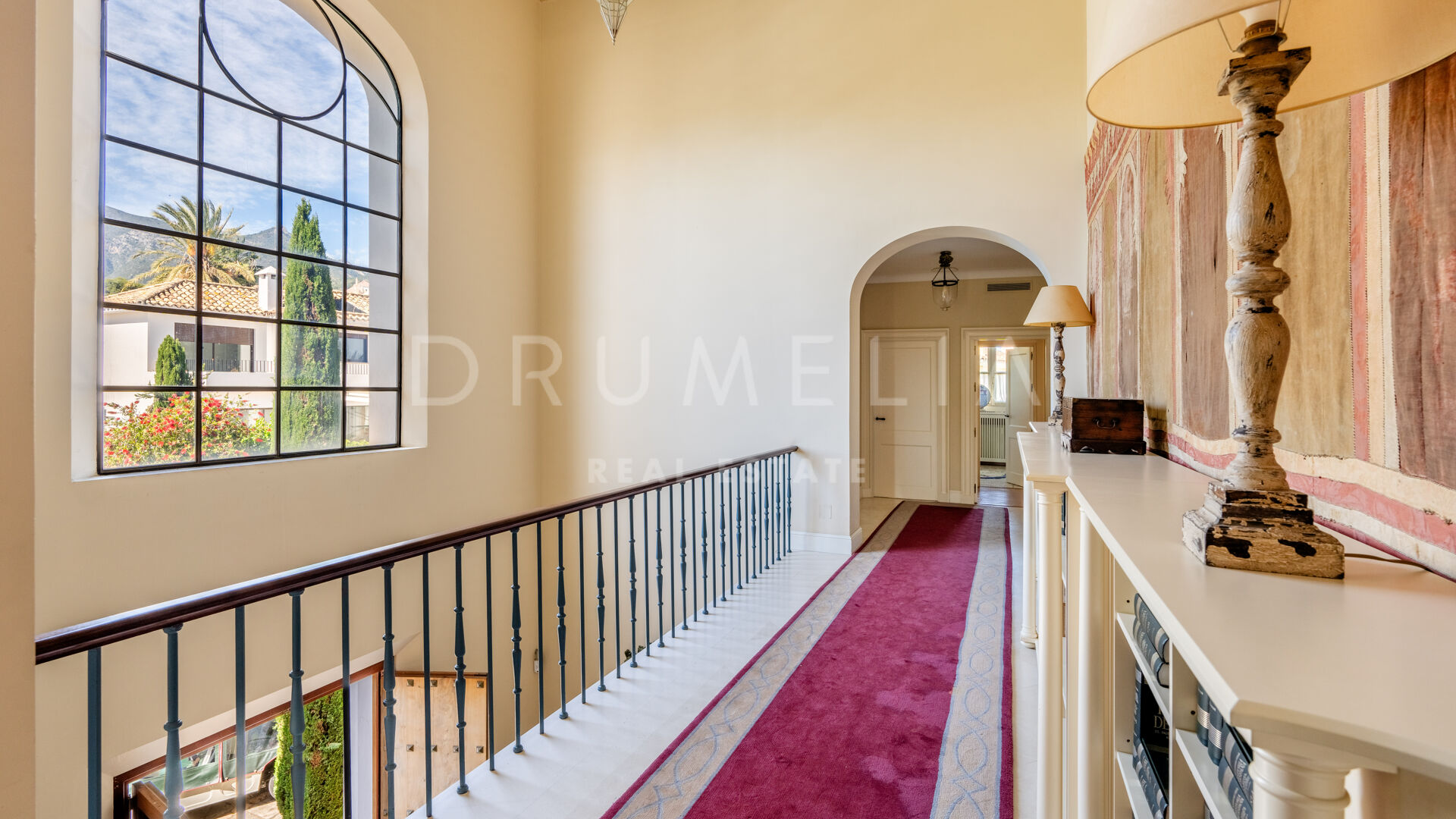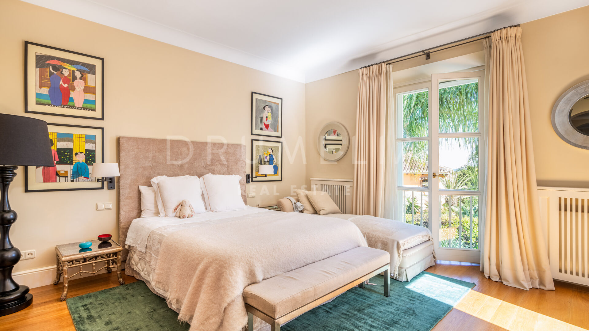 Очаровательная вилла в андалузском стиле, спроектированная Сезаром Лейвой и Хайме Парладе, расположена в самом центре Марбельи. Вилла включает в себя полностью оборудованную кухню с прекрасным видом и выходом в сад, 5 просторных спален с ванными комнатами и прекрасным видом на красочные сады, предлагающие тенистые пространства и светлые жилые зоны. Стеклянные окна привлекают много естественного света, а прямой доступ к просторным террасам с несколькими зонами отдыха с потрясающим видом на бассейн и андалузский сад, спроектированный Кристофером Массоном.
