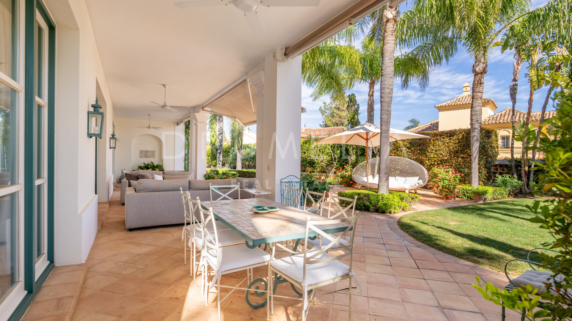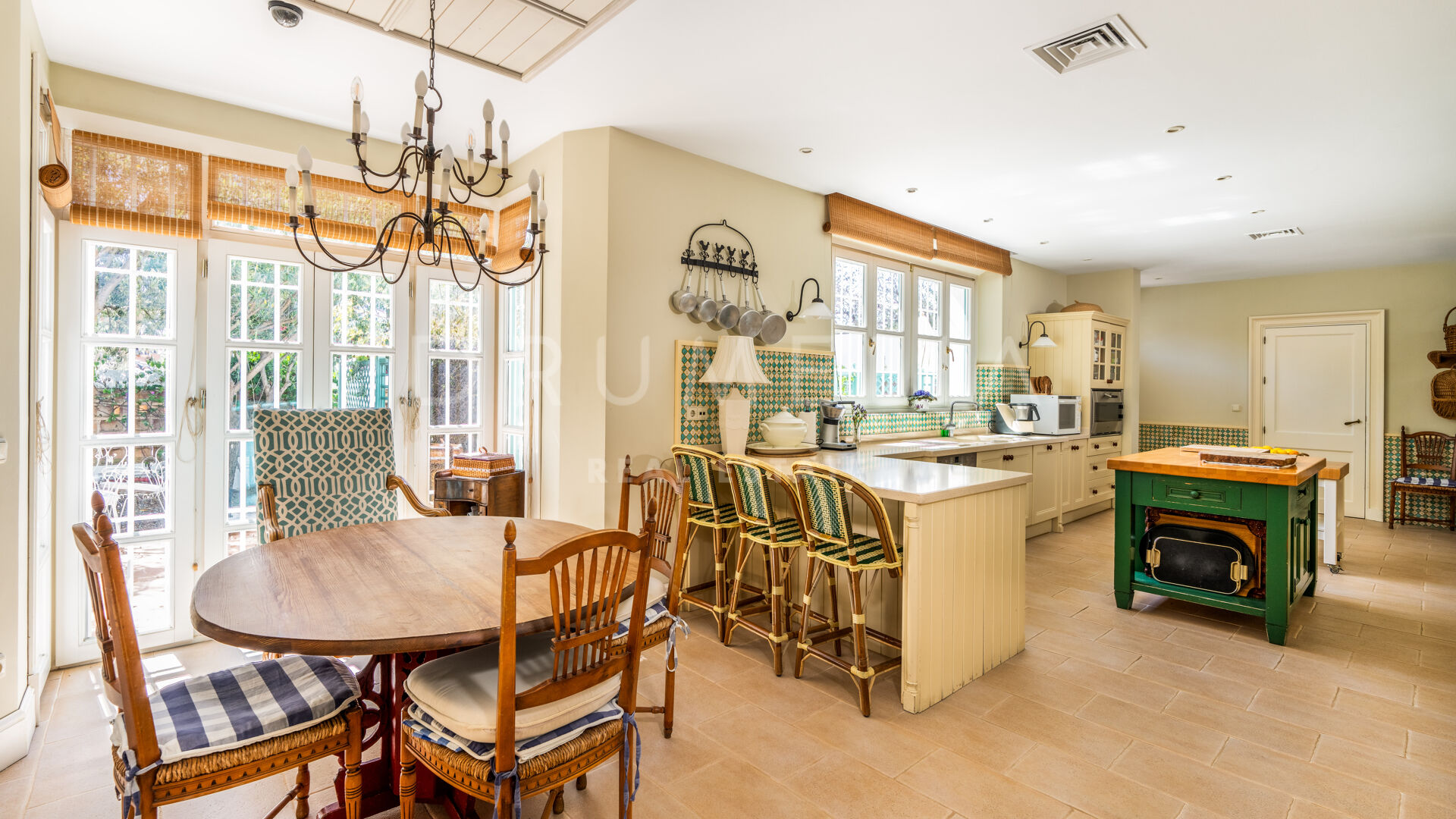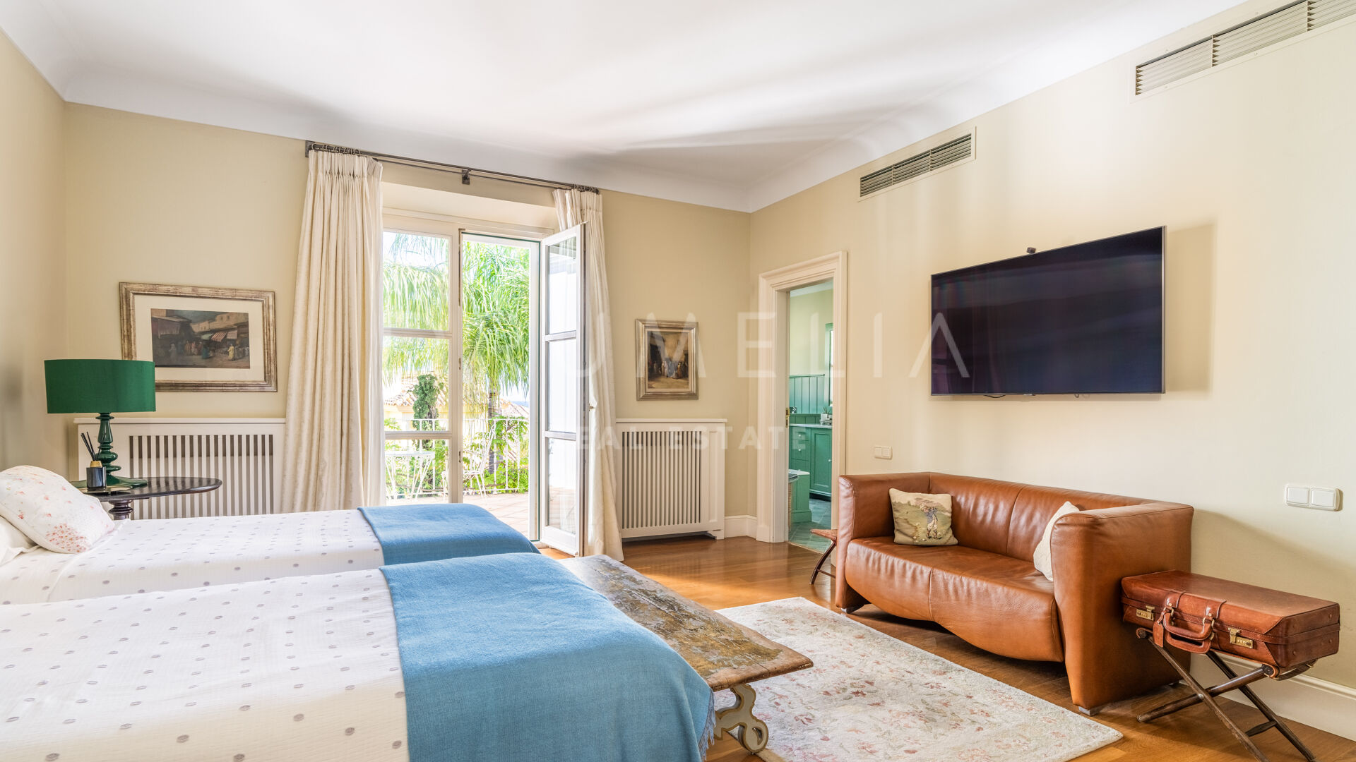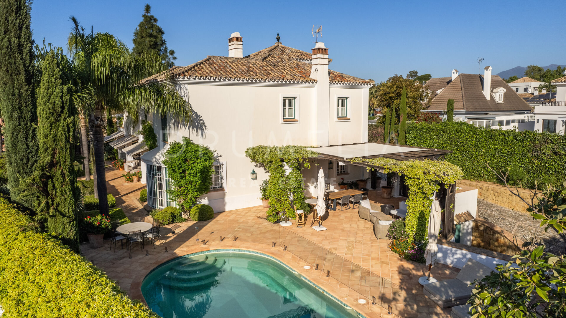 Очаровательная вилла в андалузском стиле, спроектированная Сезаром Лейвой и Хайме Парладе, расположена в самом центре Марбельи. Вилла включает в себя полностью оборудованную кухню с прекрасным видом и выходом в сад, 5 просторных спален с ванными комнатами и прекрасным видом на красочные сады, предлагающие тенистые пространства и светлые жилые зоны. Стеклянные окна привлекают много естественного света, а прямой доступ к просторным террасам с несколькими зонами отдыха с потрясающим видом на бассейн и андалузский сад, спроектированный Кристофером Массоном.