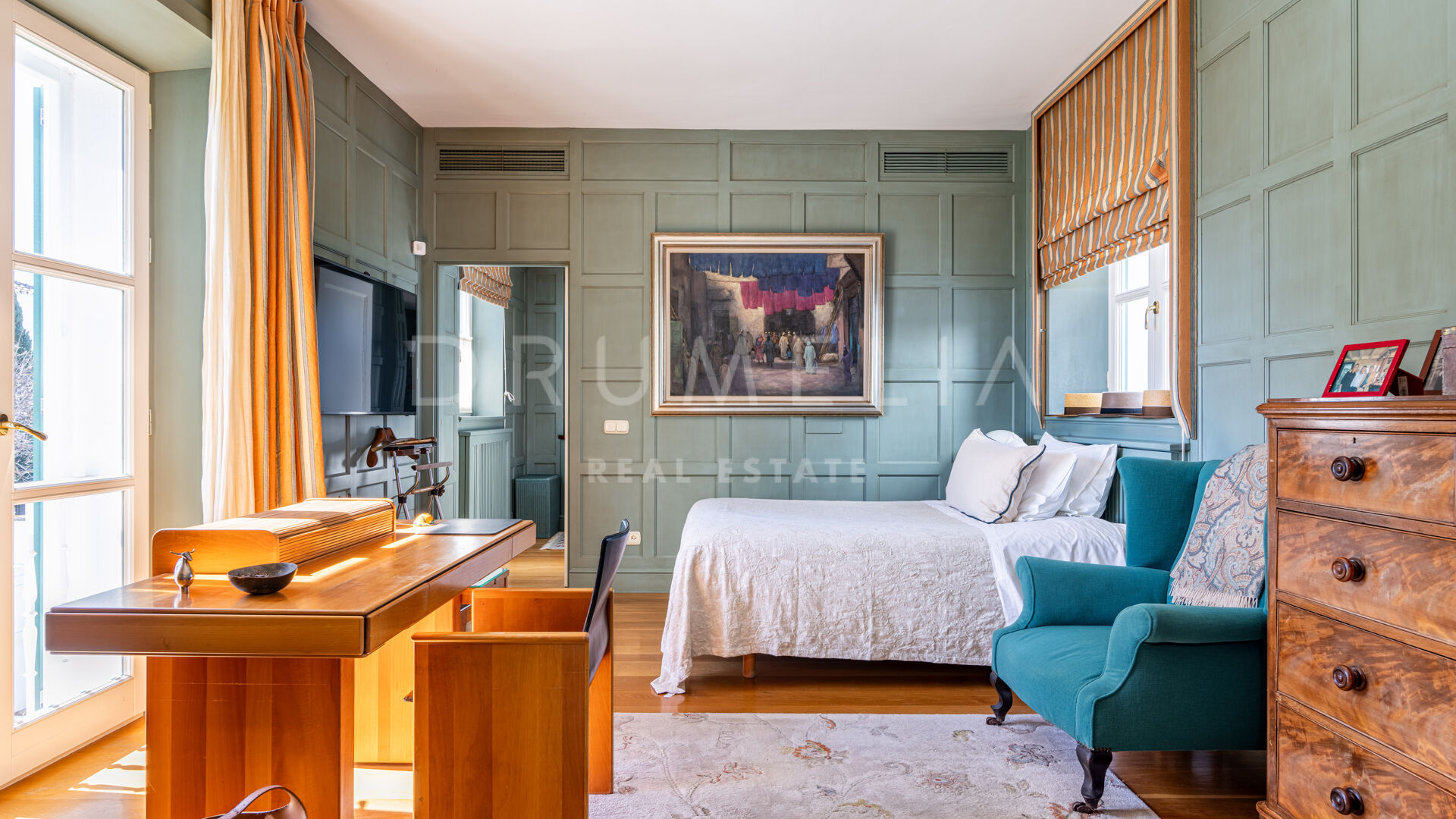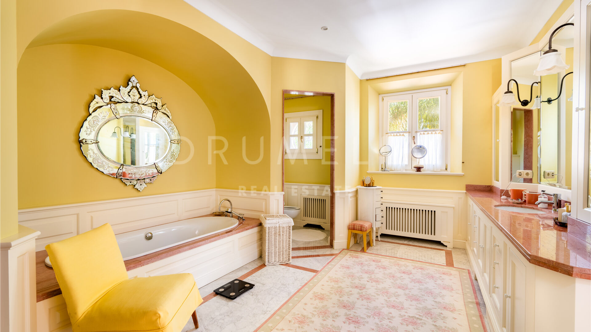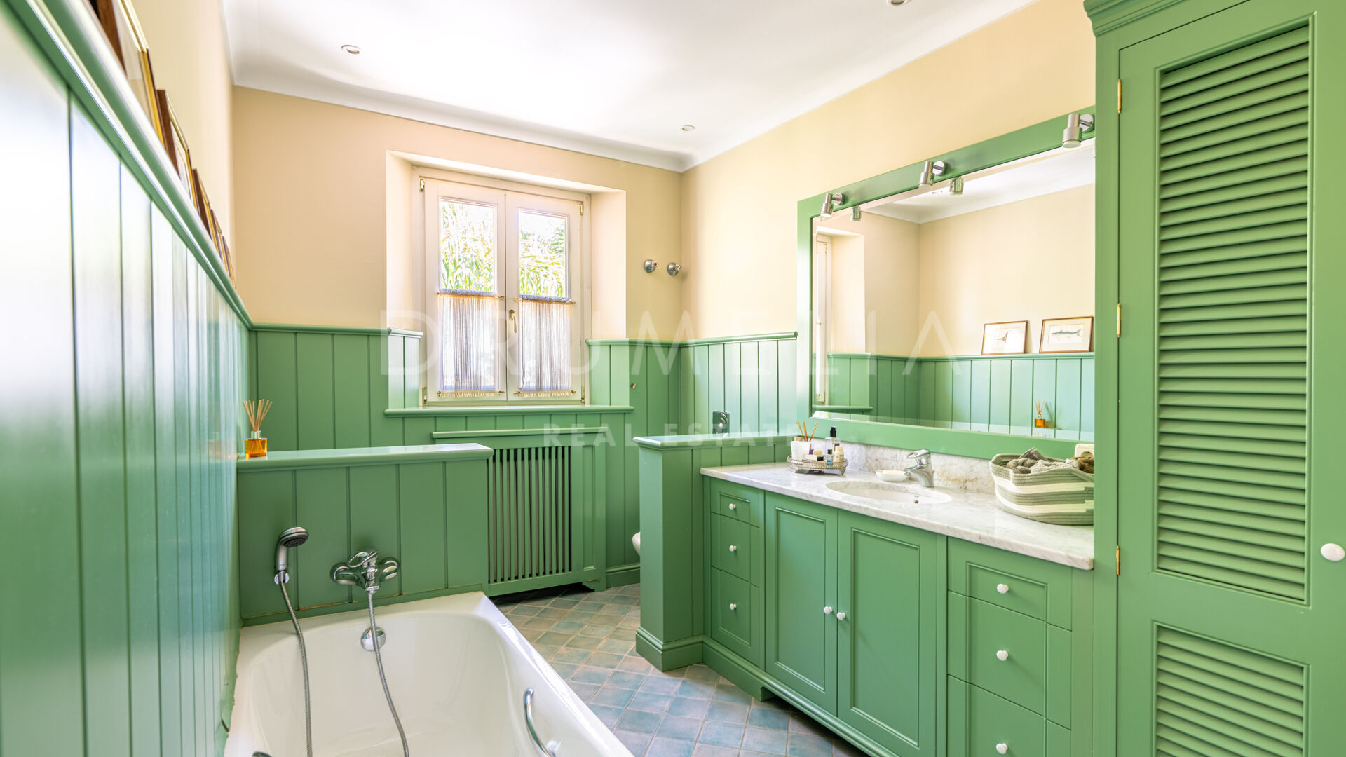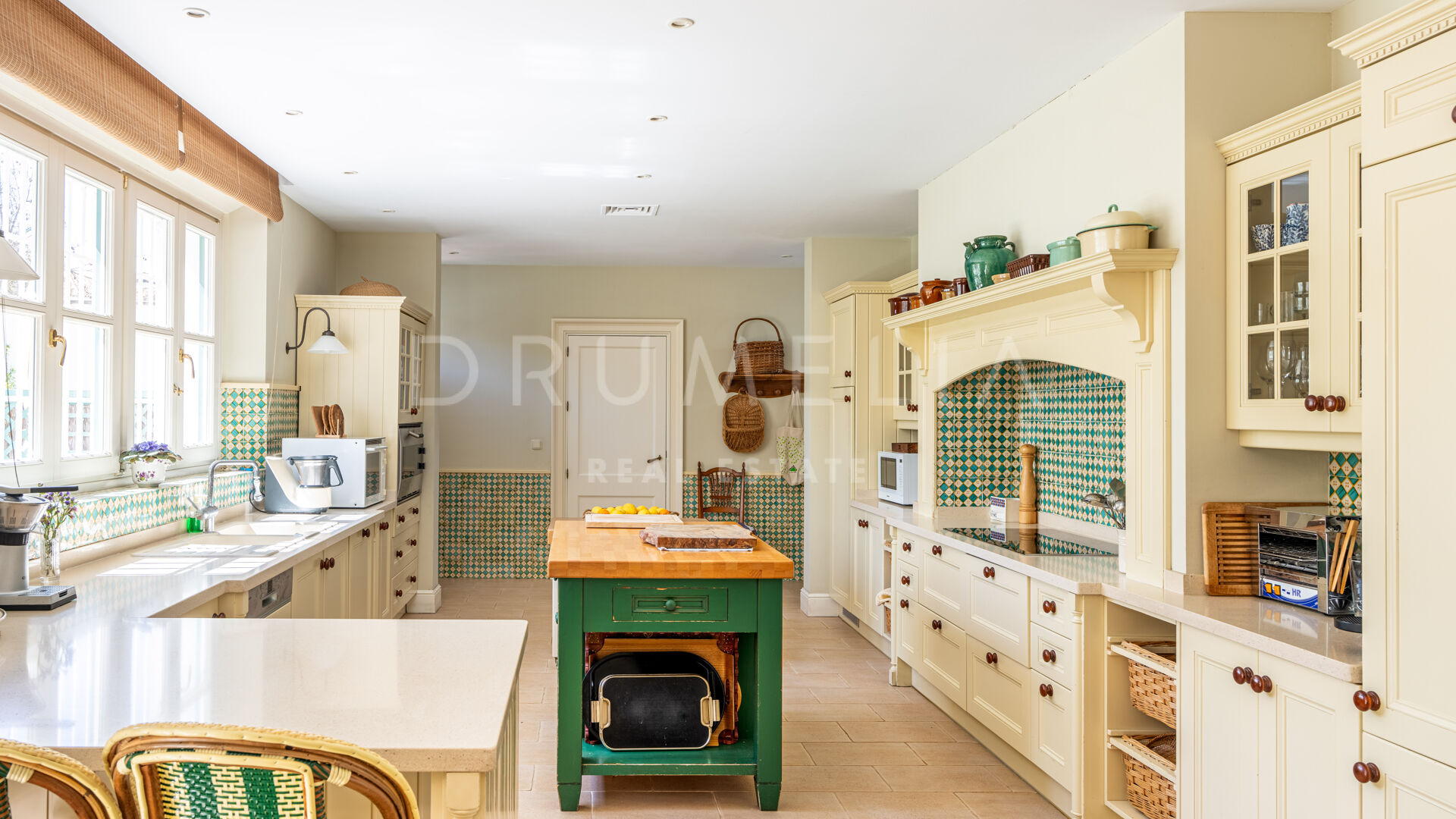 Очаровательная вилла в андалузском стиле, спроектированная Сезаром Лейвой и Хайме Парладе, расположена в самом центре Марбельи. Вилла включает в себя полностью оборудованную кухню с прекрасным видом и выходом в сад, 5 просторных спален с ванными комнатами и прекрасным видом на красочные сады, предлагающие тенистые пространства и светлые жилые зоны. Стеклянные окна привлекают много естественного света, а прямой доступ к просторным террасам с несколькими зонами отдыха с потрясающим видом на бассейн и андалузский сад, спроектированный Кристофером Массоном.