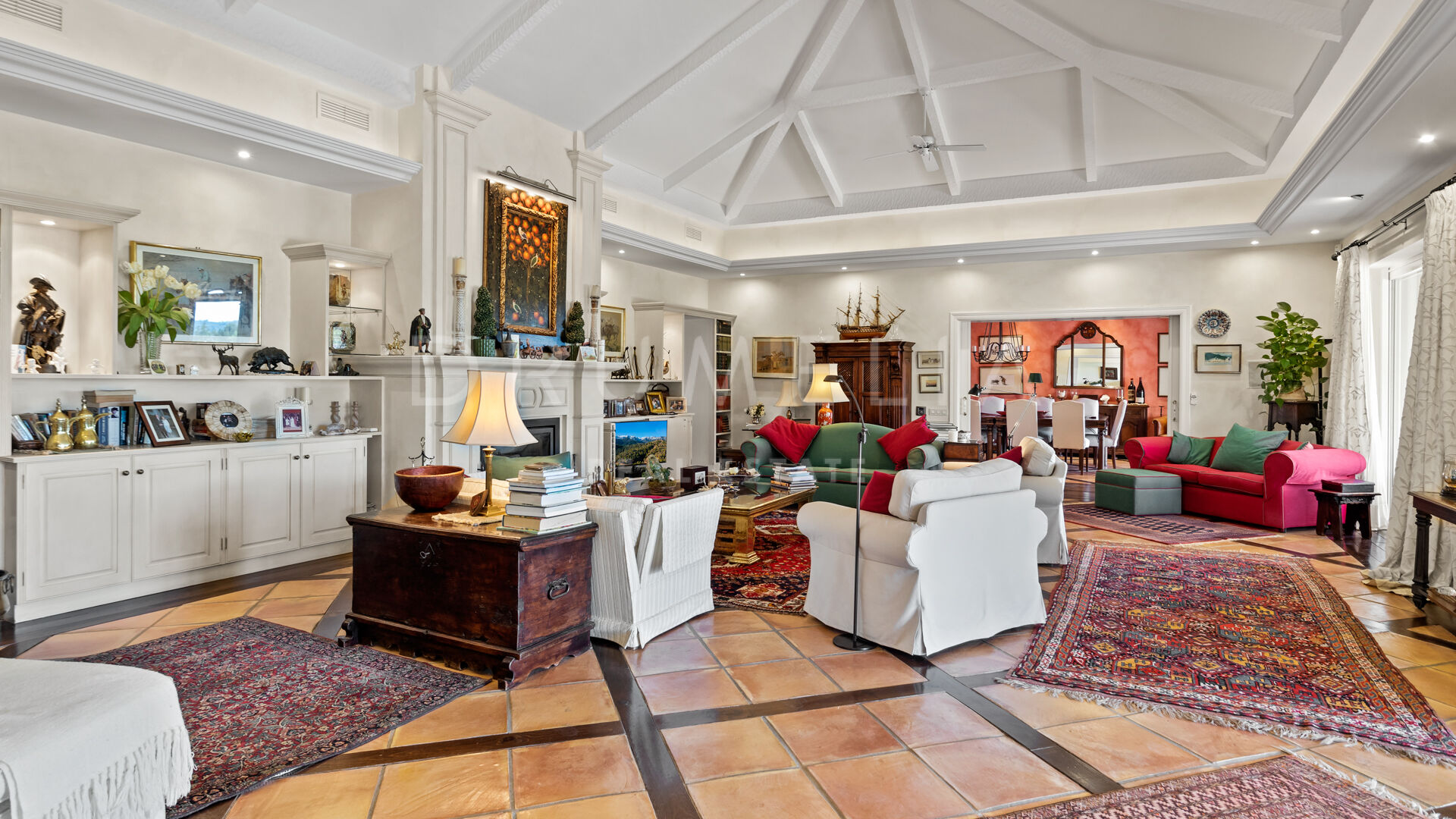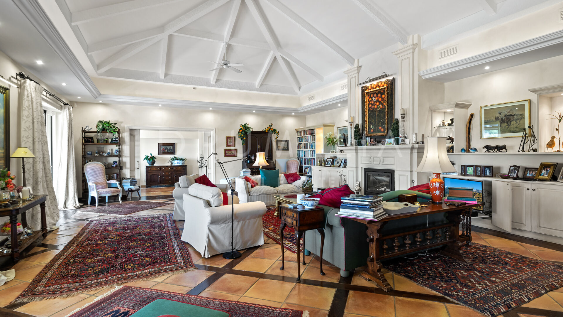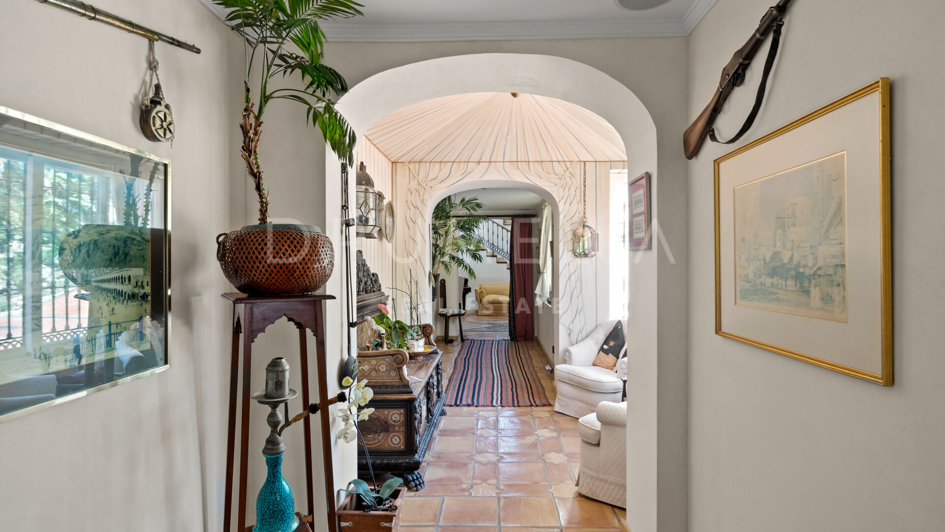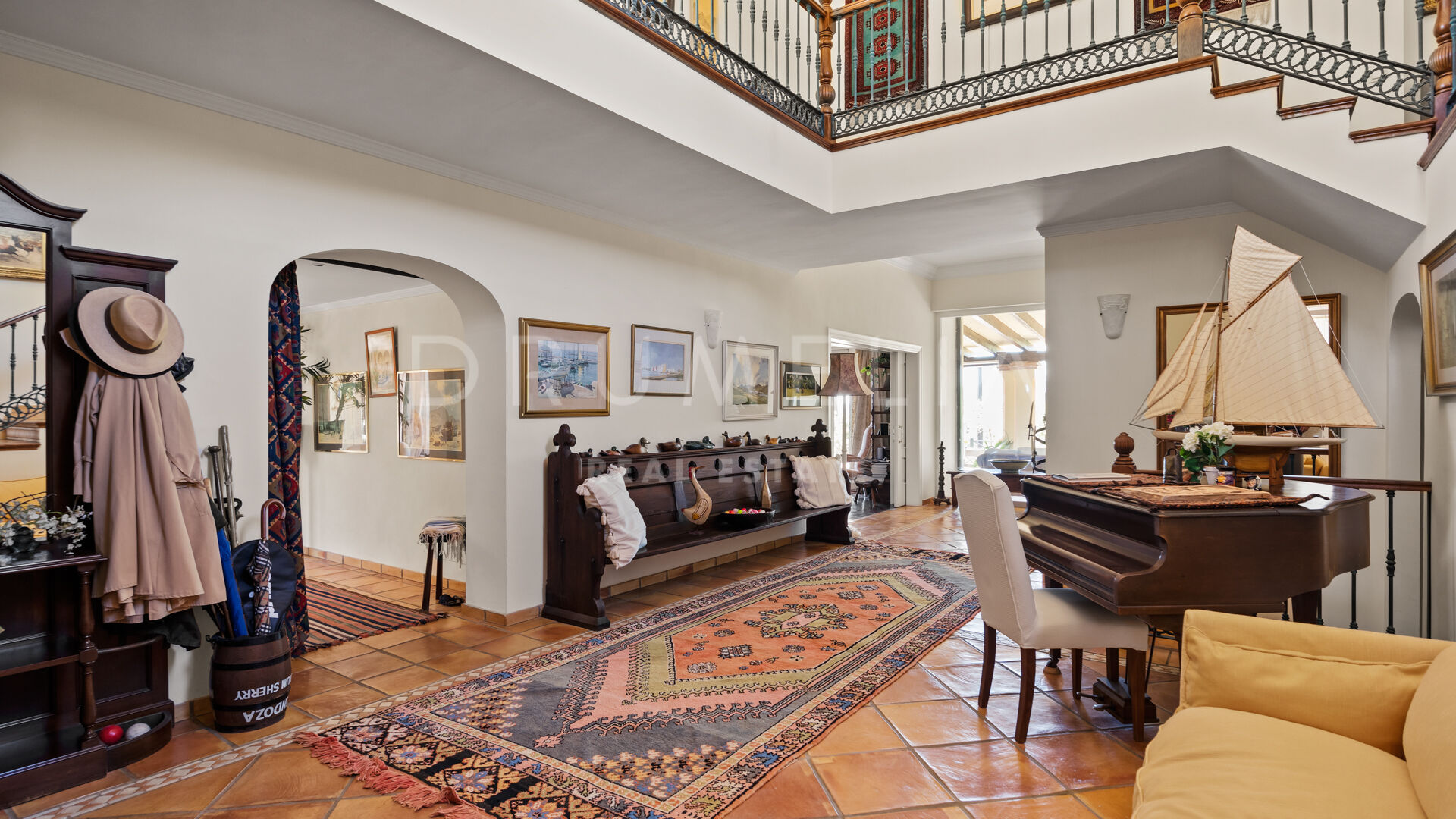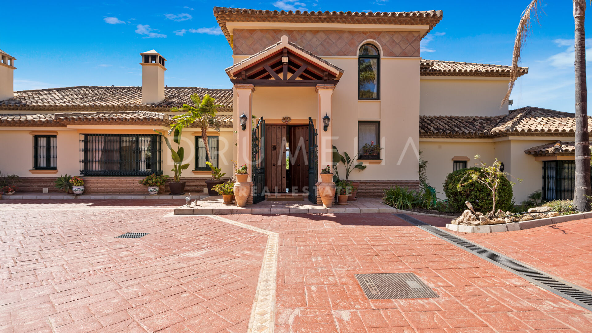 Эта красивая качественная вилла в традиционном стиле выставлена на продажу на территории спокойного и безопасного элитного гольф-курорта Marbella Club Golf Resort, Бенахавис, недалеко от Клабхауса и примерно в 15 минутах езды от пляжа и всех удобств.