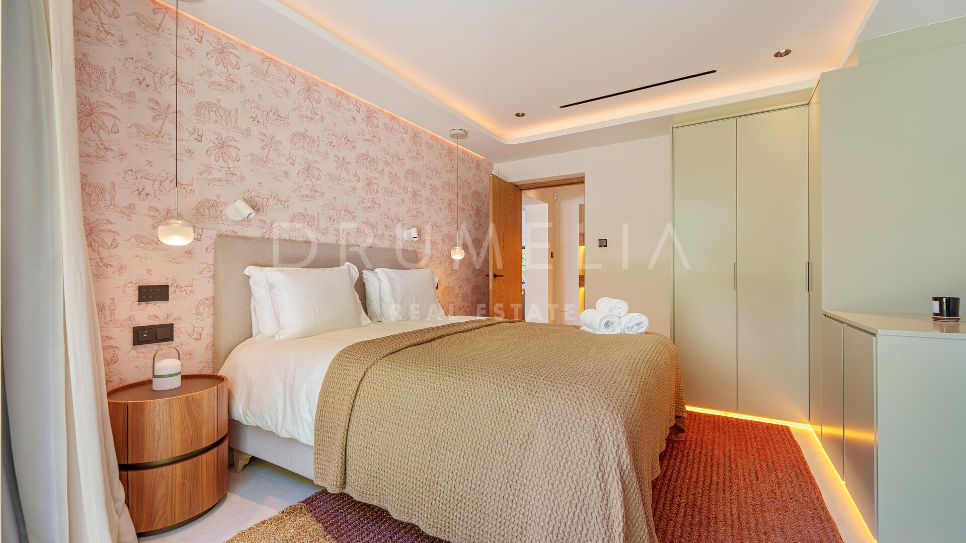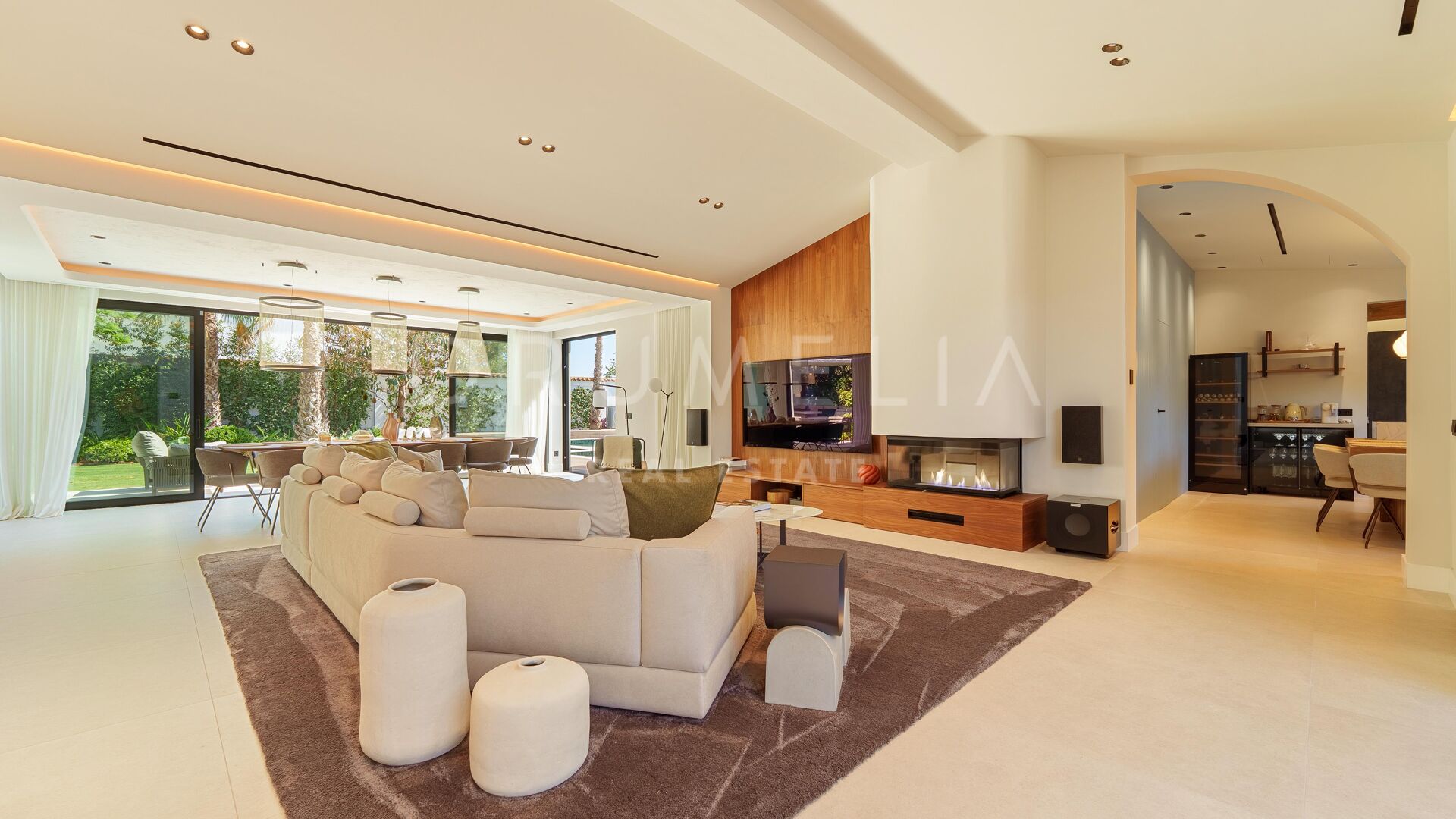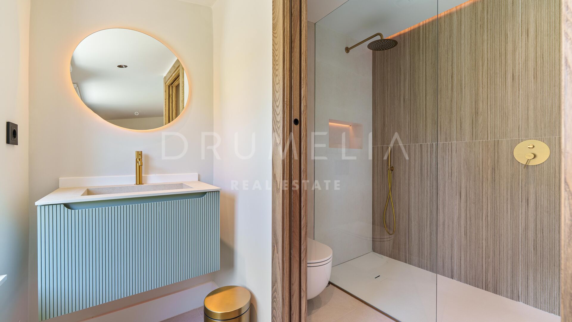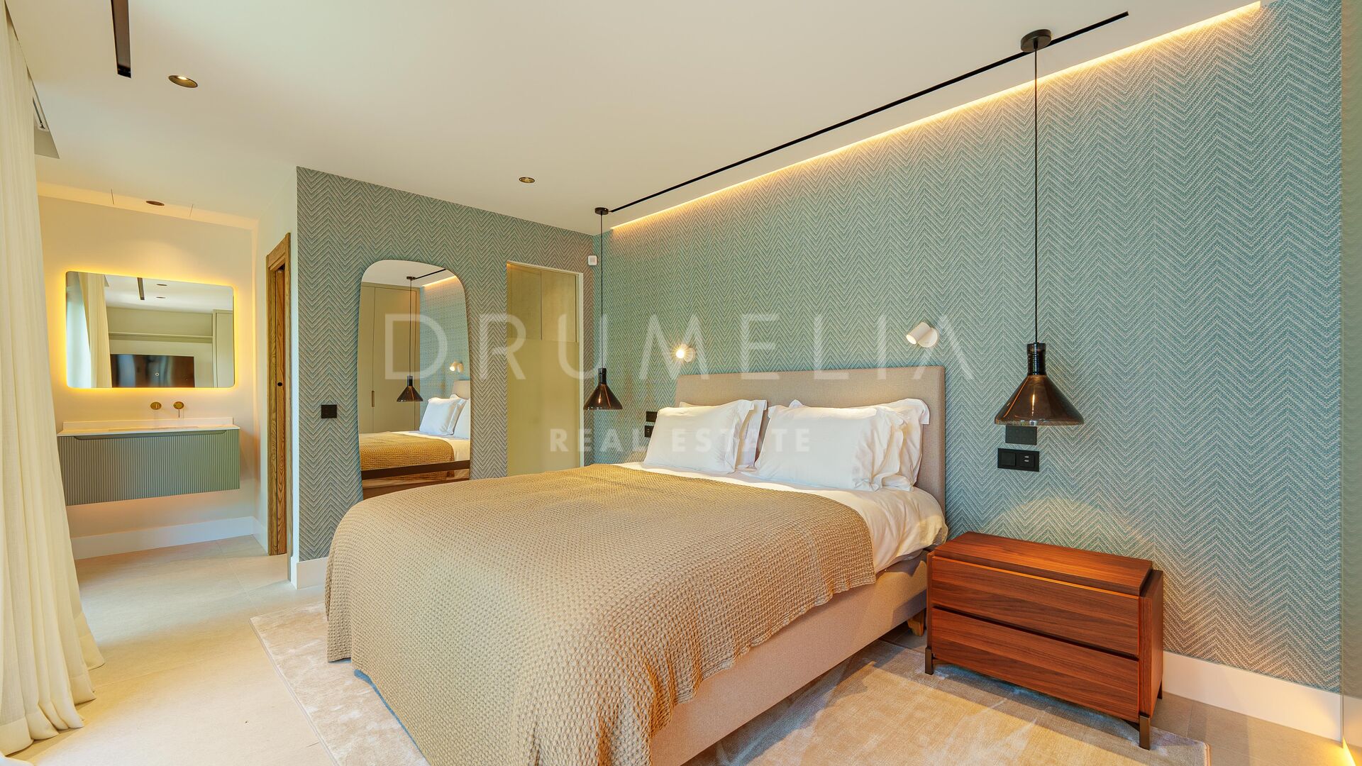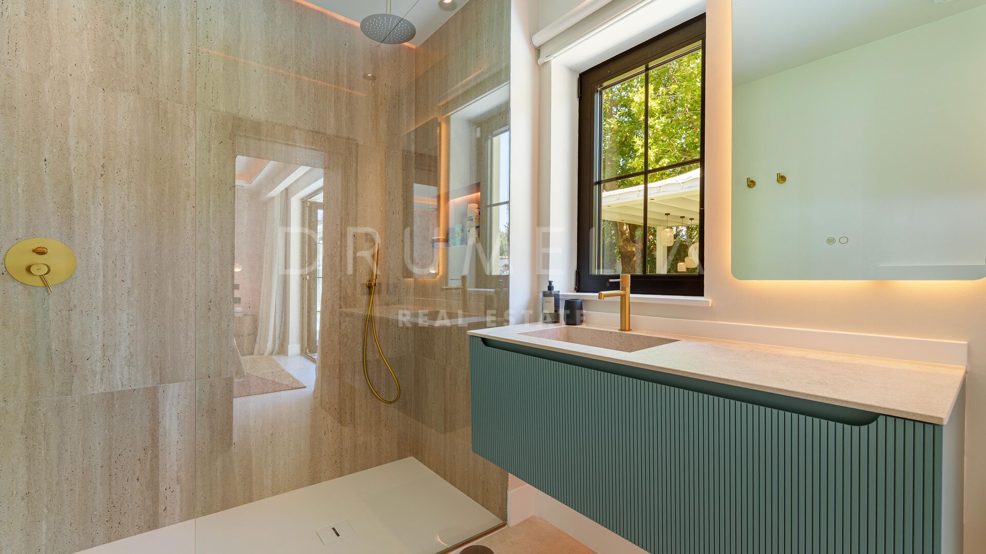 Откройте для себя утончённую современную жизнь в этой исключительной вилле в один уровень, идеально расположенной всего в нескольких минутах от оживлённого Пуэрто-Бануса. Вилла находится на просторном участке с полной приватностью и предлагает пять просторных спален, открытые светлые интерьеры и впечатляющий вестибюль с двойной высотой потолка и геометрической крышей, придающей архитектурную изюминку.