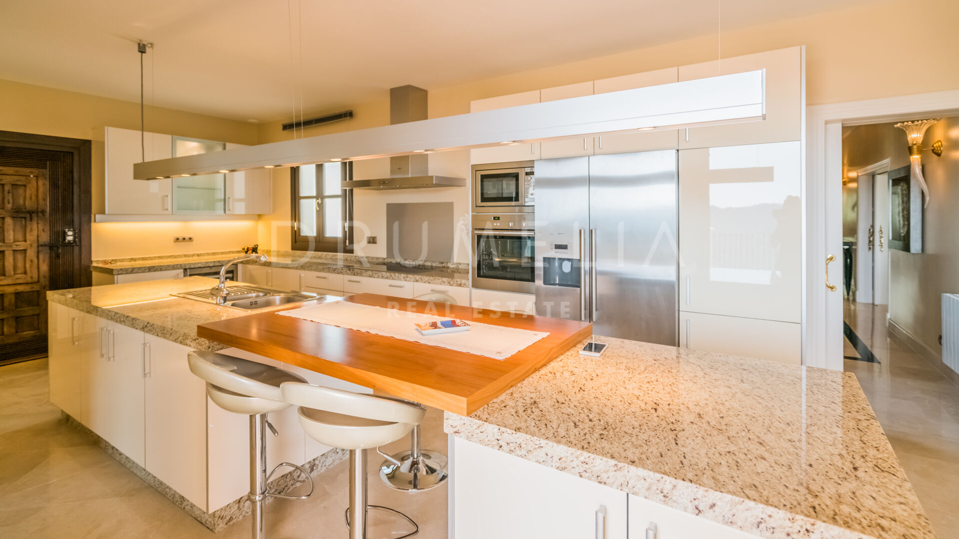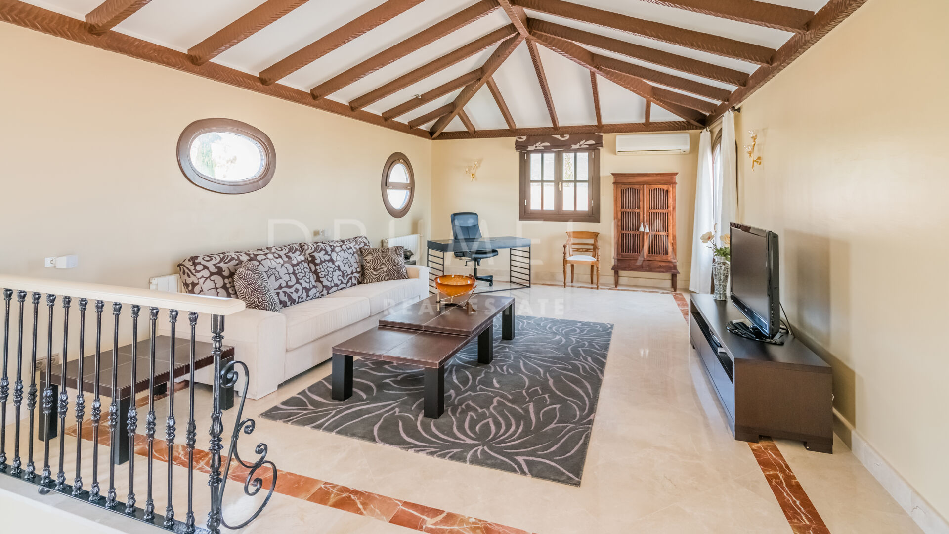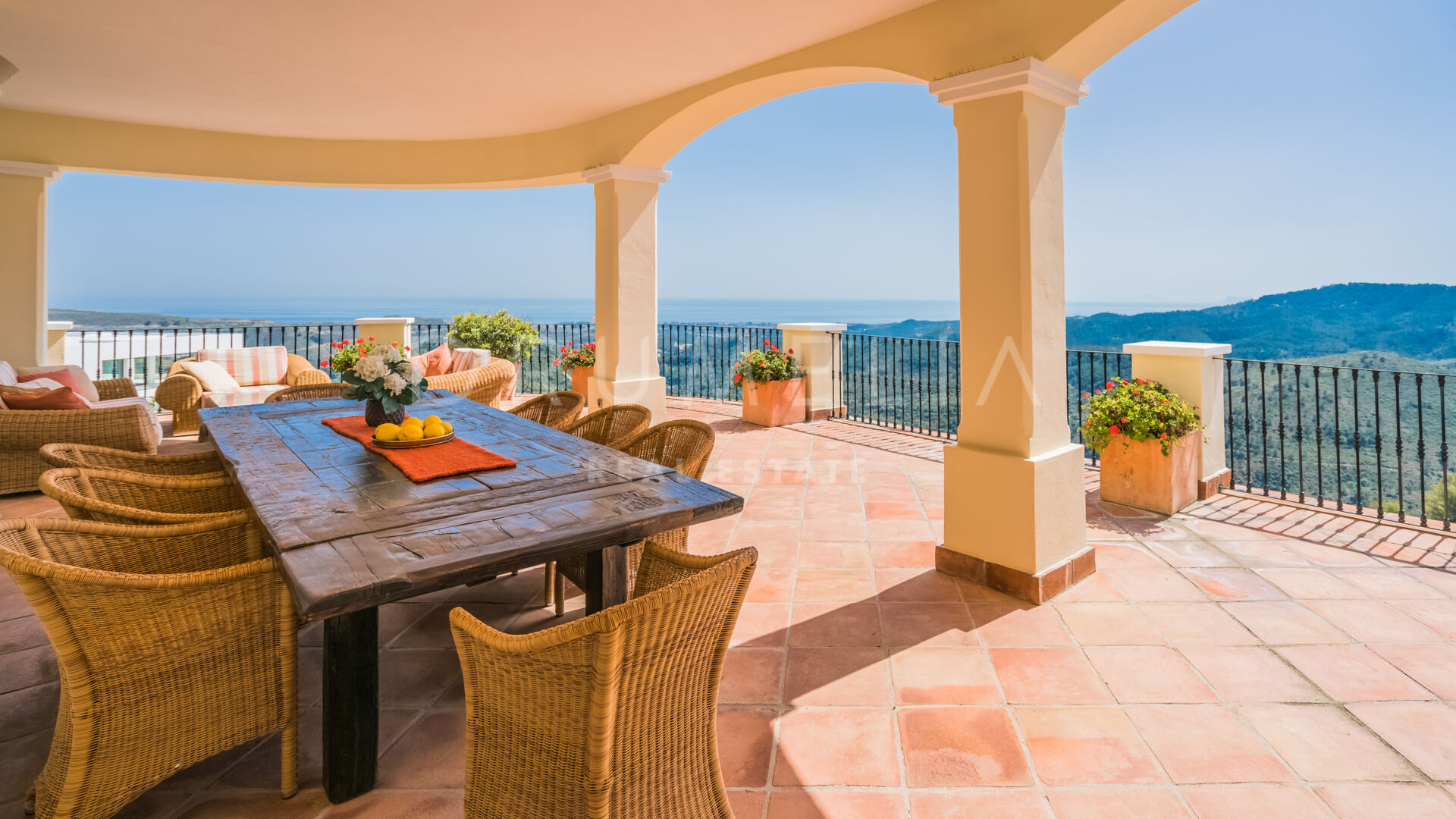 Со вкусом представленная и превосходно оборудованная недвижимость находится в отличном состоянии и обладает особенной атмосферой, безупречно сочетая традиционные и современные черты. Натуральные и высококачественные материалы, терракотовая плитка, дерево и мрамор полов, элегантные деревянные рамы и двери, приятная глазу цветовая палитра, оригинальные архитектурные элементы, эффектное решение потолков с балками – каждая деталь придаёт дому респектабельность и средиземноморский шик. Для комфорта проживания имеются кондиционеры, центральное отопление, удобные встроенные шкафы, двойные стеклопакеты, сантехника от Villeroy&Boch, спутниковое телевидение, Интернет, гараж и парковочные места, высококачественное покрытие из искусственной травы и многое другое. Стильная мебель (опционно), декор и аксессуары создают по-современному роскошную обстановку, а классический камин с мраморными элементами добавляет уют. В помещения великолепной виллы проникает много дневного и солнечного света, и из любого уголка можно беспрепятственно наслаждаться пасторальными андалузскими пейзажами и захватывающими дух видами на Средиземное море, вплоть до Гибралтара и побережья Африки, величественные горы и чудесный ландшафтный сад с бассейном с солевой очисткой воды.