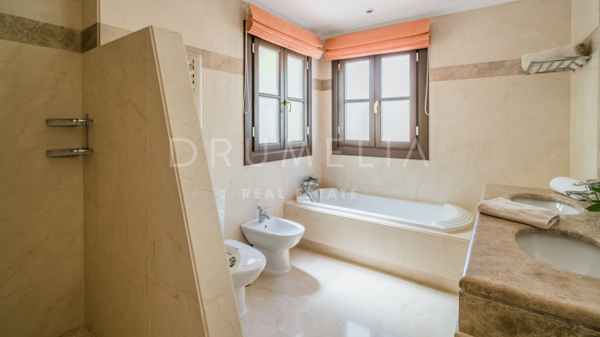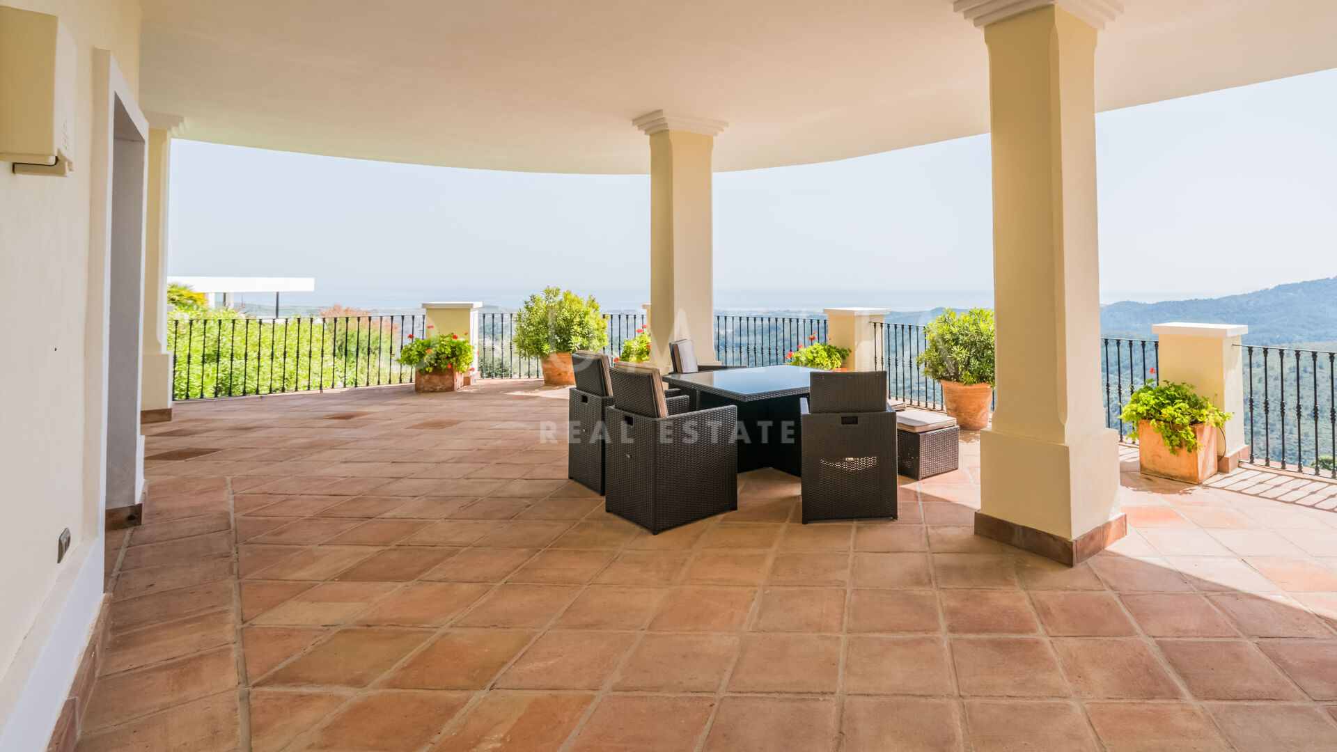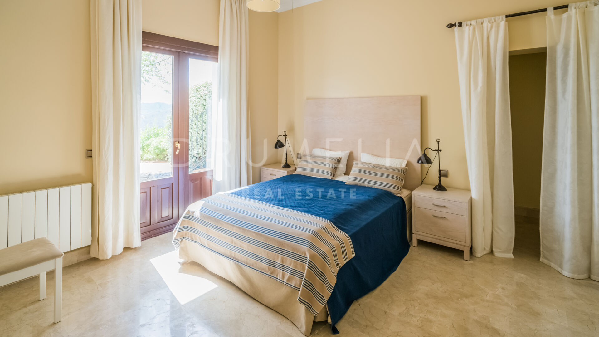 Со вкусом представленная и превосходно оборудованная недвижимость находится в отличном состоянии и обладает особенной атмосферой, безупречно сочетая традиционные и современные черты. Натуральные и высококачественные материалы, терракотовая плитка, дерево и мрамор полов, элегантные деревянные рамы и двери, приятная глазу цветовая палитра, оригинальные архитектурные элементы, эффектное решение потолков с балками – каждая деталь придаёт дому респектабельность и средиземноморский шик. Для комфорта проживания имеются кондиционеры, центральное отопление, удобные встроенные шкафы, двойные стеклопакеты, сантехника от Villeroy&Boch, спутниковое телевидение, Интернет, гараж и парковочные места, высококачественное покрытие из искусственной травы и многое другое. Стильная мебель (опционно), декор и аксессуары создают по-современному роскошную обстановку, а классический камин с мраморными элементами добавляет уют. В помещения великолепной виллы проникает много дневного и солнечного света, и из любого уголка можно беспрепятственно наслаждаться пасторальными андалузскими пейзажами и захватывающими дух видами на Средиземное море, вплоть до Гибралтара и побережья Африки, величественные горы и чудесный ландшафтный сад с бассейном с солевой очисткой воды.