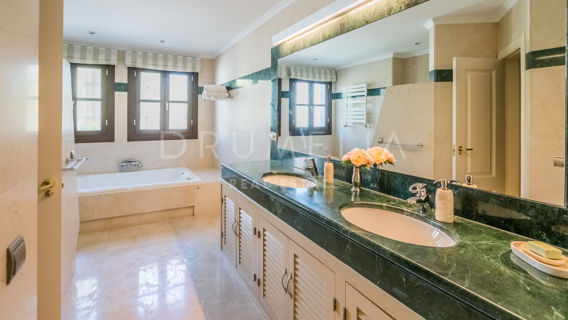 Фешенебельная вилла площадью 854 м² с земельным участком щедрых размеров (3.655 м²) подойдет поклонникам классической средиземноморской элегантности, современного комфорта и самого эксклюзивного образа жизни в окружении чудесной природы в одном из престижных районов Марбельи. Гармонично вписывающаяся в красивую окружающую среду, она впечатляет высоким качеством, стильной андалузской архитектурой, технологиями 21 века и современными интерьерами. Это неудивительно, ведь её создатель – выдающаяся архитектурная студия Сезара де Лейва Собрадо (Cesar De Leyva Sobrado), с 45-летним опытом работы и глубоким знанием региональных особенностей, остающаяся верной классике Средиземноморья и внедряющая в неё новые, самые передовые тенденции. Среди известных проектов студии – бунгало и торговый центр отеля «Marbella Club», «Las Dunas Resort», роскошные объекты недвижимости в Сотогранде, элитные комплексы в «Rocío de Nagüeles» и «Guadalmina», клабхаусы гольф-клубов «Magna Marbella Golf» и «Marbella Club Golf», планирование урбанизаций La Zagaleta, Los Flamingos, La Heredia. Впечатляющие референции, не правда ли?