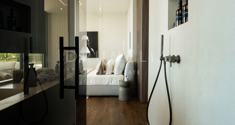 Вилла включает четыре просторные спальни с ванными комнатами en-suite, каждая из которых имеет собственную террасу, встроенные шкафы на заказ и отделку из материалов премиум-класса. Всего предусмотрено пять ванных комнат и три дополнительные гостевые туалеты.
