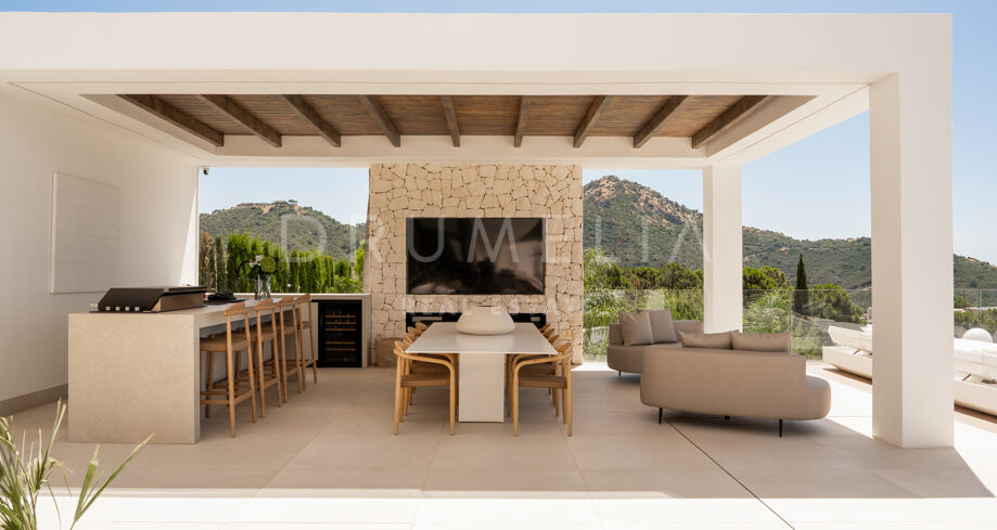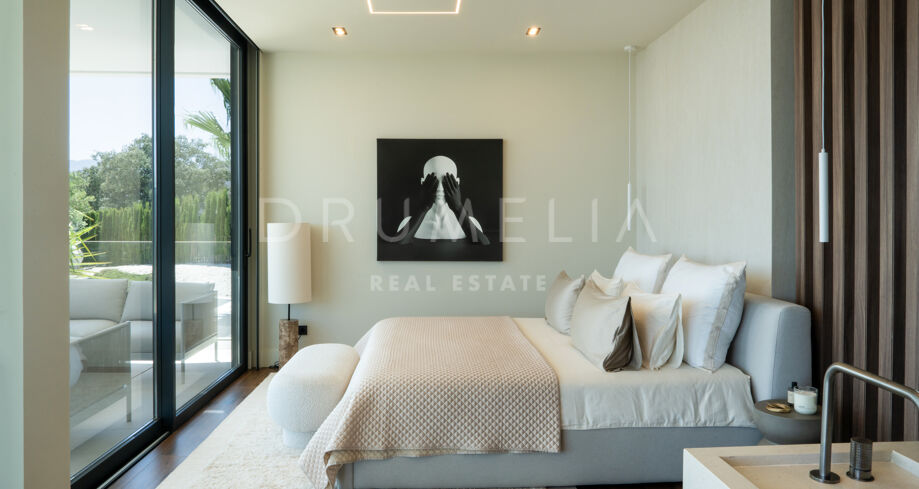 Эта новая вилла расположена в эксклюзивном охраняемом комплексе Monte Mayor в Бенахависе и является выдающимся образцом современной жилой архитектуры в одном из самых приватных и безопасных районов Марбельи.