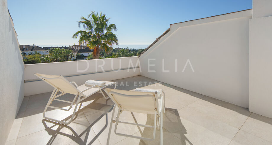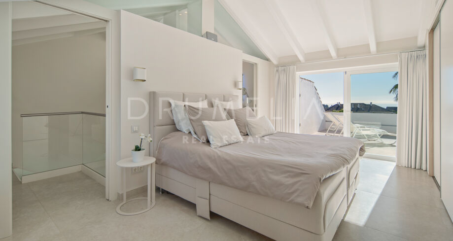 Трехкомнатный дуплексный пентхаус с двумя террасами и видом на море и горы в Монте-Параисо, Марбелья Золотая Миля